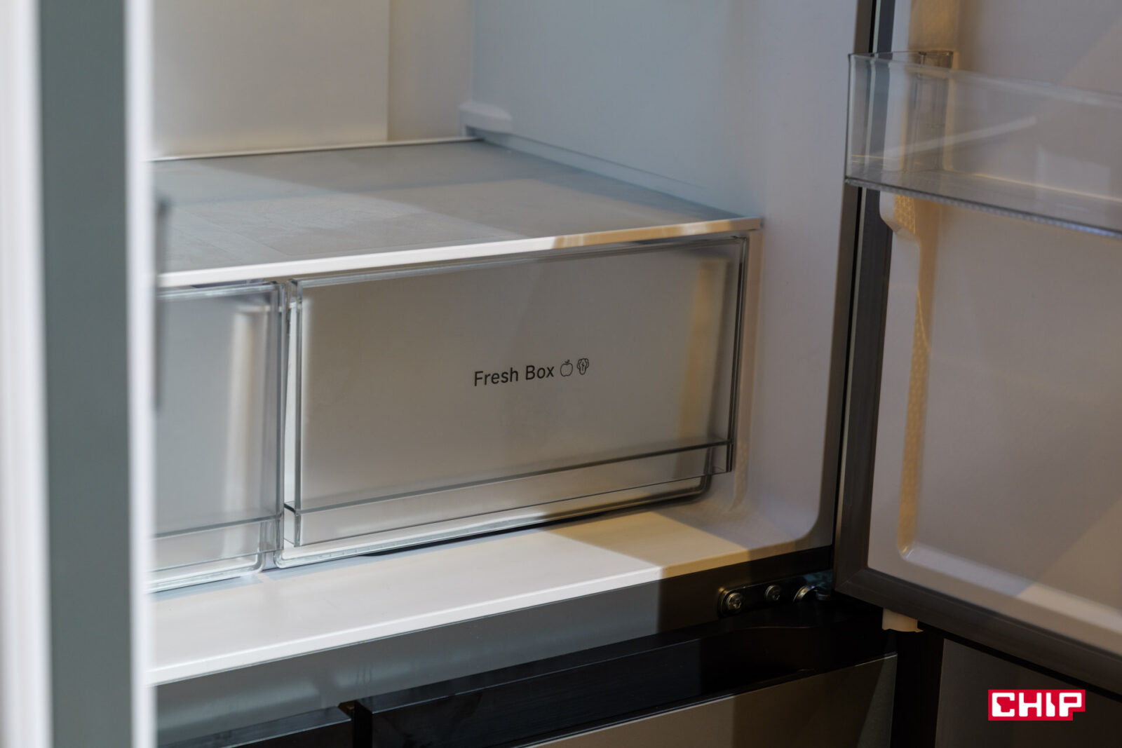 Lodówka oferuje pojemność całkowitą 502 litry podzieloną na 335 litrów chłodziarki i 167 litrów zamrażarki. To rozmiar odpowiedni dla średniej rodziny, oferujący praktyczny układ przechowywania bez nadmiernego zajmowania przestrzeni.