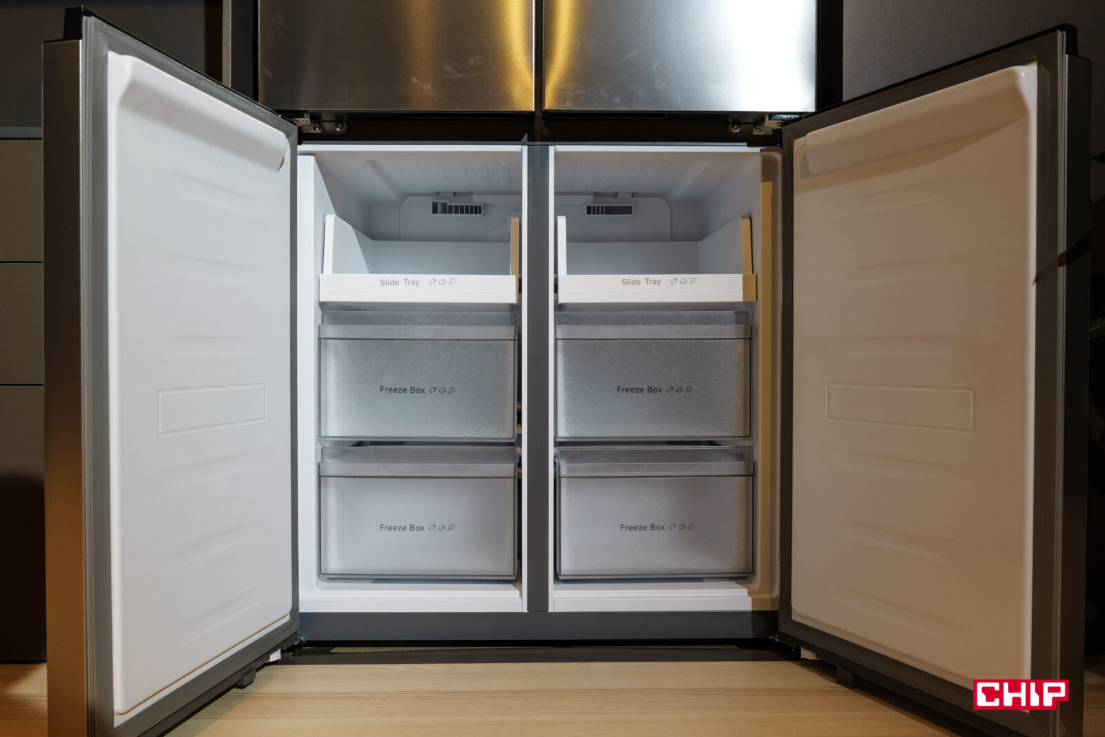 Funkcje inteligentne pozwalają na zdalne monitorowanie temperatury, otrzymywanie powiadomień o otwartych drzwiach czy analizę wzorców zużycia energii. System sztucznej inteligencji analizuje częstotliwość otwierania drzwi i automatycznie optymalizuje ustawienia dla zachowania świeżości produktów.