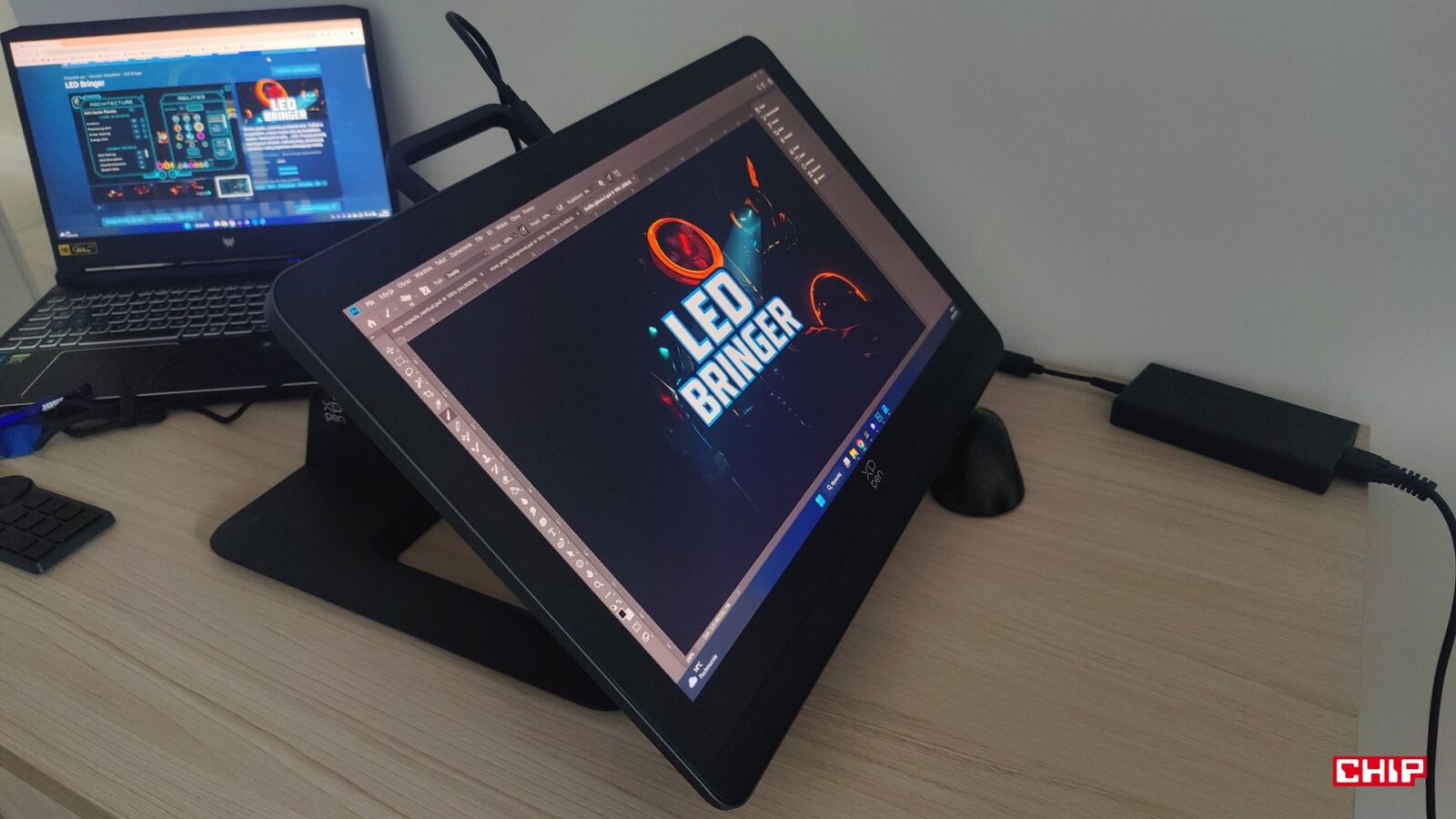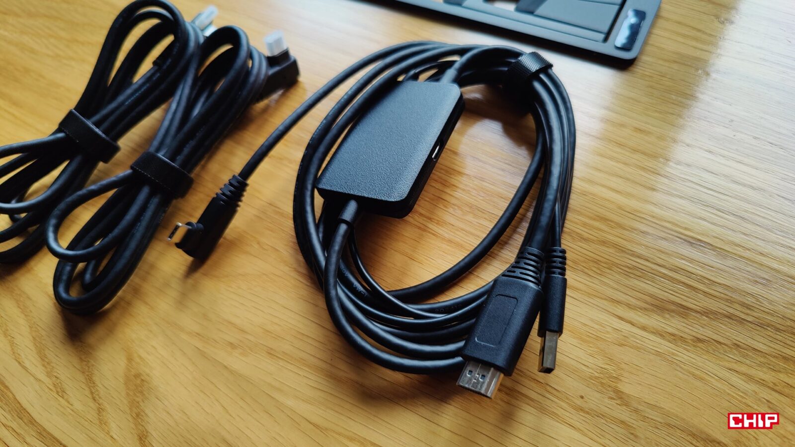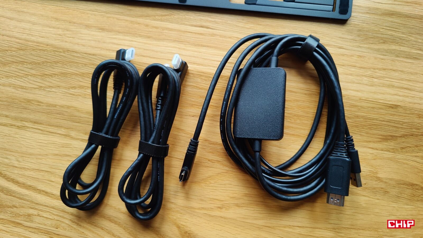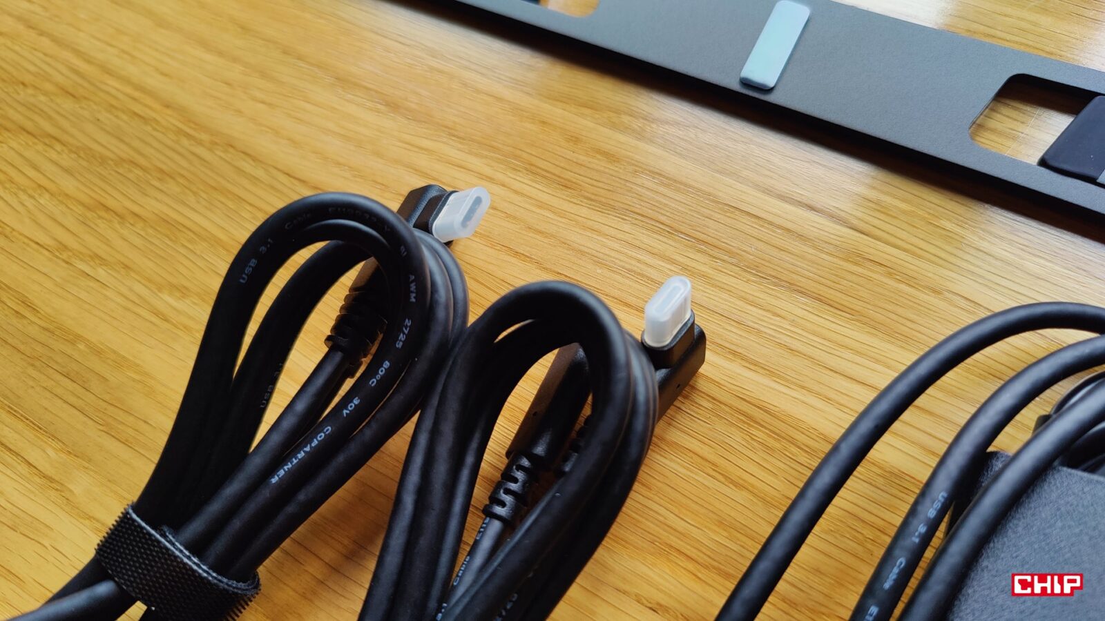 Resztę zestawu uzupełnia instrukcja obsługi, karta gwarancyjna, dobrej jakości ściereczka i rękawiczka, zestaw łącznie 20 wymiennych końcówek dla rysików, zasilacz AC->USB-A->USB-C z różnymi końcówkami, aż trzy przewody (dwa USB-C do 90-stopniowego USB-C oraz jeden 3w1 HDMI+USB-C -> USB-C) oraz… składany metalowy stojak ACS 16. Dostajemy więc tradycyjnie wszystko, żeby pracować na dowolnym komputerze bez polowania na brakujące kable, ale kwestia podstawki jest… zastanawiająca.
