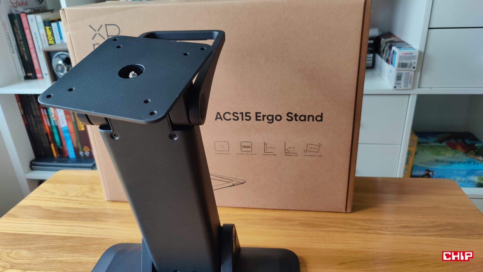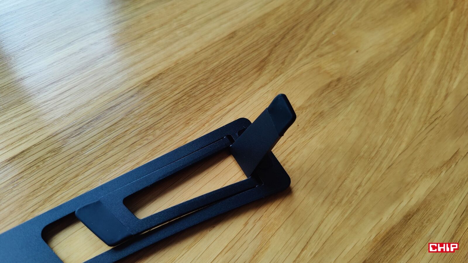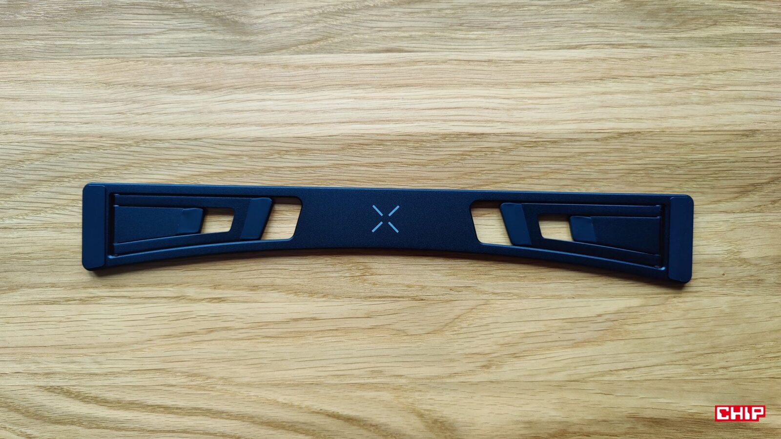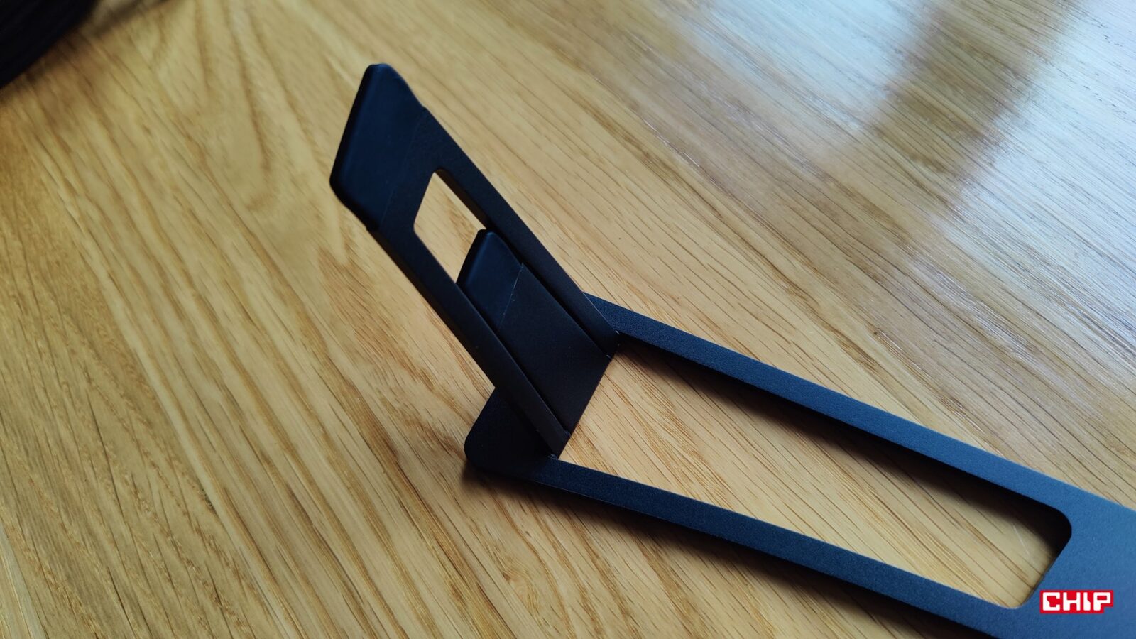 XPPen zdecydował, że zamiast integrować z tabletem konieczną do sensownej pracy podstawkę, to postawi na… to coś. Metalowa podstawka doklejana na dwustronną taśmę montażową z dwoma poziomami nachylenia obitymi w gumowe podkładki sugeruje albo błąd projektowy, albo oszczędność. Zwłaszcza że XPPen Artist Ultra 16 nie doczekał się opcjonalnego montażu VESA, choć inne modele w ofercie producenta już tak, a ten dodatek pozwala zrobić użytek ze specjalnej, ergonomicznej podstawki, która dosłownie rewolucjonizuje kwestię wygody.