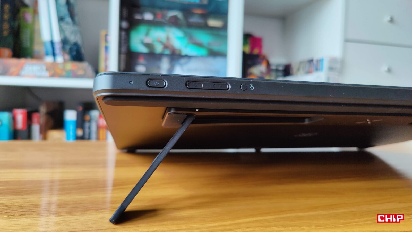 Do tej formy etui i aż dwóch rysików nadal nie mogę się przyzwyczaić, bo wydaje mi się to niezbyt przemyślanym gadżetem. Z pozoru ciekawym, ale… no właśnie, bardzo przesadzonym. Projekt sugeruje, że to etui powinniśmy utrzymywać na biurku, ale sam “chwytak” na rysik nie jest tego wart, a podczas pracy nie żonglujemy rysikami na lewo i prawo. Ba, szybko wybierzecie dla siebie ten ulubiony i… zapomnicie o tym drugim. Wrócę tutaj zresztą myślami do testu XPPen Artist Pro 22 Gen 2, a więc modelu, w którym producent rozwiązał kwestię rysików i etui w znacznie lepszy sposób.