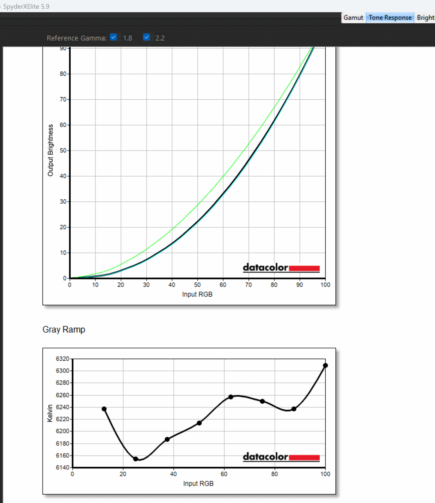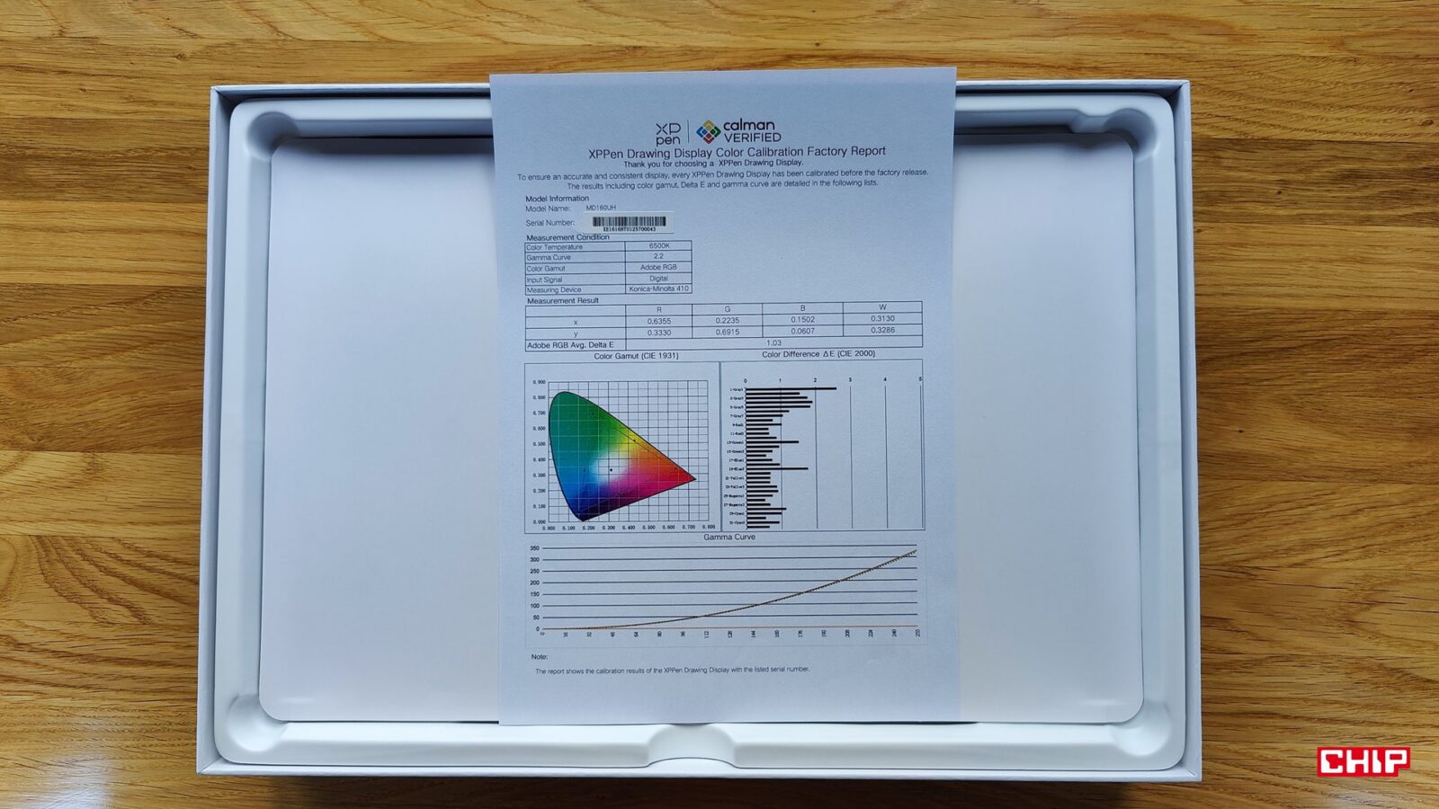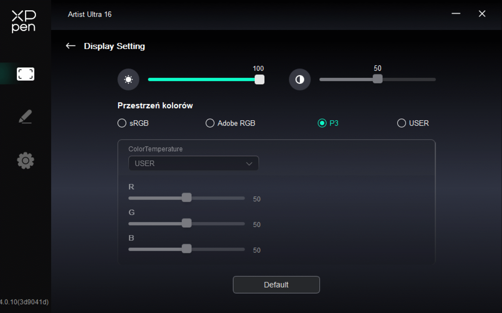 XPPen Artist Ultra 16 z panelem OLED wypada bardzo dobrze w kalibracji pod workflow sRGB. Pokrycie gamutu jest zależne od aktualnie wybranego trybu kalibracji (sRGB, AdobeRGB, DCI-P3) i w najlepszym przypadku wynosi odpowiednio 100% sRGB, 97% AdobeRGB i 99% DCI-P3, potwierdzając certyfikat Calman Verified. Odpowiedź tonalna bardzo ściśle trzyma cel gamma 2,2, skala szarości jest spójna, a natywny punkt bieli wynosi ok. 6300 K, czyli nieco cieplej niż D65. Przy 100% jasności odczytana jasność sięgnęła ok. 330 cd/m² i czernie rzędu 0,03 cd/m², co przekłada się na kontrast ok. 11200:1. Jednorodność jest dobrze kontrolowana jak na tablet graficzny z ekranem OLED, bo różnice luminancji mieszczą się w 5% na całym panelu, a odchyłki barw są niewielkie.