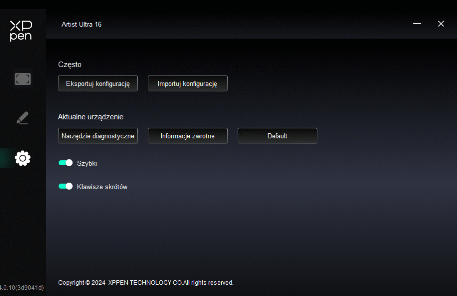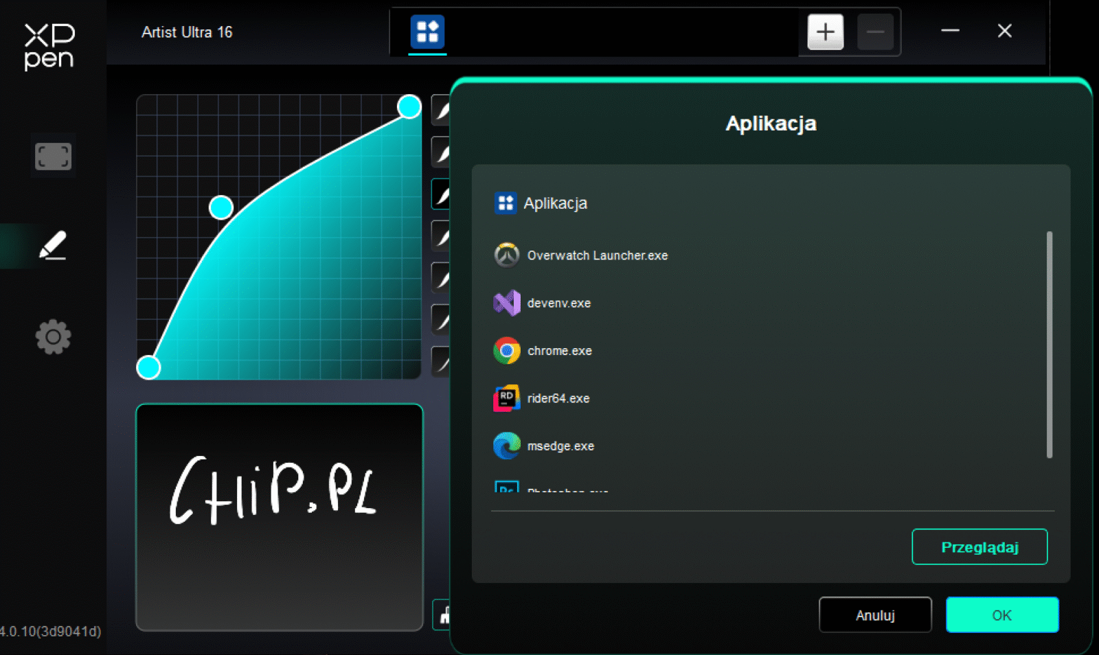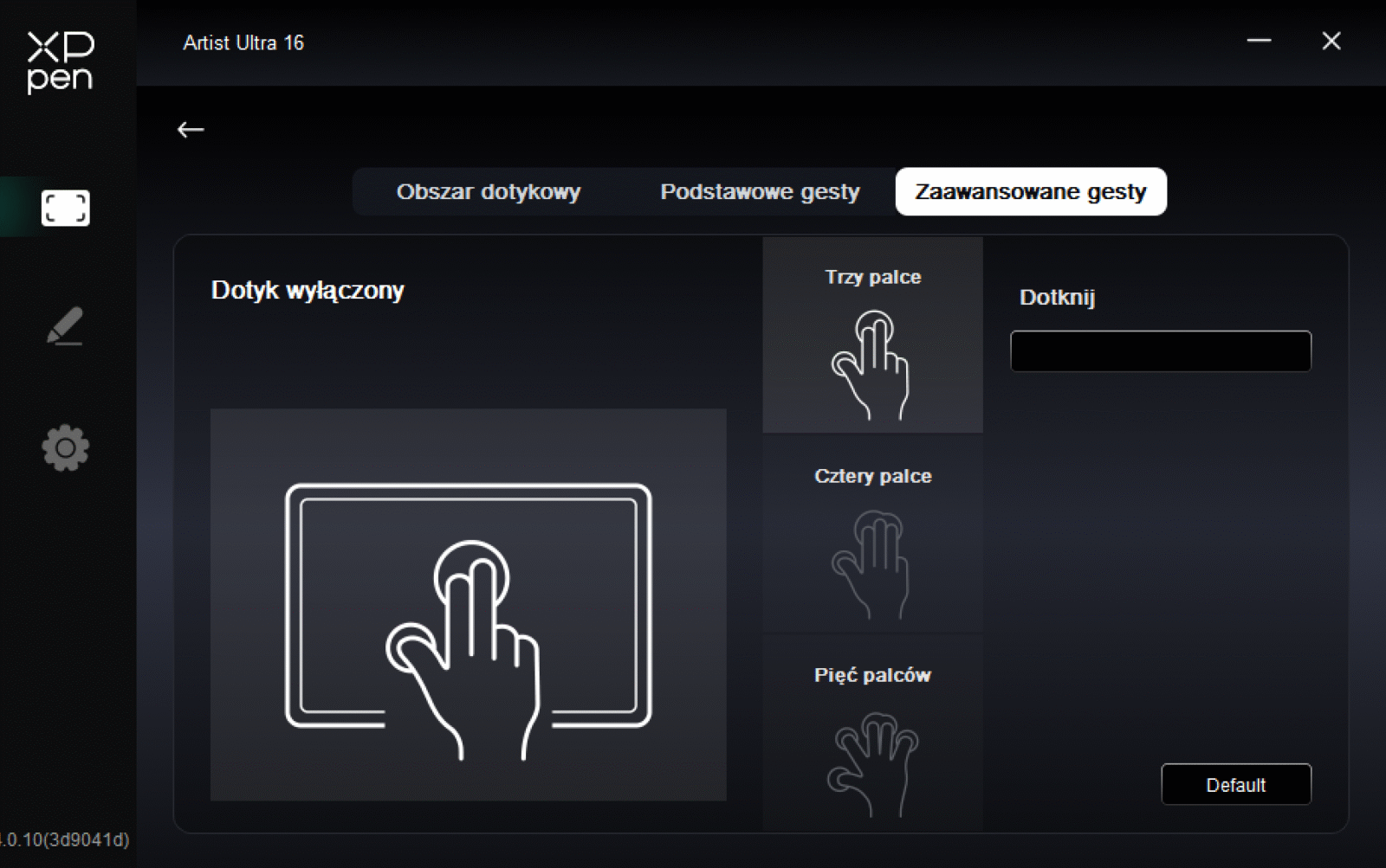 Pełny dotyk w tablecie graficznym ma sens tylko wtedy, gdy nie przeszkadza w rysowaniu. Obecny w XPPen Artist Ultra 16 aż 10-punktowy X-Touch, którego można dowolnie aktywować i dezaktywować przyciskiem na górnej krawędzi, rozwiązuje to dwutorowo. Naturalnie wspiera typową funkcję “palm rejection”, ale wiemy, że nie jest to idealne rozwiązanie, bo i tak doprowadza do przypadkowych aktywacji. Dlatego też największą robotę robi opcja wycięcia obszaru, w którym dotyk jest ignorowany, co warto ustawić na część interfejsu programu graficznego.