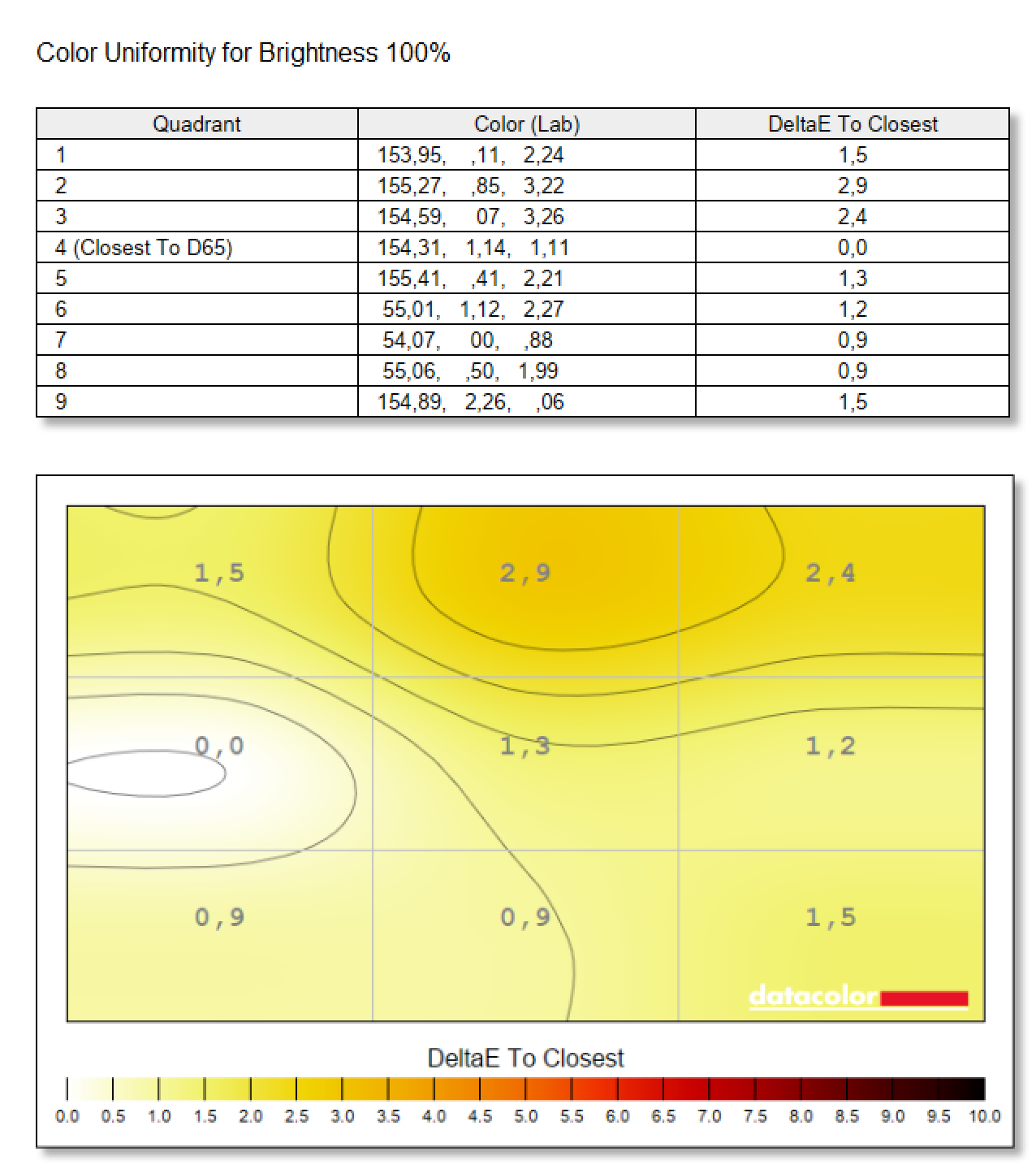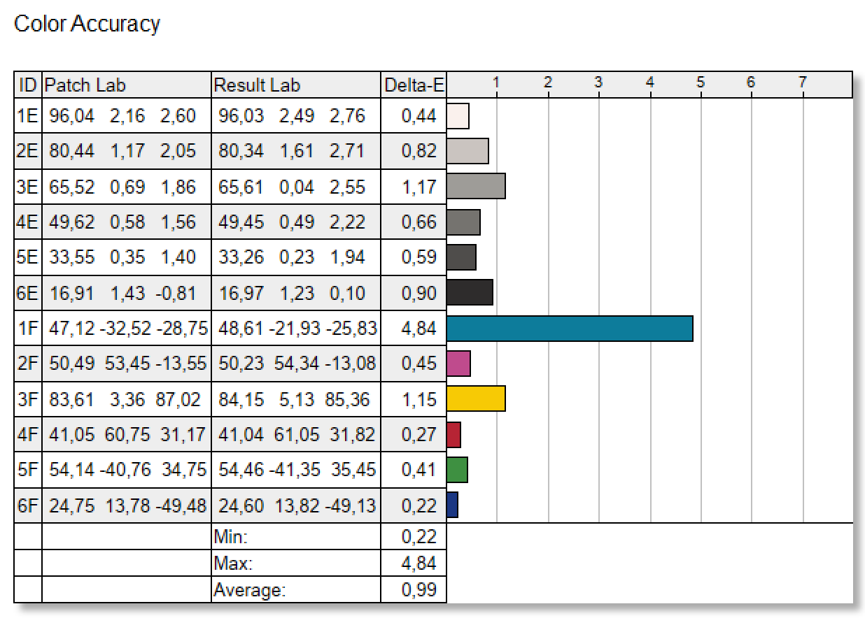 Dokładność kolorów to mocny punkt – średnie ΔE wynoszą około 0,99, z pojedynczą próbką odchyloną do ΔE 4,84, co nadal jest akceptowalne do ilustracji i ogólnego tworzenia treści. W praktyce oznacza to stabilne neutrale, gładką gammę i wyrazisty kontrast bez zlewania cieni, a to oznacza, że twórcy pracujący ściśle w sRGB, czyli treściach cyfrowych, będą zadowoleni. W samym podsumowaniu ocen zestaw testów daje Artist Ultra 16 ocenę ok. 4,5/5 z maksymalnymi notami za gamut i kontrast oraz bardzo solidnymi wynikami w pozostałych kategoriach.