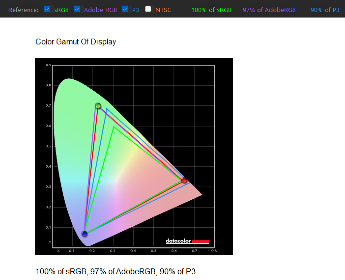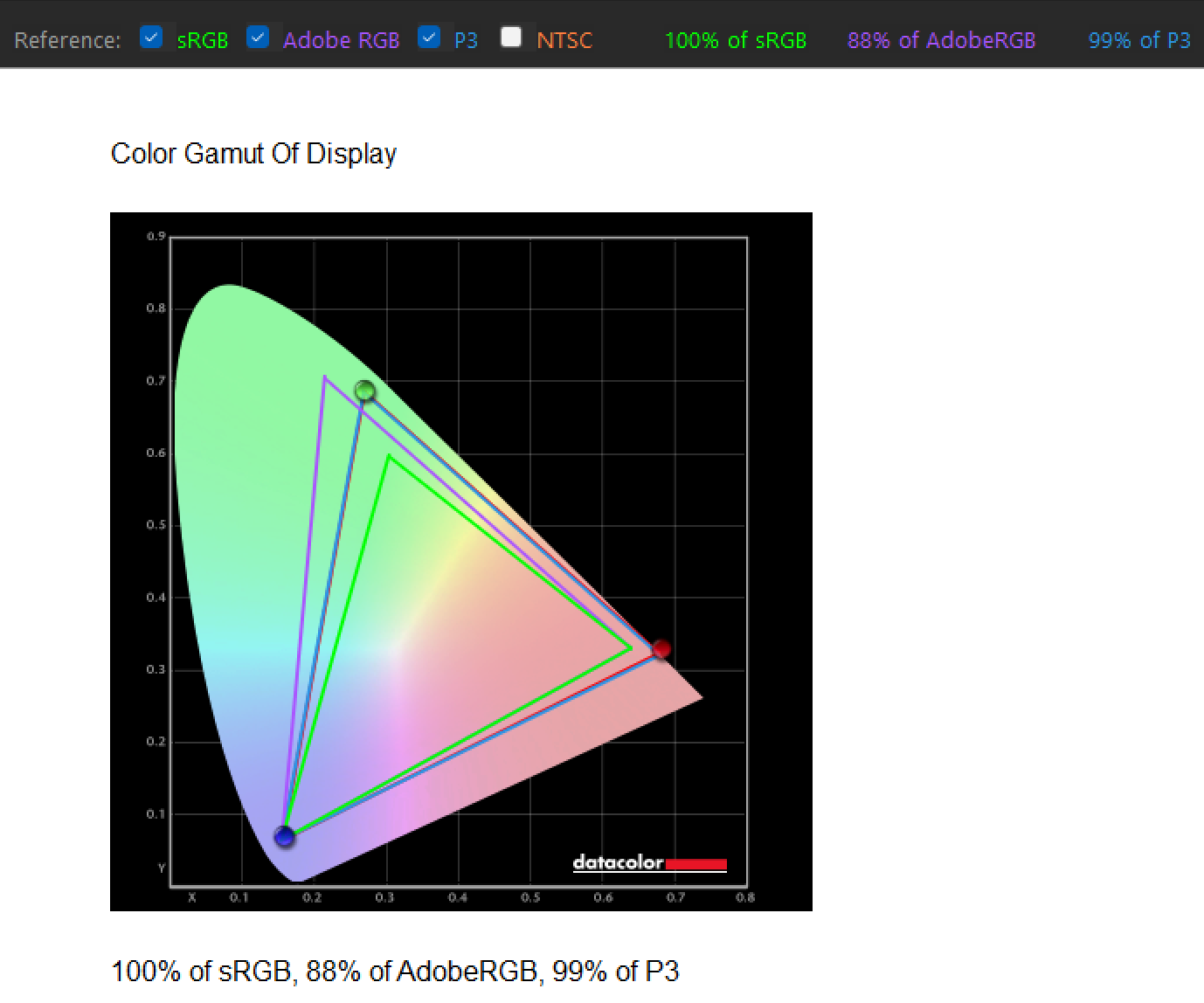 Wchodząc w konkrety specyfikacji, kontrast na poziomie 100000:1 sprawia, że czerń jest rzeczywiście czarna, a przejścia tonalne w cieniach nie zlewają się w jedną plamę. Deklarowana jasność na poziomie 350 nitów jest z kolei wystarczająca do pracy biurowej, ale trzeba pamiętać, że nie jest to panel, który poradzi sobie z ostrym źródłem światła padającym prosto w szybę. Z kolei kolorystycznie dostajemy bardzo ambitne zapewnienia, bo o jakości kolorów świadczy 10-bitowa głębia koloru wraz z pokryciem 99% Adobe RGB, 99% sRGB i 98% Display P3. Gwarantuje to płynne przejścia tonalne i spójną reprodukcję barw w typowych zadaniach graficznych, o czym zresztą świadczy weryfikacja Calman i średnia DeltaE poniżej 1,1 w Adobe RGB