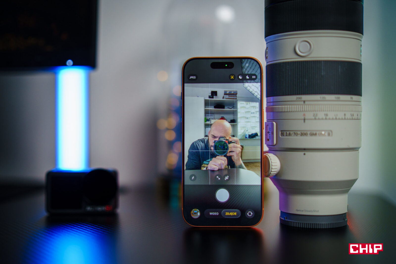 Dam Wam nawet konkretny przykład. Nagrywaliśmy niedawno materiał na Focus na Motoryzację i potrzebowaliśmy zamontować na przedniej szybie aparat z obiektywem szerokokątnym, który obejmie dwie siedzące z przodu osoby. Auto było ciasne i w żaden sposób nie mogliśmy wpasować tam uchwytu. Podpieliśmy mikrofony do iPhone’a 16 Pro, powiesliśmy go na szybie i zarejestrowaliśmy nim cały materiał. Mucha nie siada!