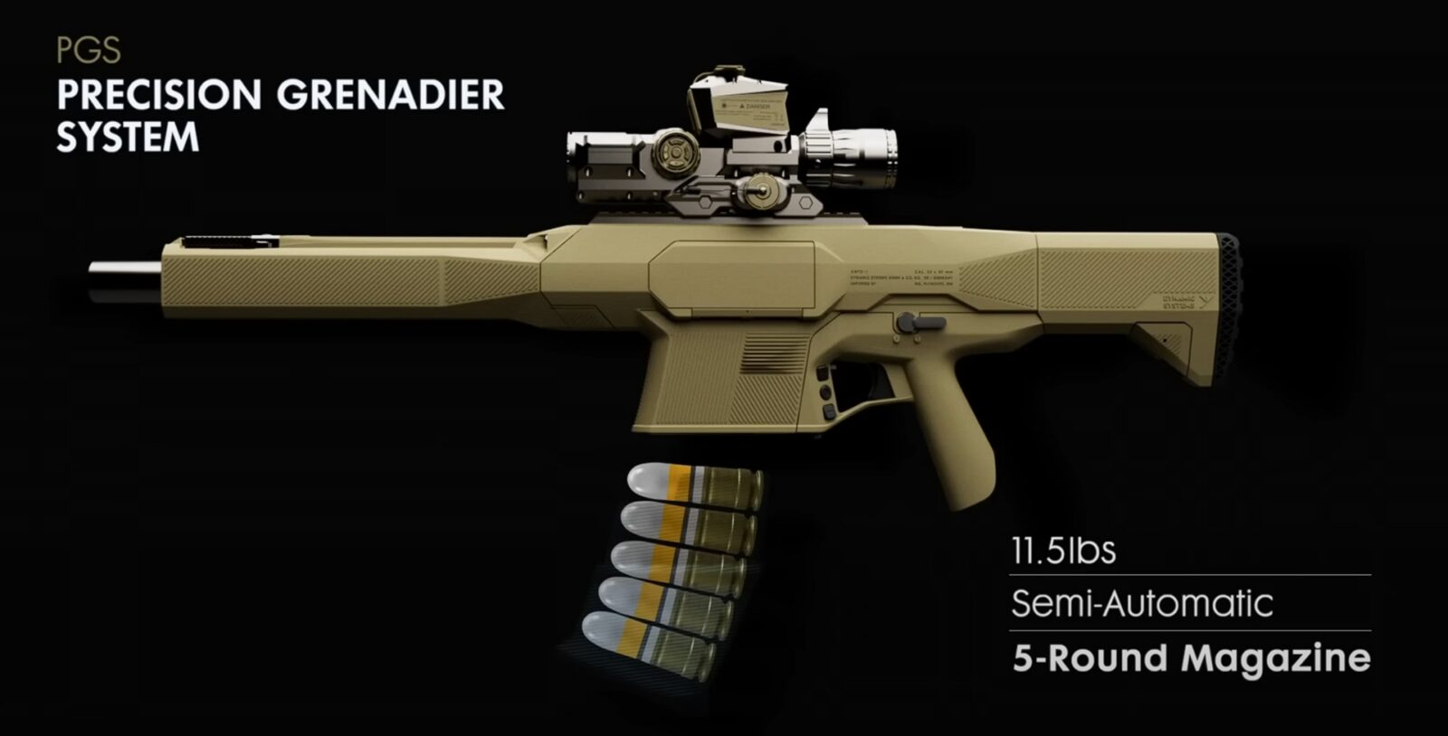Obecny projekt powstaje w odpowiedzi na wymagania programu Precision Grenadier System. Inżynierowie skupili się na rozwiązaniu głównych problemów poprzednika, czyli nadmiernej wagi, dużych gabarytów i wysokich kosztów produkcji. Efekt? Nowy granatnik to półautomatyczna konstrukcja ważąca około 5,2 kg i zasilana z pięcionabojowych magazynków pudełkowych. Nie jest to jednak przypadek, bo PGS stawia przed konstruktorami znacznie szersze wymagania niż w przypadku poprzednika. Oprócz zdolności do rażenia celów za osłonami, broń musi umożliwiać zwalczanie lekko opancerzonych pojazdów, małych dronów, wyważanie drzwi oraz użycie w walce wręcz. Efektywny zasięg ma z kolei wynosić co najmniej 500 metrów.