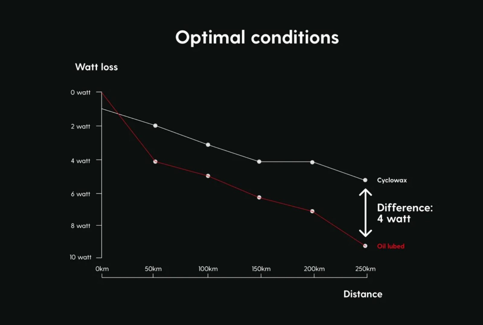Cyclowax przedstawił konkretne dane porównawcze, które mają przekonać niedowiarków. Według ich badań, po przejechaniu 250 kilometrów tradycyjny smar olejowy powoduje stratę około 8 watów mocy w napędzie, podczas gdy nowe woski ograniczają tę stratę do zaledwie 4 watów. Dla jeżdżącego rekreacyjnie taka różnica może wydawać się niewielka, ale w świecie zawodowego kolarstwa każdy zaoszczędzony wat ma znaczenie, bo na dystansie 40-kilometrowego wyścigu może to przełożyć się nawet na kilkadziesiąt sekund przewagi.