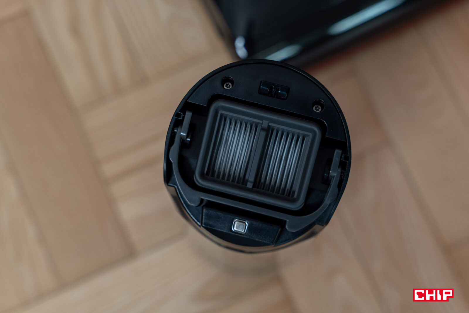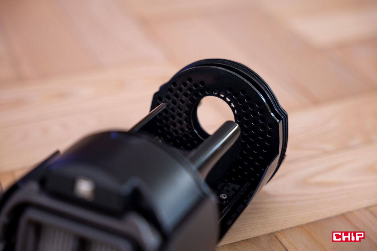 Połączenie rączki ze szczotką to rzecz, która poprzednio budziła moje obawy. W końcu do ważącego ponad 5,7 kilograma korpusu dołączamy dość smukłą rączkę, łączącą się z nim przez kliknięcie. Mogę was jednak zapewnić, że i tym razem połączenie tych dwóch elementów jest mocne. Mimo że dopasowanie rączki do otworu nie jest w 100% szczelne i producent pozwolił na delikatny luz, tak nie mamy poczucia, że coś miałoby tu odpaść. Jeżeli będziemy chcieli odłączyć rączkę od korpusu, to niezbędne okaże się narzędzie pokroju igły, która skorzysta z dołączonego otworu.