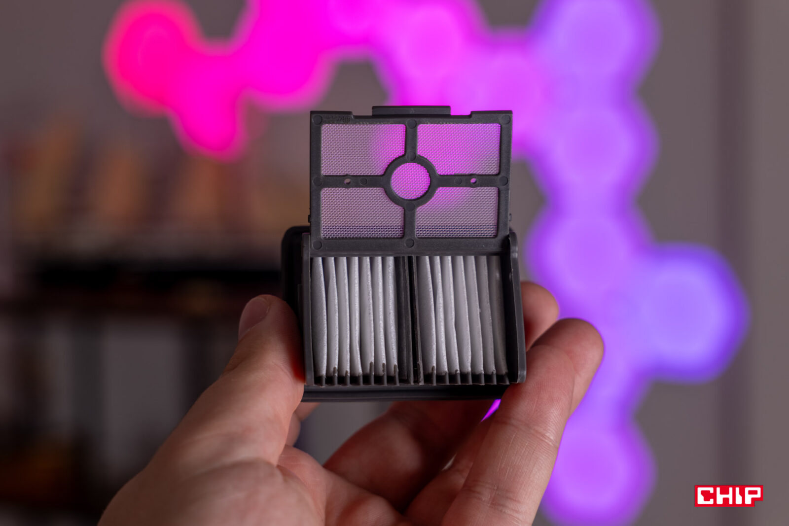 Sam proces czyszczenia poszczególnych elementów jest prosty. Rolkę mopującą możemy łatwo wyjąć, korzystając z mechanizmu blokady na bocznej ściance części mopującej, choć najczęściej tę wyczyści samo urządzenie. Podobnie łatwo wyjmujemy pojemnik na czystą oraz brudną wodę – wystarczy złapać za przeznaczone do tego rączki. W przypadku pojemnika na brudną wodę rączka ukryta w module po podniesieniu poluzowuje mechanizm i pozwala rozdzielić filtr drobin od reszty pojemnika. Potem wystarczy już tylko bieżąca woda i szczotka dołączona do zestawu, by pozbyć się wszystkich elementów, które mogły znaleźć się w plastikowych trybach.