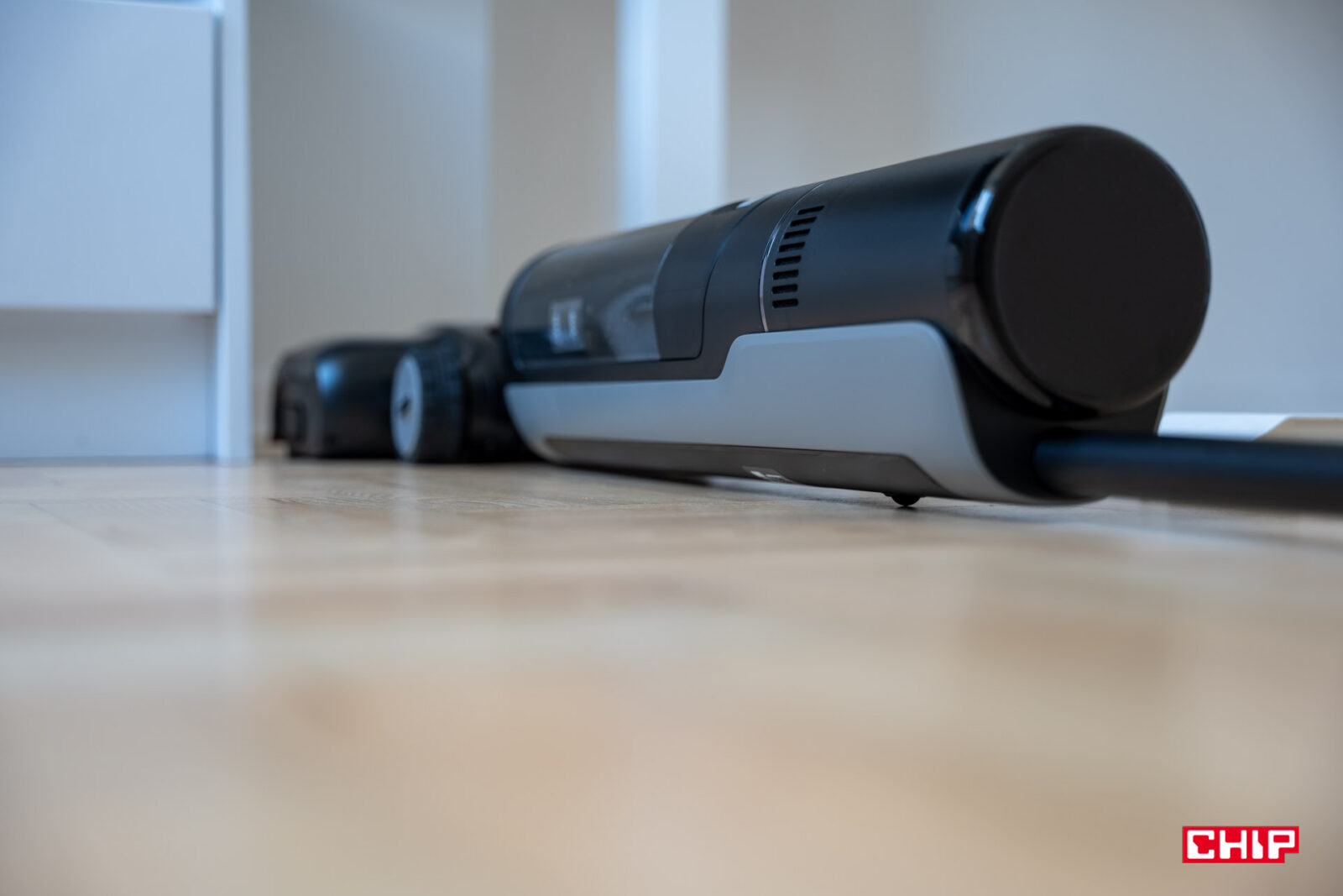 Jak już wspominałem wcześniej, konstrukcją porusza się gładko, bo ta jest dość zwrotna. Dreame H15s traktuję przede wszystkim najpierw jako mop, a dopiero potem jako odkurzacz. To oznacza, że lepiej nie jechać z nim na fragmenty kartonu czy duże kawałki brudu, choć rolka mopująca potrafi zgnieść pomniejsze zanieczyszczenia. Jednak tak długo, jak czyścimy podłogi z jogurtów, musów czy sosów, a przy okazji chcemy odkurzyć trochę kurzu, włosów i sierści, to nie dojdzie do żadnej tragedii. Należy jedynie pamiętać, że po niektórych plamach warto przejechać się od kilku do kilkunastu razy i to przede wszystkim ze względu na to, by doszło do wyczyszczenia wałka z kleistych substancji.