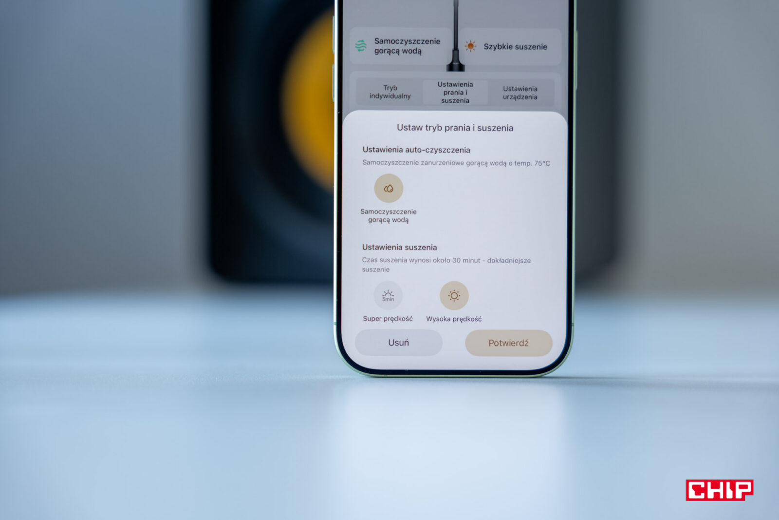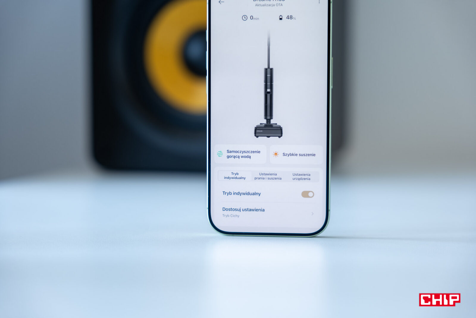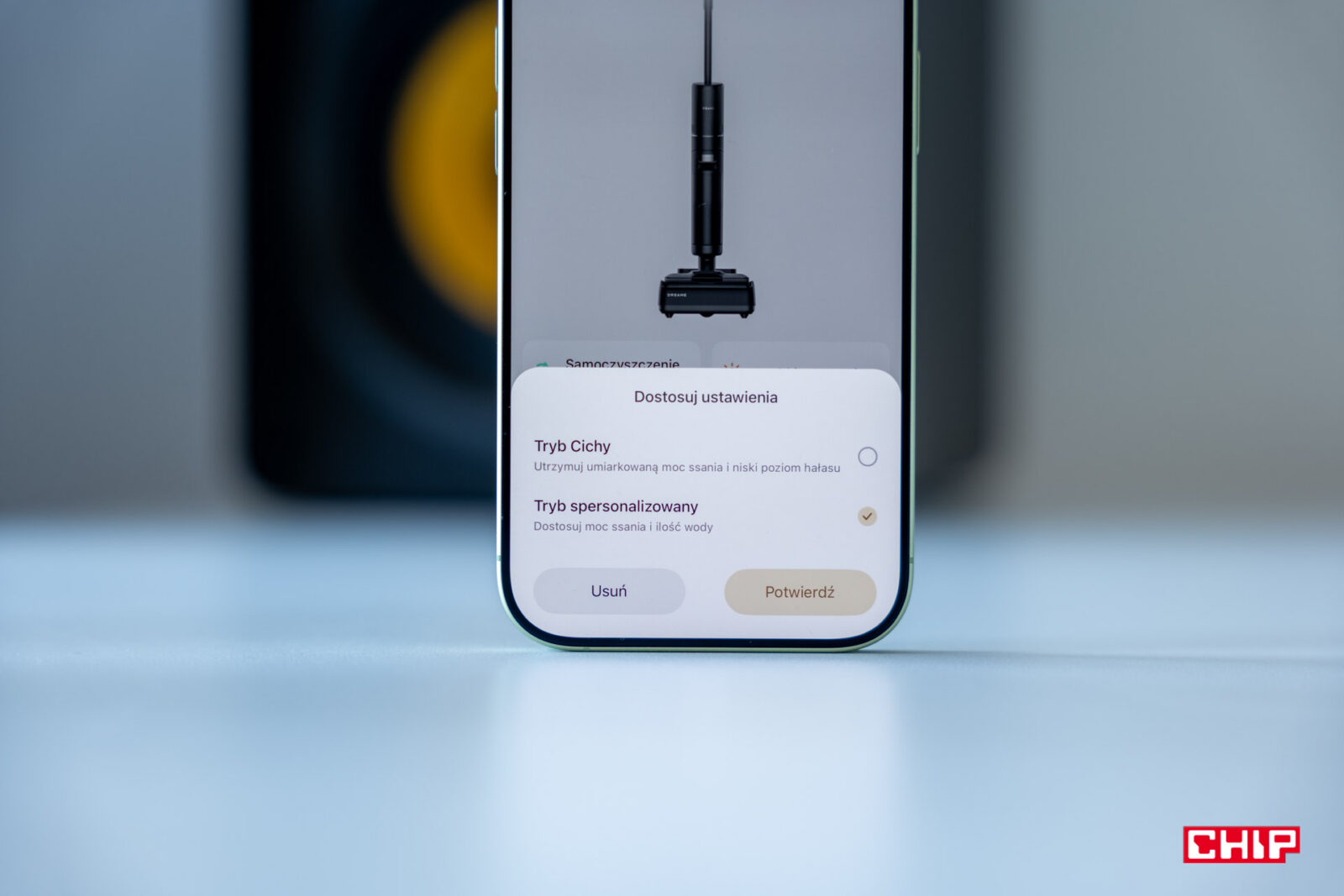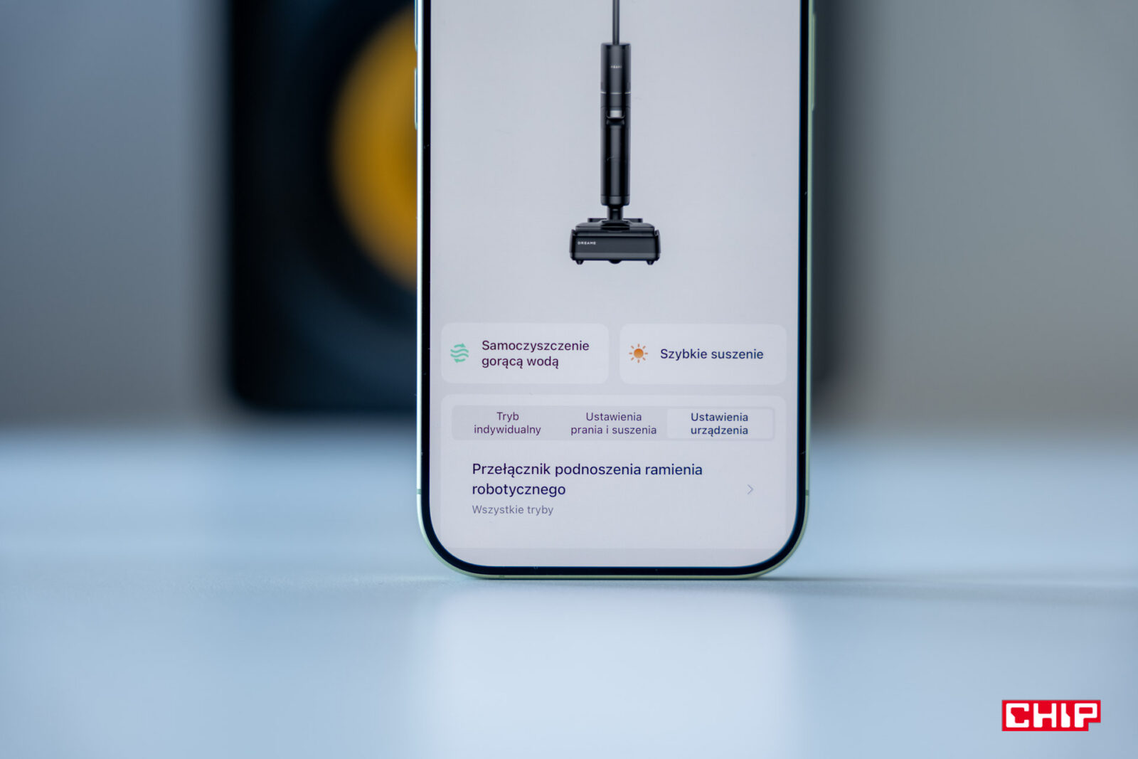 Spersonalizujemy ustawienia jednego z trybu, który kryje się pod ikoną serduszka. To tam możemy stworzyć własne ustawienia, choć sam nie czułem takiej potrzeby, bo umieszczono tam tryb cichy. Jeśli jednak chcemy, wybierzemy tam jedno z ustawień dotyczących mocy czyszczenia podczas pracy oraz włączenia ramienia ze ściągaczką. Oprócz tego znajdziemy regulację tego, czy suszenie powinno zostać uruchomione zaraz po włożeniu sprzętu do doku, czy może będzie wymagało włączenia konkretnego przycisku, jak i zadecydujemy, czy będzie to krótszy bądź dłuższy program.