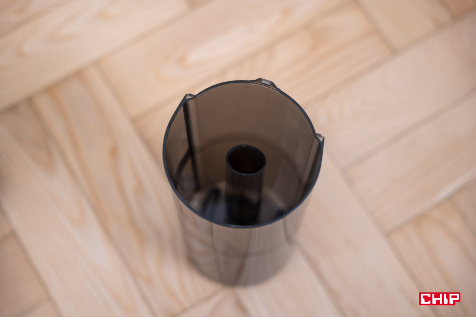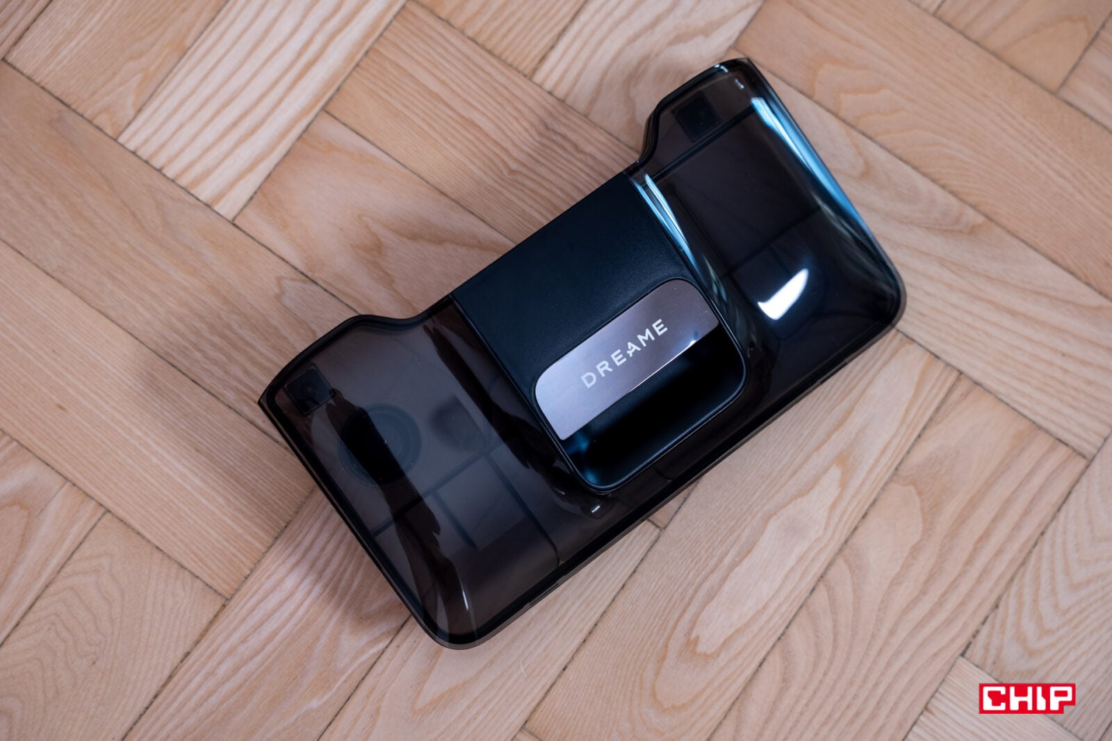 Do trzymania i przenoszenia Dreame H15s służy rączka. Niby nic nieoczywistego, ale jeśli tylko spróbujecie złapać urządzenie za korpus, to zobaczycie na nim całą plejadę wyraźnie widocznych odcisków palców. Do tego musicie się przyzwyczaić, że pojemnik na czystą wodę będzie wyglądał jak zaparowany. Na szczęście nie ulatuje z niego woda – po prostu znajduje się blisko części suszącej. Podobne ślady wody, niezależnie od tego jak dokładnie wyczyścicie pojemnik, znajdą się w zbiorniku na brudną wodę. Nie byłem w stanie doszorować go tak, żeby nie pozostawało choć kilka nieodparowanych kropel.
