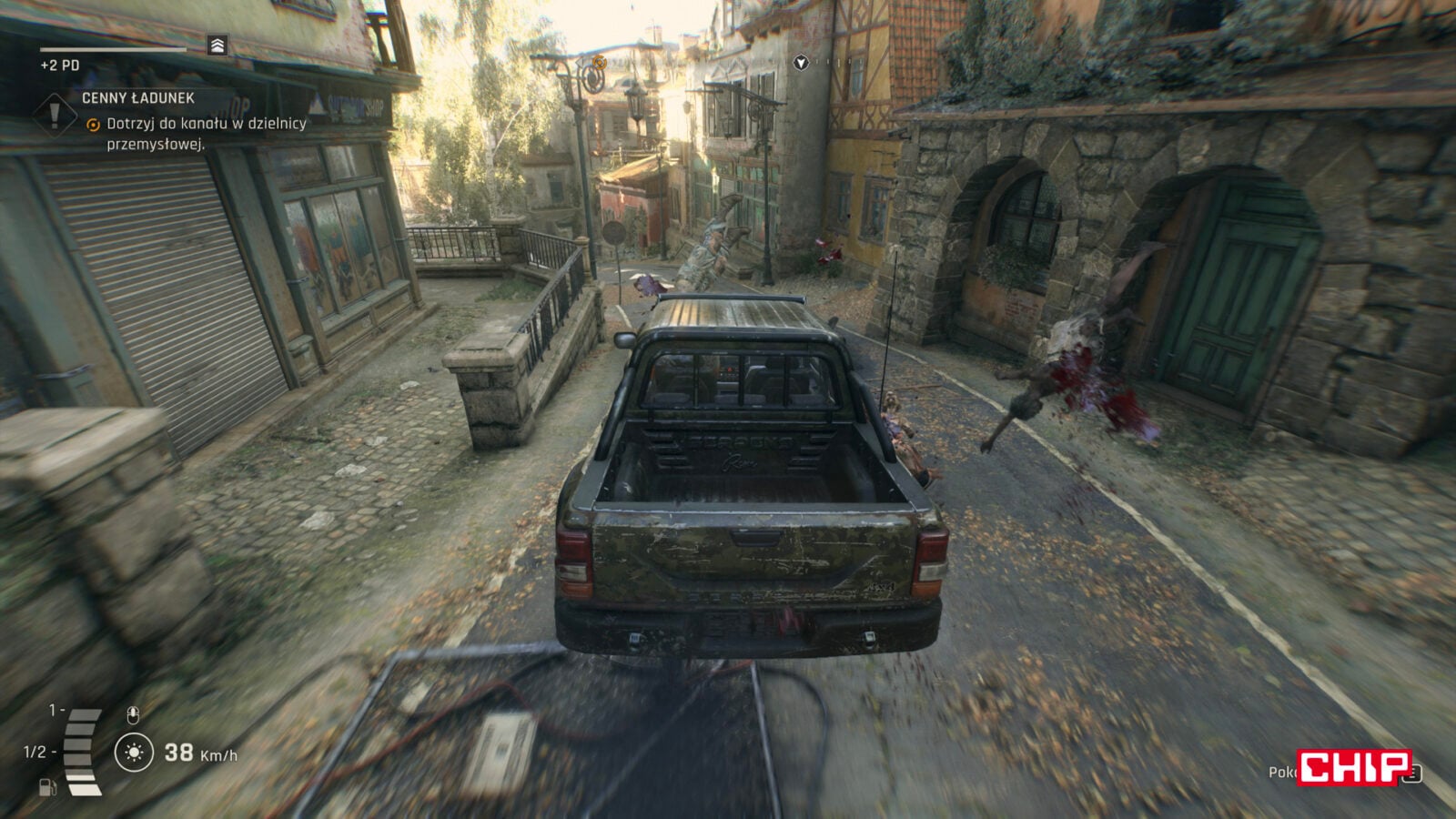 Choć w mieście, przynajmniej kontynuując wątek główny, nie spędzimy za dużo czasu. Sporo spędzimy go na terenach wokół miasta, a jeszcze więcej na przemieszczaniu się. Dying Light: The Beast nie ma systemu szybkiej podróży i wszędzie musimy biegać lub jeździć samochodem. Choć głównie biegać, chyba że będziemy pamiętać o konieczności zbierania benzyny do samochodów. A raczej samochodu, bo dostępny jest tylko jeden rodzaj auta – terenowy pickup. Konieczność latania tam i z powrotem bardzo mocno sztucznie wydłuża rozgrywkę, przez co wręcz można poczuć się oszukanym, bo często ma się wrażenie, że marnujemy za dużo czasu na bieganie po mapie tylko po to, aby dotrzeć do startu nowego zadania. Co sztucznie wydłuża czas rozgrywki.