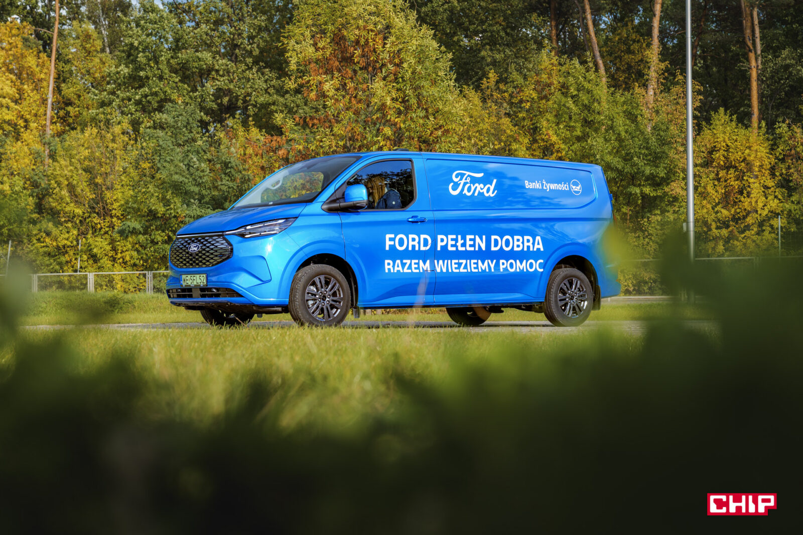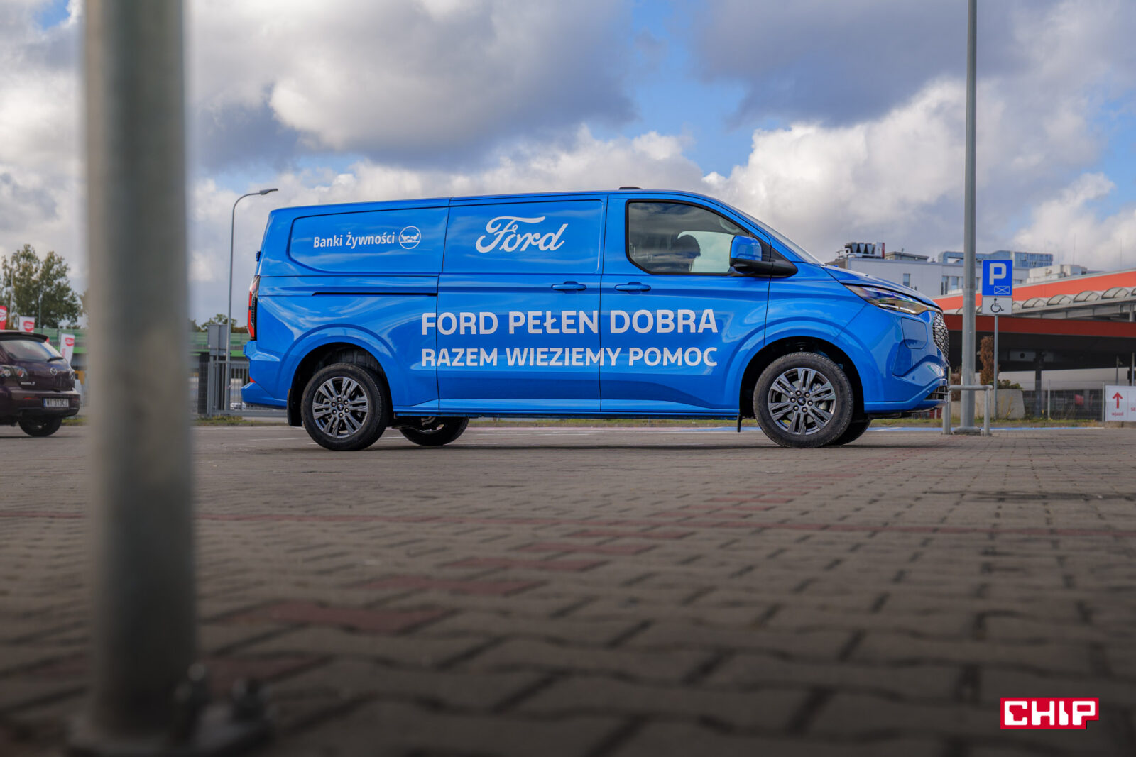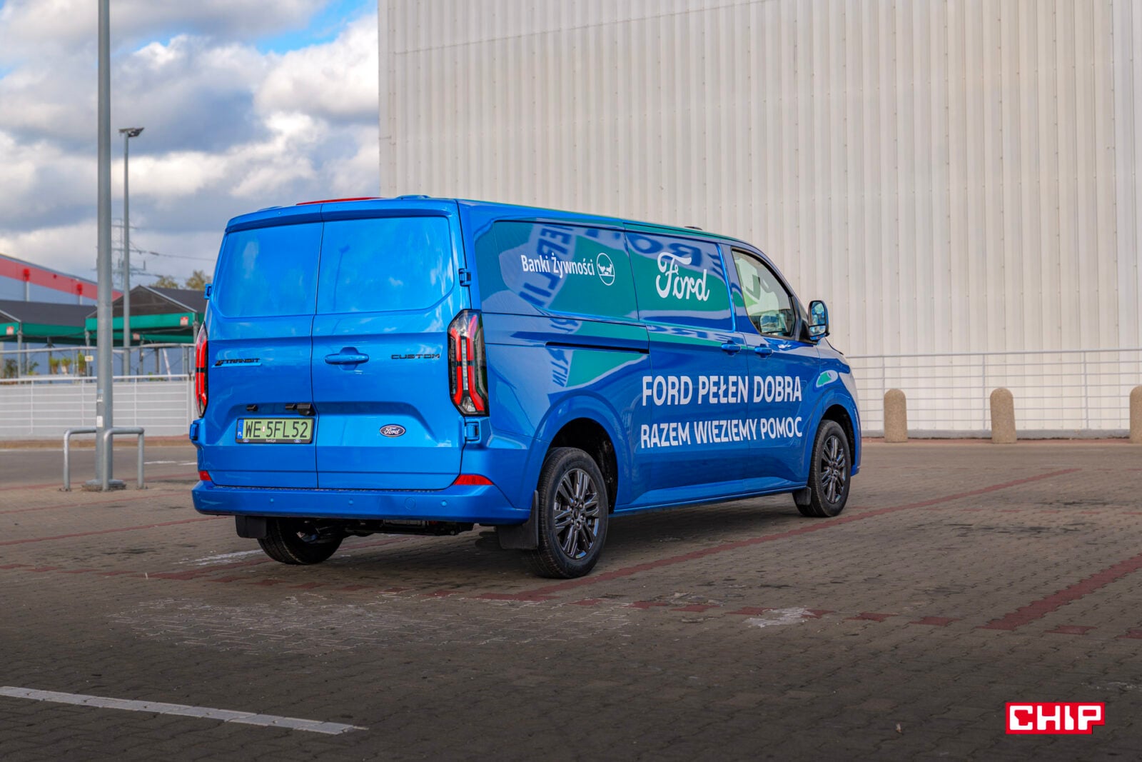 W zasadzie nie zdarza się, aby auta prasowe były w jakikolwiek sposób oklejone. W przypadku E-Transita mamy reklamę Ford Banki Żywności i korzystając z okazji warto powiedzieć, co to takiego jest. Jest to spólna akcja Ford Polska oraz Federacji Polskich Banków Żywności (FPBŻ), zorganizowana w celu wsparcia osób znajdujących się w trudnej sytuacji materialne.