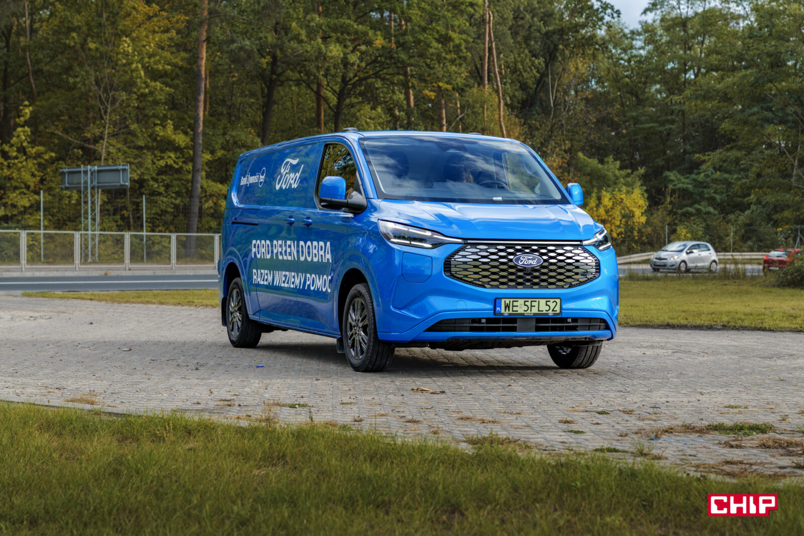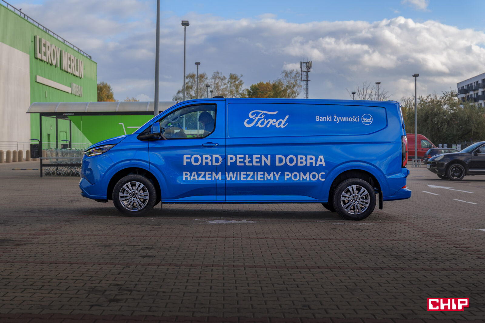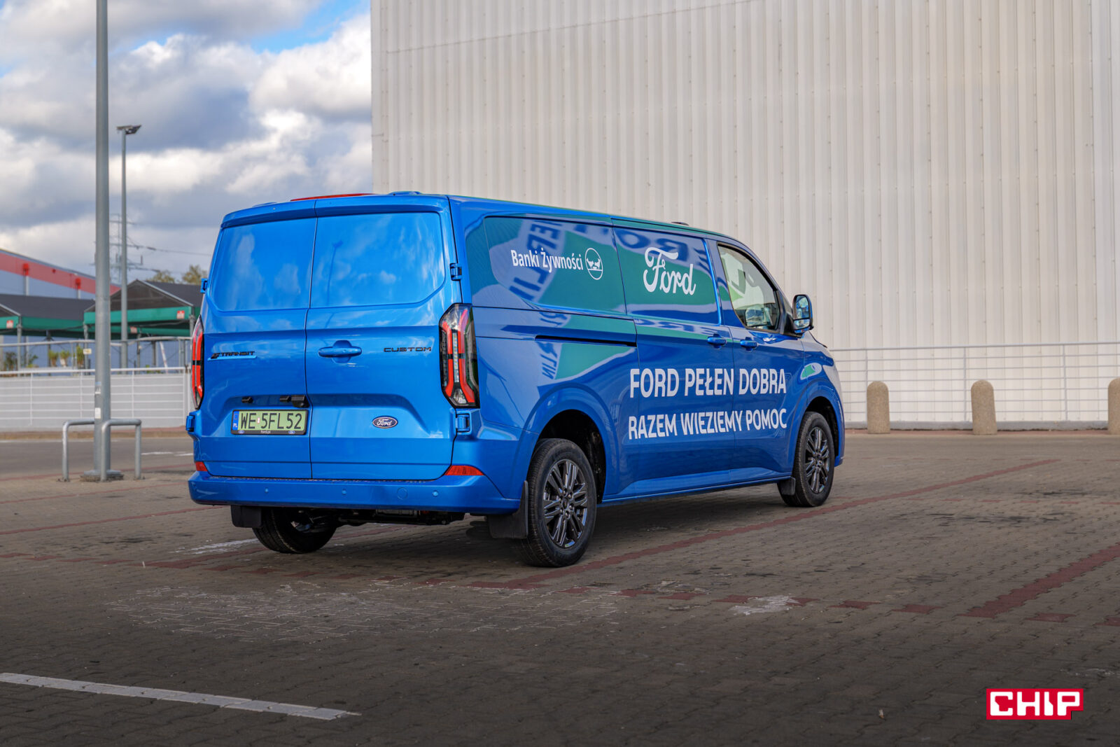 W zasadzie nie zdarza się, aby auta prasowe były w jakikolwiek sposób oklejone. W przypadku E-Transita mamy reklamę Ford Banki Żywności i korzystając z okazji warto powiedzieć, co to takiego jest. Jest to spólna akcja Ford Polska oraz Federacji Polskich Banków Żywności (FPBŻ), zorganizowana w celu wsparcia osób znajdujących się w trudnej sytuacji materialne.