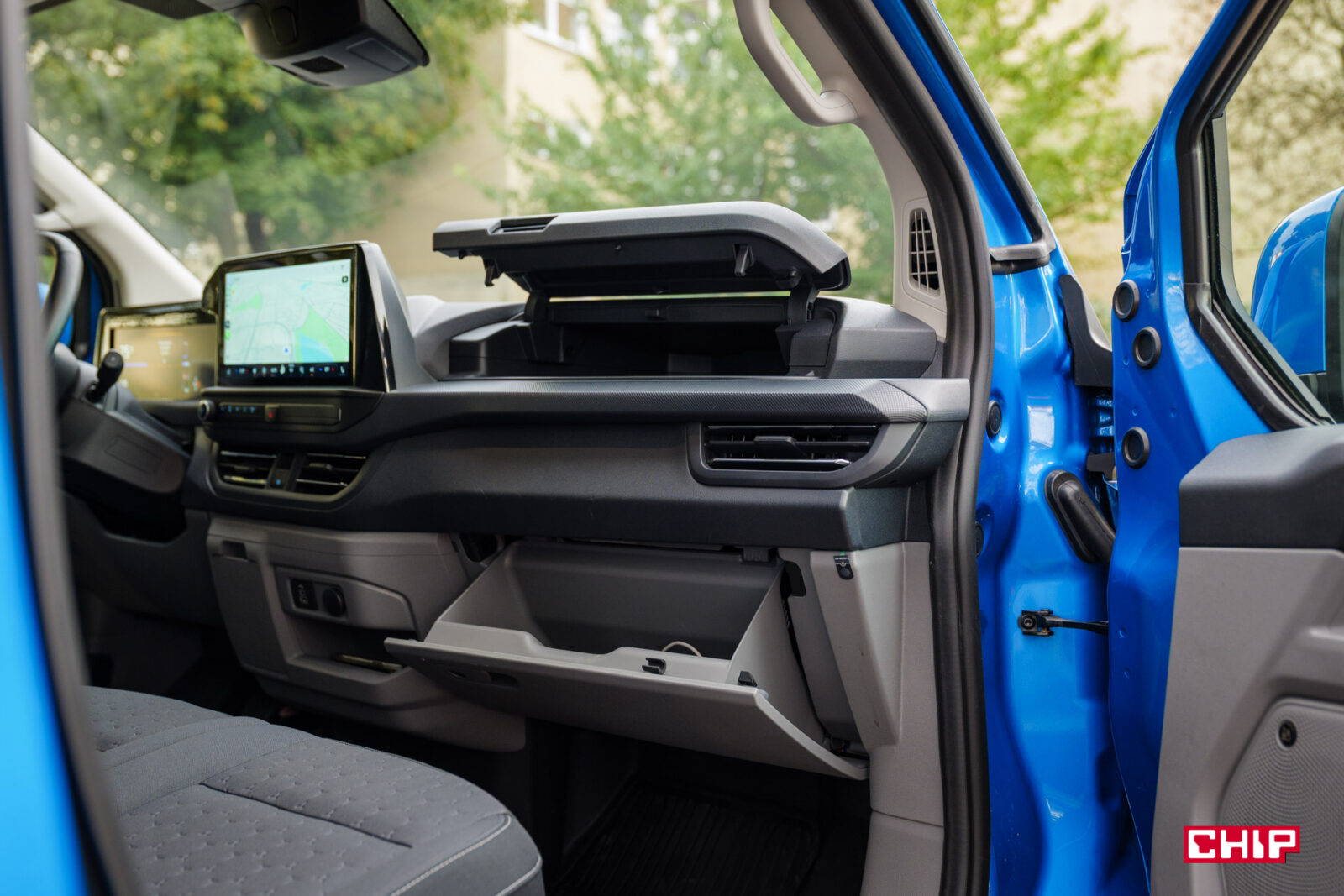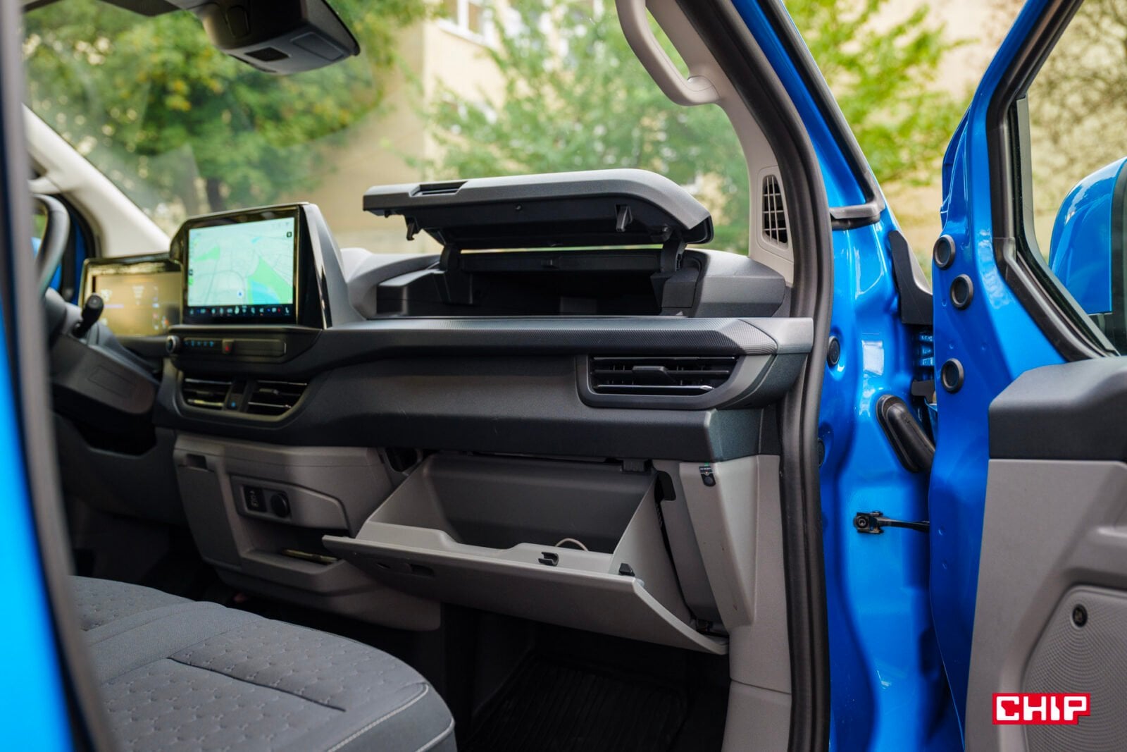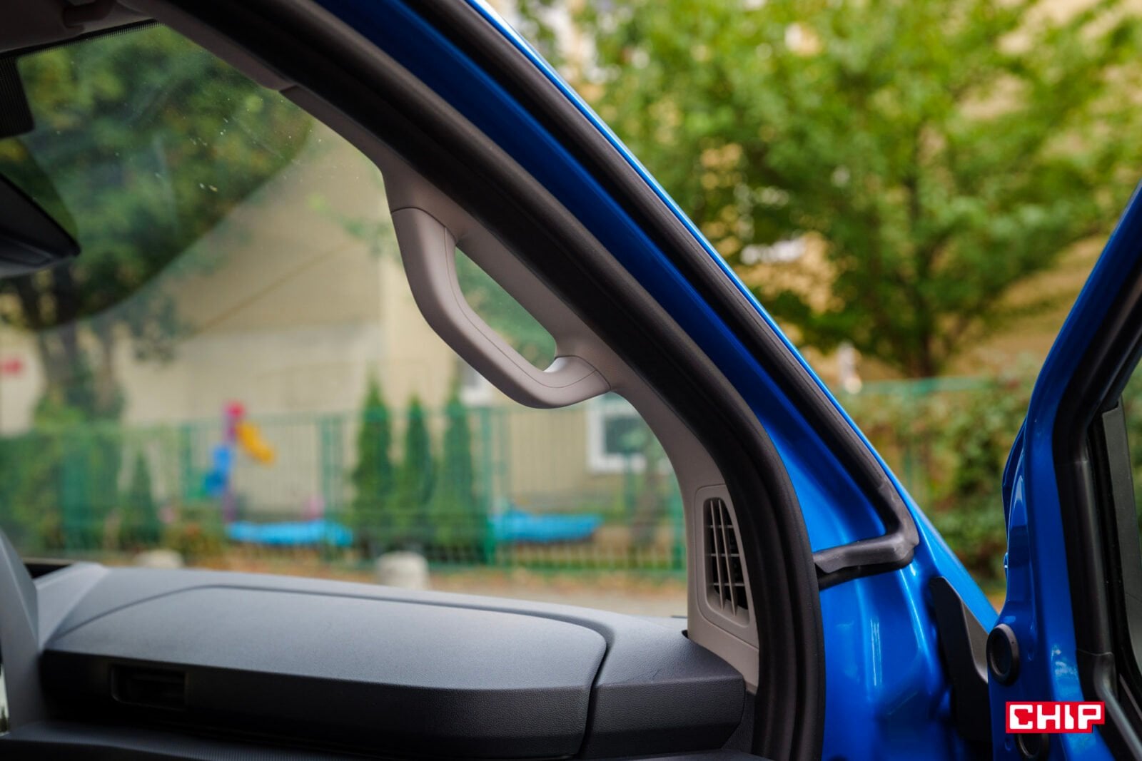 Nie brakuje schowków. Podwójne w drzwiach, do tego dwa schowki przed fotelem pasażera, kolejne na szczycie deski rozdzielczej oraz na dole, w jej centralnej części. Nie ma tutaj, często spotykanej w autach dostawczych, półki pod sufitem, choć dałoby się ją bez problemu zmieścić.