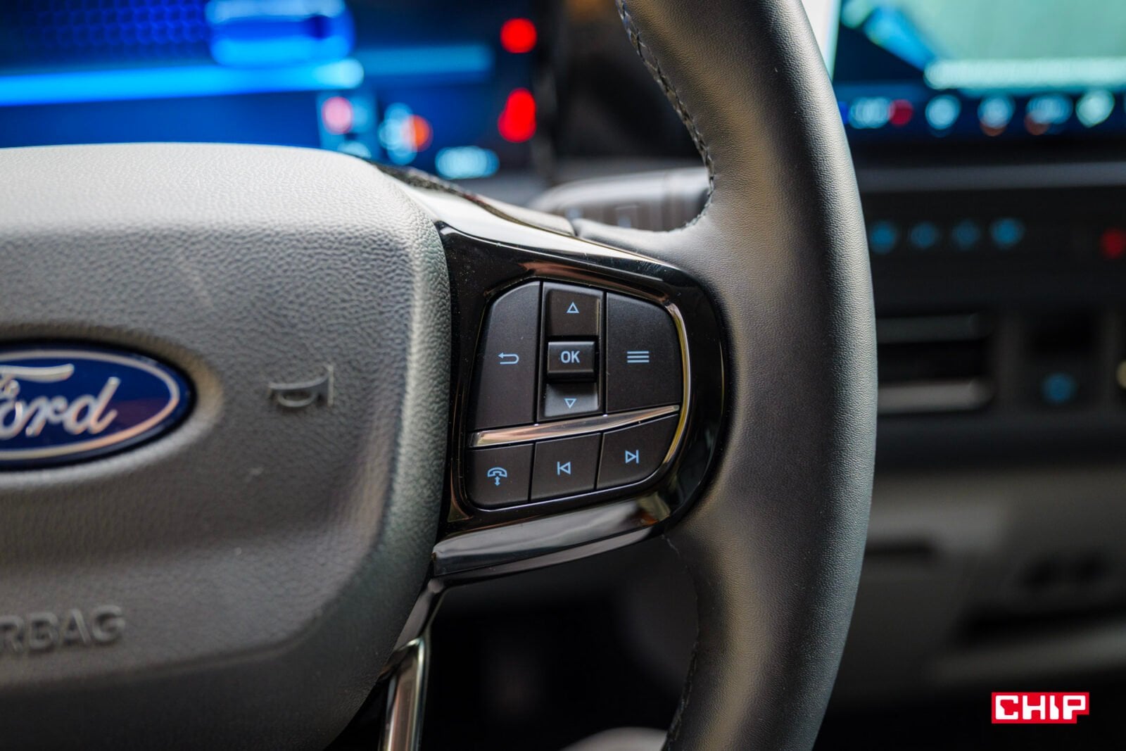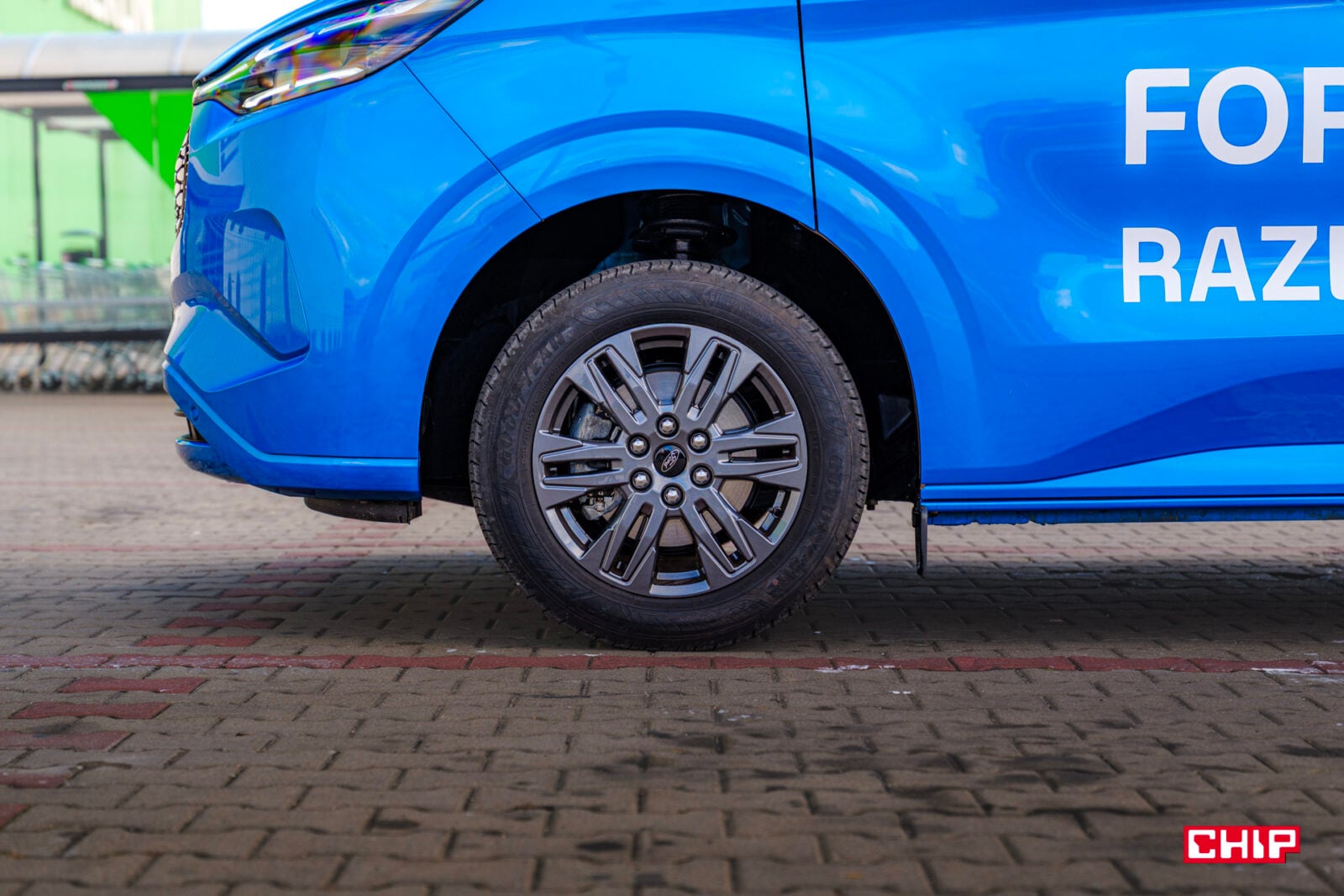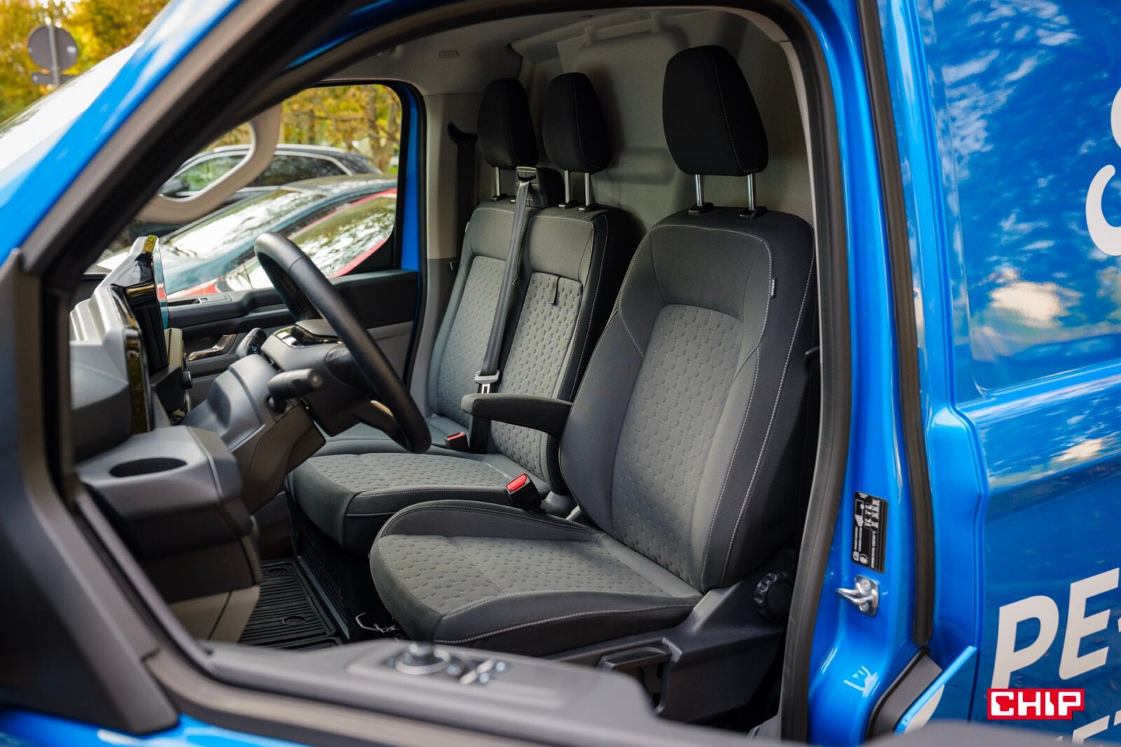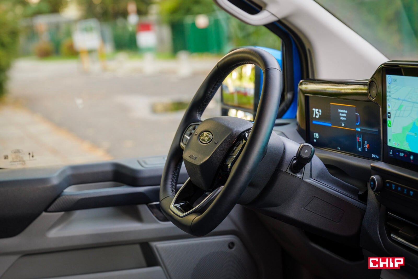 Pochwalić trzeba zawieszenie elektrycznego Transita, które jest zaskakująco komfortowe. Można nawet pokusić się o stwierdzenie, że jest bardziej komfortowe, niż w przypadku niejednego auta osobowego. Jasne, jest miękkie, w końcu musi zmierzyć się ze sporym załadunkiem, ale tak dobrego wybierania nierówności się nie spodziewaliśmy.