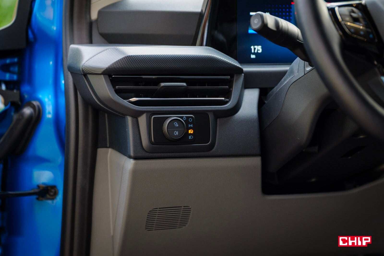 Jak przystało na auto dostawcze Ford E-Transit Custom ma proste, ale funkcjonalne wnętrze. Choć w wykonaniu dominuje plastik, to jest on twardy, dobrze spasowany i bardzo przyzwoitej jakości.