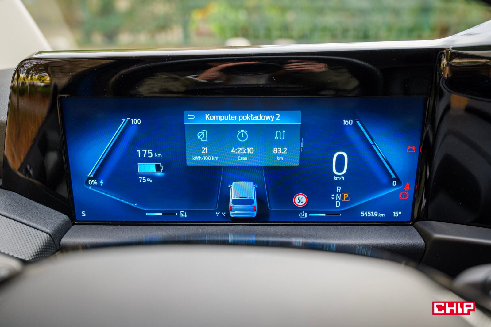 Drugi ekran mamy za kierownicą. Duży, czytelny, z dwoma wariantami widoku – prostym oraz rozbudowanym i zmieniającymi się małymi akcentami kolorystycznymi dopasowanymi do trybu jazdy.