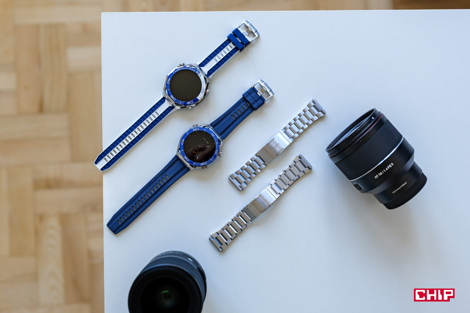 Skupiam się na wyglądzie, ale w końcu zegarek, to jest jego najważniejszy element, szczególnie w niebieskim kolorze. To może teraz coś o wygodzie noszenia i ta jest wzorowo. Bo zarówno pasek niebieski z poprzednika, jak i ten grecki z obecnego są od wyjęcia z pudełka mega elastyczne, bardzo miękkie i dosłownie takie paski chcę wyciągać z pudełka. Paski są wykonane z fluoelastomeru i jest to o tyle ciekawy materiał, że jest idealny dla osób z alergiami na syntetyczne materiały. Dotyczy to nie tylko Ultimate’a, ale wszystkich zegarków Huaweia z takimi paskami.