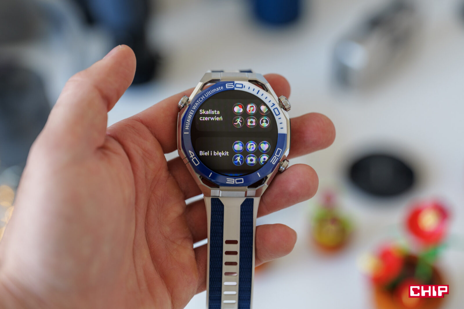 Watch Ultimate 2 wygląda dosłownie inaczej. W niebieskim wariancie zachował kolorystykę i w zasadzie na tym koniec. Zmienił się bezel, który już nie jest okrągły, a kształtem nawiązuje do serii Watch GT 6 i jest dwukolorowy, podobnie jak miało to miejsce w zielonej wersji pierwszego Ultimate’a. Co wzbudza spore kontrowersje i jeśli ktoś narzekał na wygląd dwójki to głównie słyszałem właśnie o dwóch kolorach.