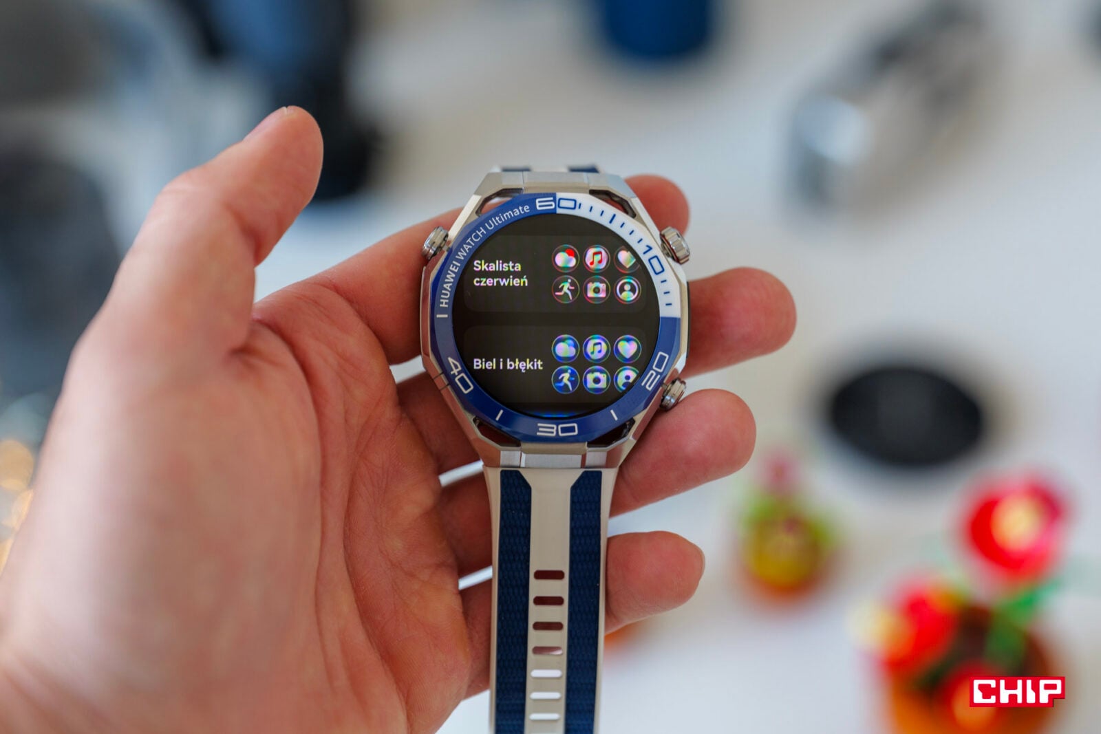 Ekran i tu przyznam, że jak siedziałem na pokazie przedpremierowym zegarków Huaweia to mocno kombinowałem, co dostaniemy w Watchu Ultimate. Chwilę wcześniej dostałem informację, że w serii Watch GT 6 Pro ekrany mają mieć jasność 3000 nitów, więc poprzeczka wisiała wysoko. Z drugiej strony ekranowi pierwszego Ultimate’a kompletnie niczego nie brakuje i to nadal jest topowy wyświetlacz. Bez zmian jest rozdzielczość 466 x 466 pikseli i średnica 1,5 cala. Nadal jest to panel LTPO AMOLED, ale drugiej generacji i jego maksymalna jasność wzrosła z 1000 do 3500 nitów. Czy to widać? Tak, o ile mamy te dwa zegarki obok siebie w bardzo jasnym otoczeniu. Bo, tu się powtórzę, pierwszej generacji zupełnie niczego nie brakuje.