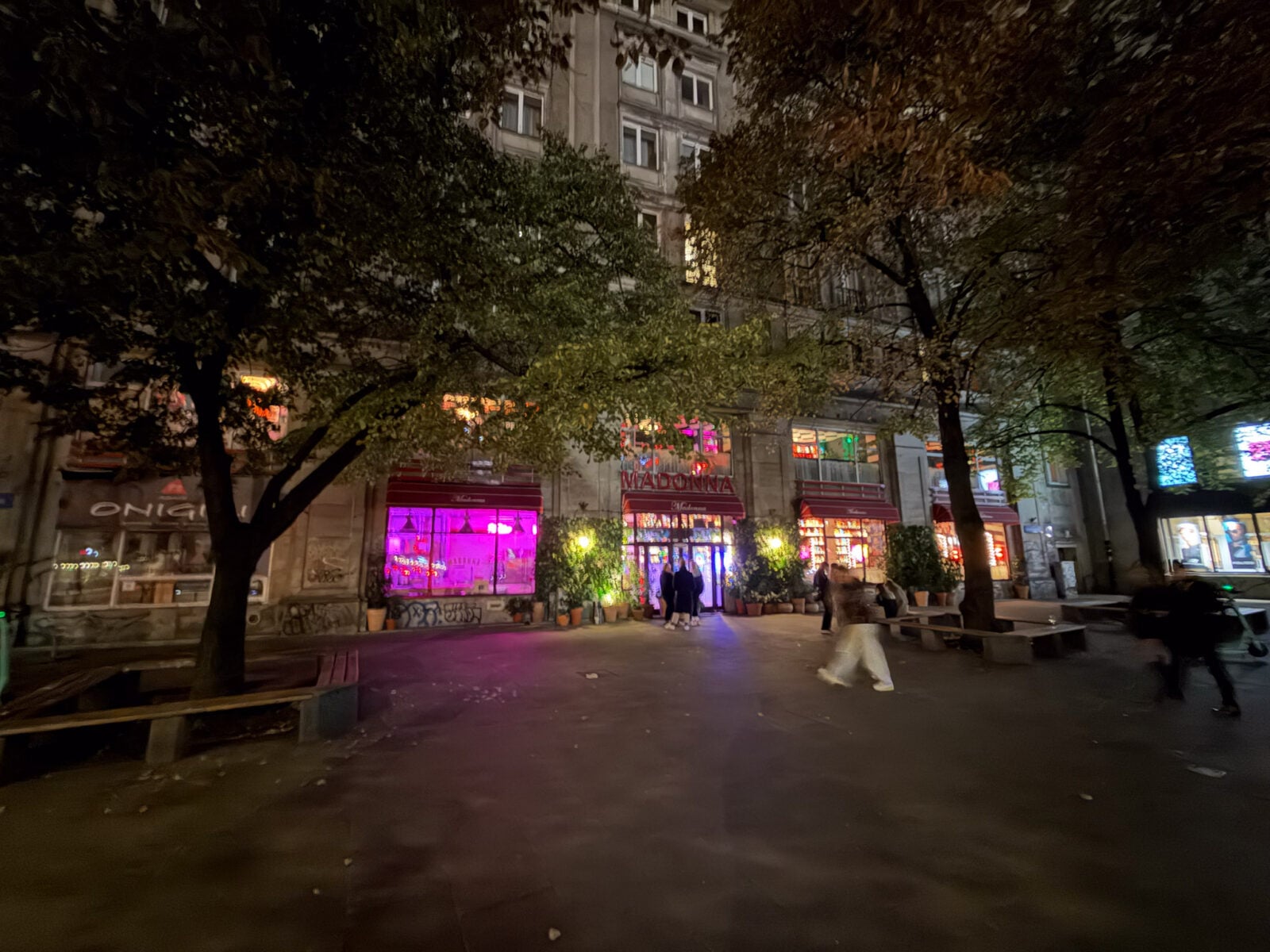 Pomijając jednak ten dziwny, choć istotny problem, sama jakość zdjęć nocą jest bardzo dobra. Kadry są rozświetlone w nienachalny sposób i rezultat zbliża się do tego, co widzi ludzkie oko. Producent nie postawił też na agresywne doświetlanie kadru i w efekcie nie wydobywa tu detali z ciemniejszych elementów kadru, ale raczej stawia na mniejszy poziom szumów. Te oczywiście są obecne, ale nie na tyle, by zniekształcić odbiór zdjęć. Nieco trudniej o nierozmyte zdjęcie w przypadku aparatu ultraszerokokątnego, ale to w dalszym ciągu nie jest poziom, który byłby martwiący. Przyszłe generacje telefonów Apple muszą rozwiązać problem odbijających się obiektów. Mnie zniechęciłoby to do zakupu, ale dla osób bez konkretnych wymagań wobec zdjęć nocnych był to zaledwie powód do żartów.