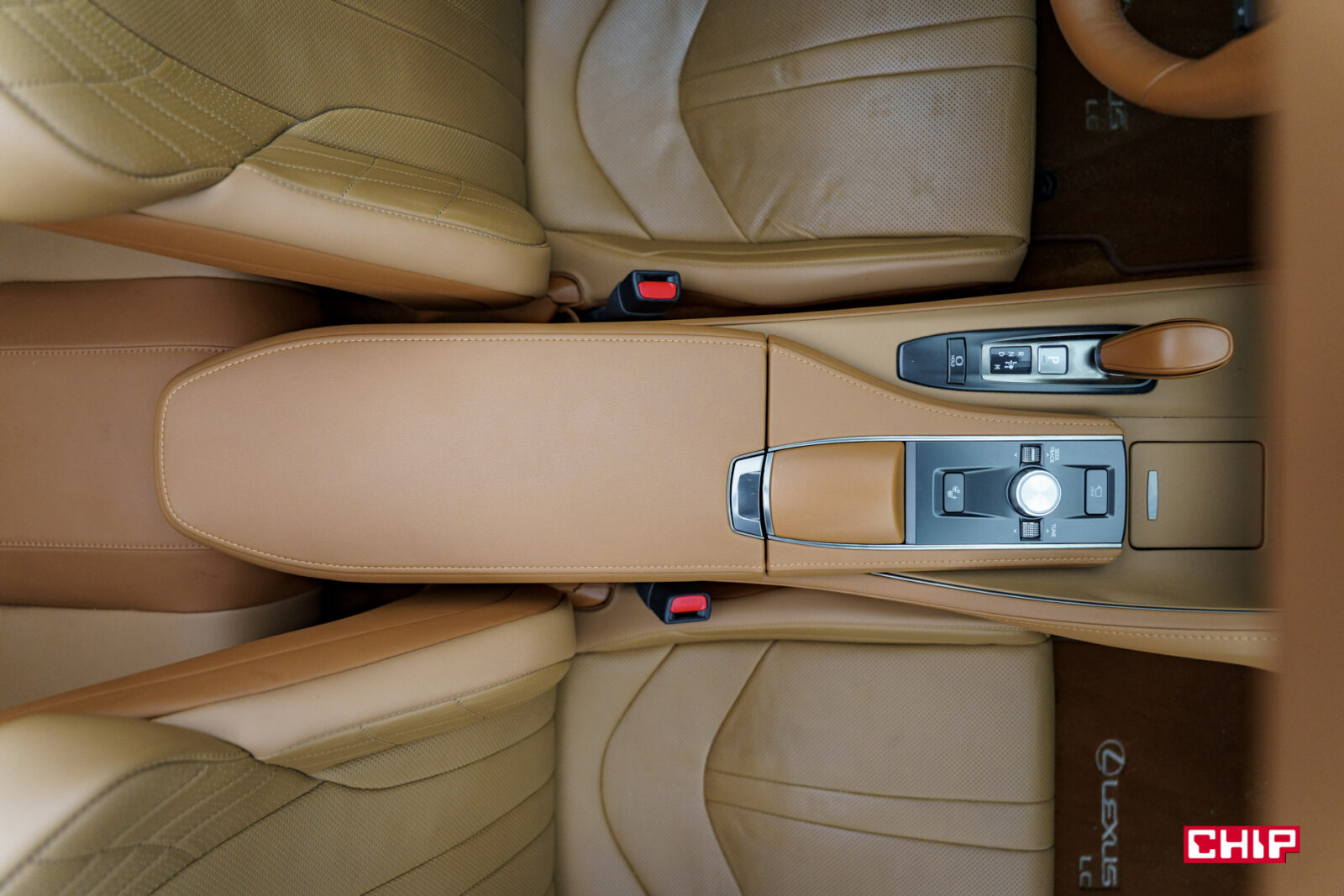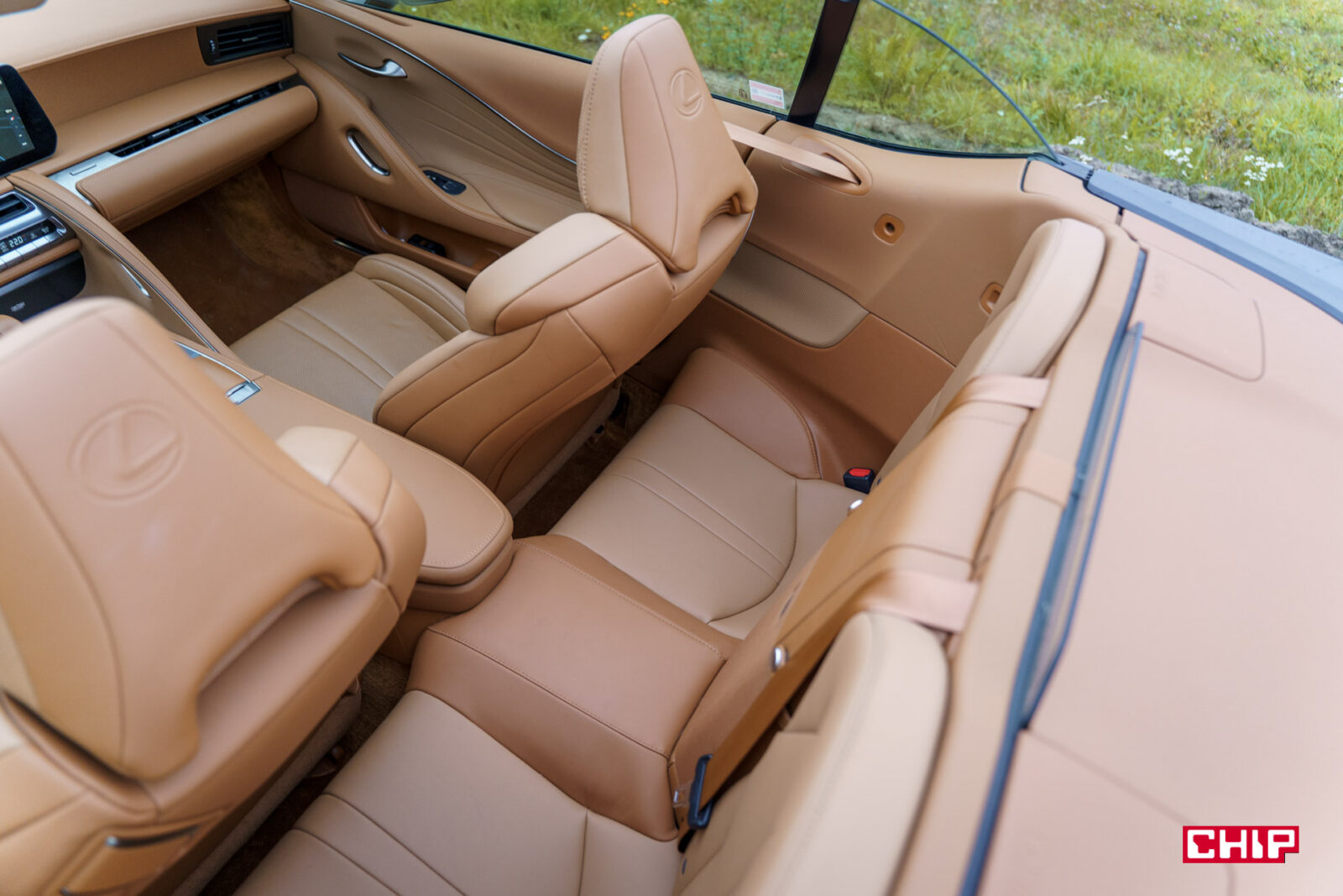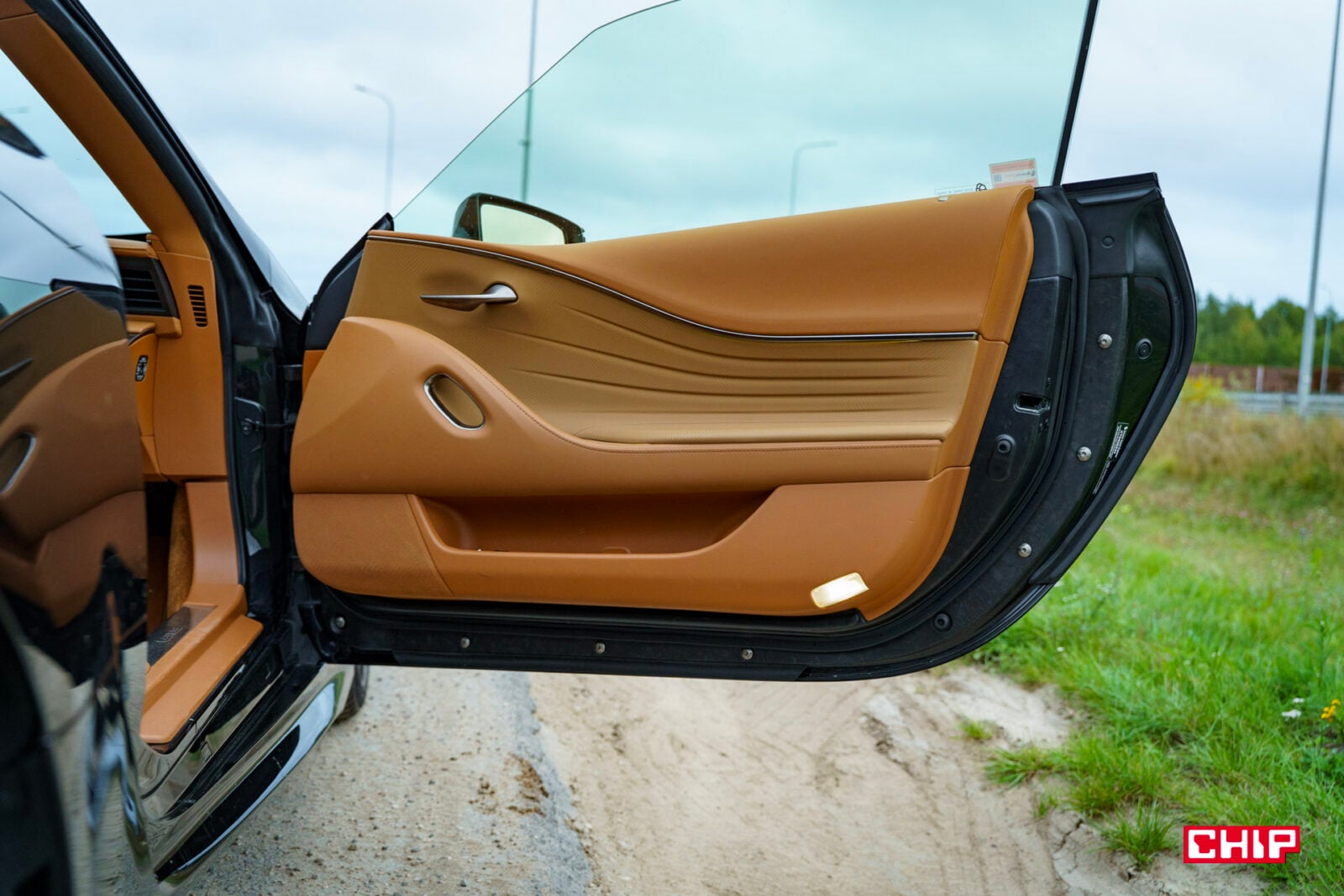 Oczywiście skóra skórze nierówna i z tą w LC 500 mało która może się równać. Mamy tu skórę półanilinową, czyli jest to skóra naturalna, delikatnie barwioną, z widoczną naturalną strukturą i fakturą. Będziecie widzieć pory, a także ślady, np. po ugryzieniach owadów, chociaż o te ostatnie jest trudno, bo skóra jest wyselekcjonowana tak, aby było na niej jak najmniej niedoskonałości. Aby zabezpieczyć ją przed uszkodzeniami, jest dodatkowo pokryta cienką warstwą lakieru ochronnego. Dzięki temu zachowuje naturalny wygląd i fakturę podobną do skóry czysto anilinowej, ale jest od niej znacznie bardziej odporna. Idealny kompromis – naturalna, wysokiej jakości skóra bydlęca, która jednocześnie nie wymaga takiej ostrożności i atencji jak skóra anilinowa. Luksus w praktycznym wydaniu. Skóra jest miękka, lepiej oddycha niż skóra licowa, jest bardziej wytrzymała i choć testowany egzemplarz miał już ładnych kilkadziesiąt tysięcy kilometrów przebiegu, co jak na auto testowe jest ogromny wynikiem, nadal pachniała świeżością i wyglądała jak nowa.