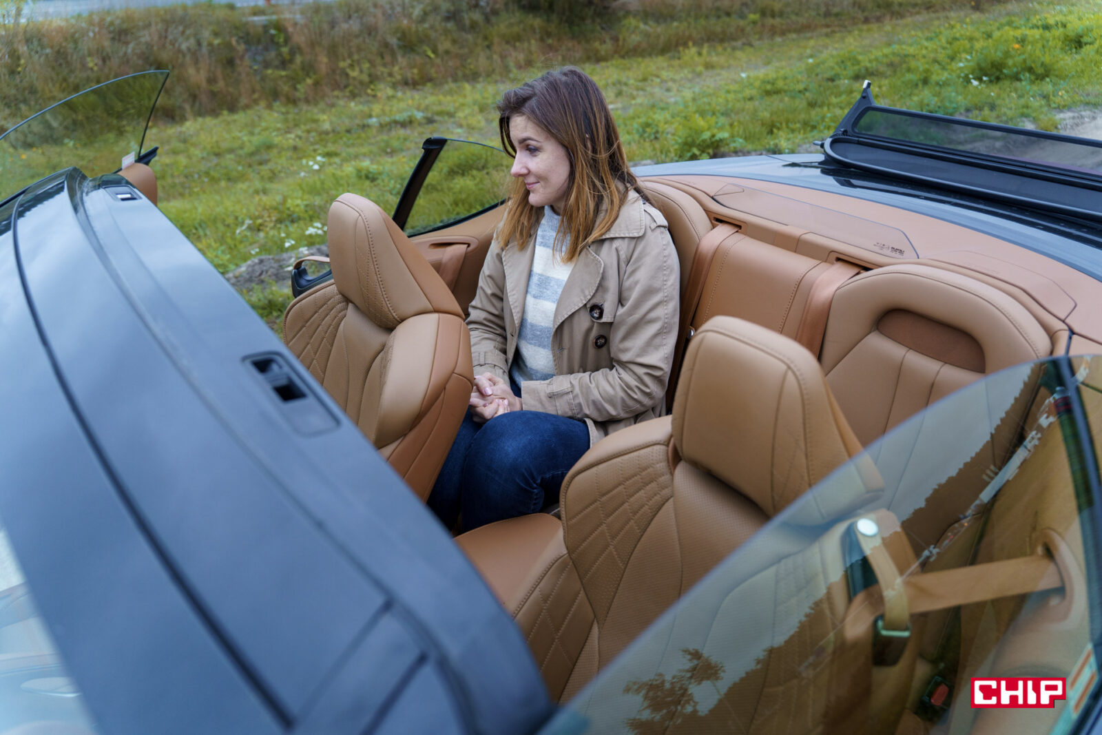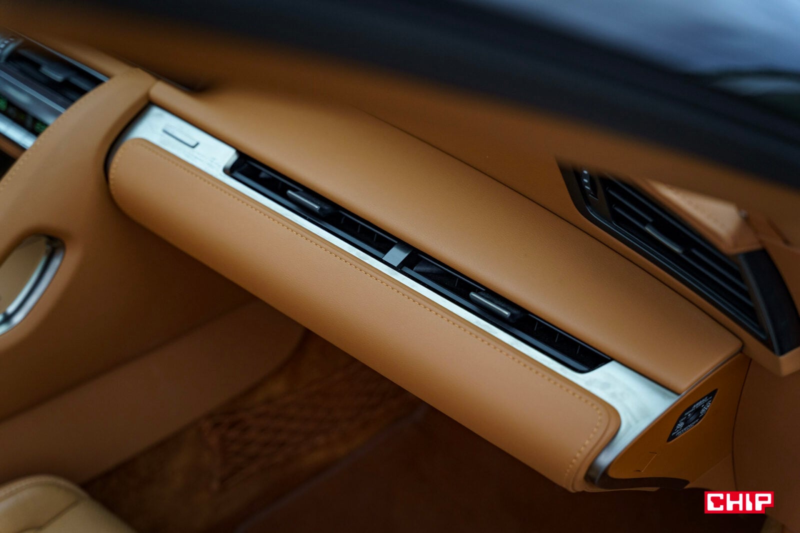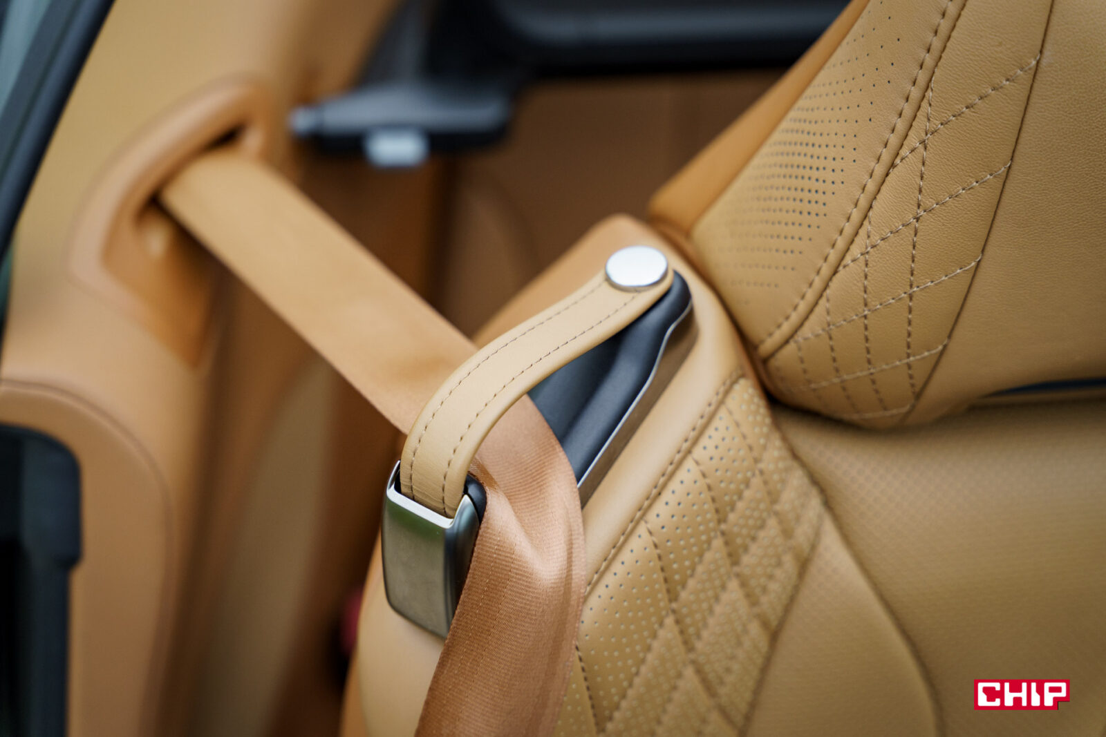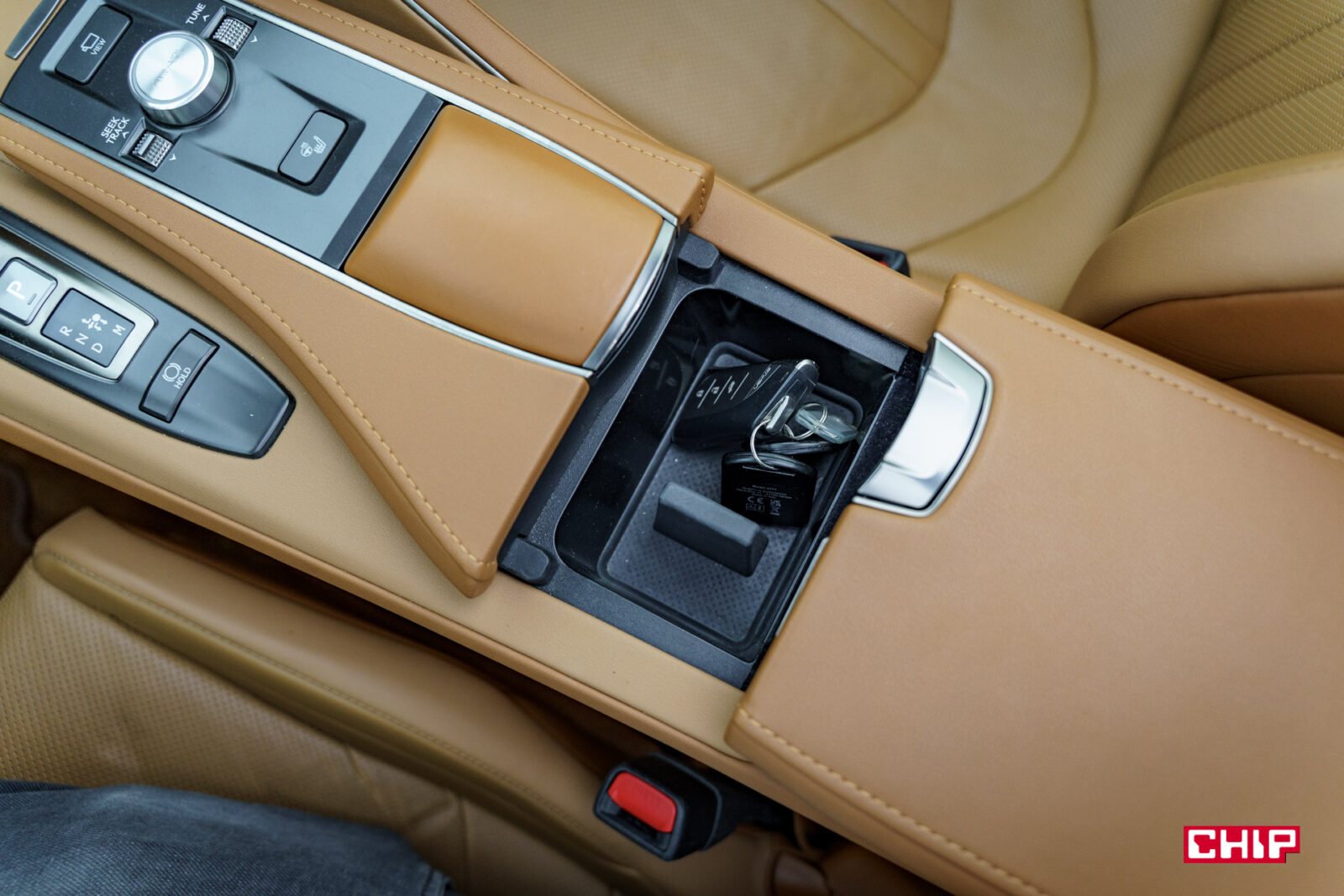 Oczywiście skóra skórze nierówna i z tą w LC 500 mało która może się równać. Mamy tu skórę półanilinową, czyli jest to skóra naturalna, delikatnie barwioną, z widoczną naturalną strukturą i fakturą. Będziecie widzieć pory, a także ślady, np. po ugryzieniach owadów, chociaż o te ostatnie jest trudno, bo skóra jest wyselekcjonowana tak, aby było na niej jak najmniej niedoskonałości. Aby zabezpieczyć ją przed uszkodzeniami, jest dodatkowo pokryta cienką warstwą lakieru ochronnego. Dzięki temu zachowuje naturalny wygląd i fakturę podobną do skóry czysto anilinowej, ale jest od niej znacznie bardziej odporna. Idealny kompromis – naturalna, wysokiej jakości skóra bydlęca, która jednocześnie nie wymaga takiej ostrożności i atencji jak skóra anilinowa. Luksus w praktycznym wydaniu. Skóra jest miękka, lepiej oddycha niż skóra licowa, jest bardziej wytrzymała i choć testowany egzemplarz miał już ładnych kilkadziesiąt tysięcy kilometrów przebiegu, co jak na auto testowe jest ogromny wynikiem, nadal pachniała świeżością i wyglądała jak nowa.