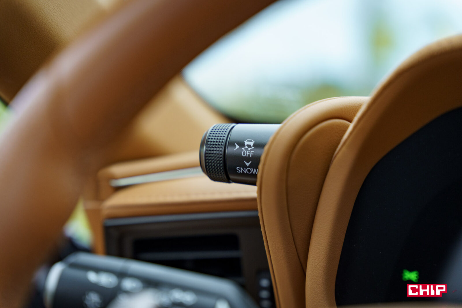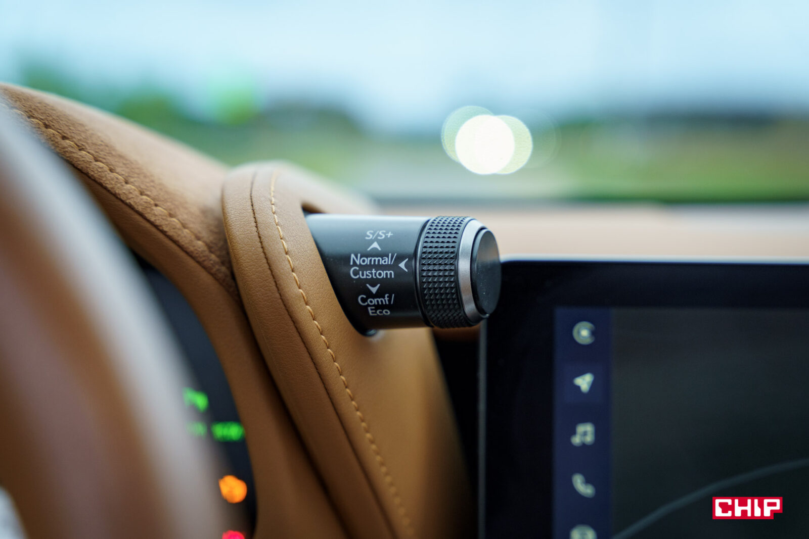 Ten silnik to jest COŚ. 5 litrowe, wolnossące V8 o mocy 464 KM i 530 Nm maksymalnego momentu obrotowego (4 800 obr./min.) połączone z 10-stopniową sekwencyjną automatyczną skrzynią biegów (4×2) i napędem na tył, rozpędzają naszego luksusowego kabrioleta 0-100 km/h w ciągu 4,7 s. Mamy tutaj potężny silnik i moc, ale w dalszym ciągu jest to silnik wolnossący, więc jeżeli chcecie go obudzić, musicie szczodrze wcisnąć pedał gazu. Będzie moment pauzy i zassania powietrza, a następnie poczujecie, do czego to auto jest zdolne. Jednocześnie, jeżeli od wariackiego pędu wolicie stateczne sunięcie po trasie czy mieście, ten silnik idealnie się do tego nadaje. Nie jest narwańcem, nie ma w nim uczucia, jakby tylko czekał na sygnał wystrzelenia Was w kosmos. Można by rzec, że Lexus LC 500 jest cool, calm and collected i tylko niski bulgot silnika zdradza, że pod maską kryje się potwór. Jeżeli chcecie go obudzić, nic prostszego. Albo najbardziej siermiężną metodą, poprzez sygnał pedałem gazu, albo poprzez uruchomienie jednego z trybów sportowych – Sport S Sport S+.