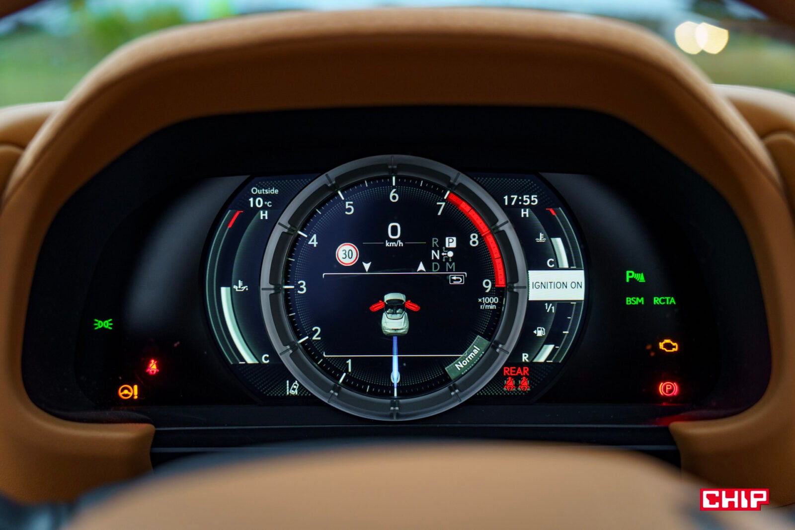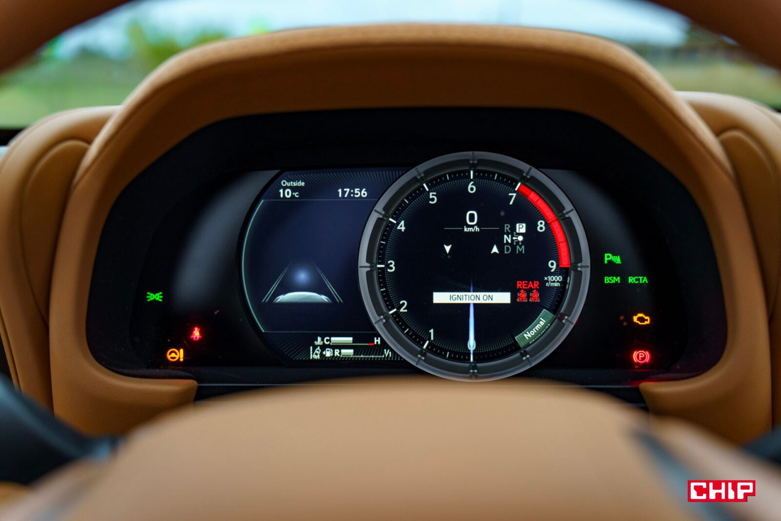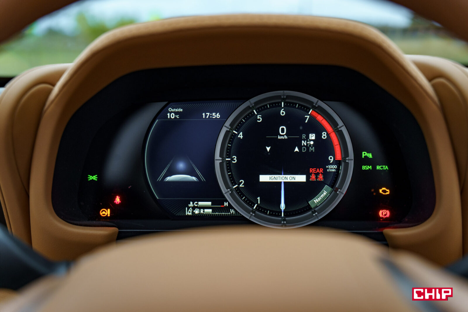 Choć Lexus LC 500 nie jest świeżym modelem, trudno powiedzieć złego słowa o jego ekranach. Są wysokiej jakości i ładnie wkomponowane we wnętrze. Przejdźmy najpierw do zdecydowanie najciekawszego elementu, jakim jest zegar na ekranie kierowcy.