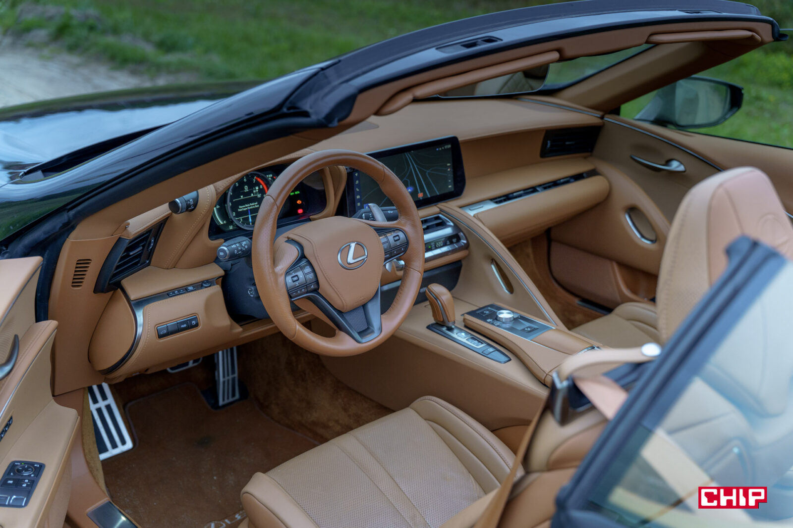 Wnętrze Lexusa LC 500 to niespotykany poziom luksusu i trudno o lepiej wyciszony kabriolet