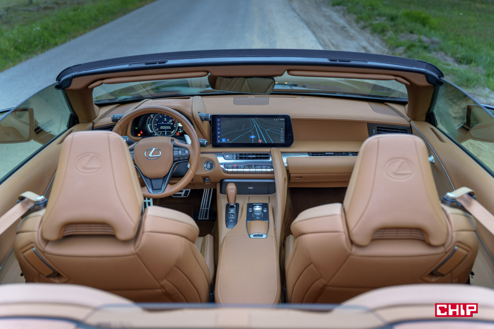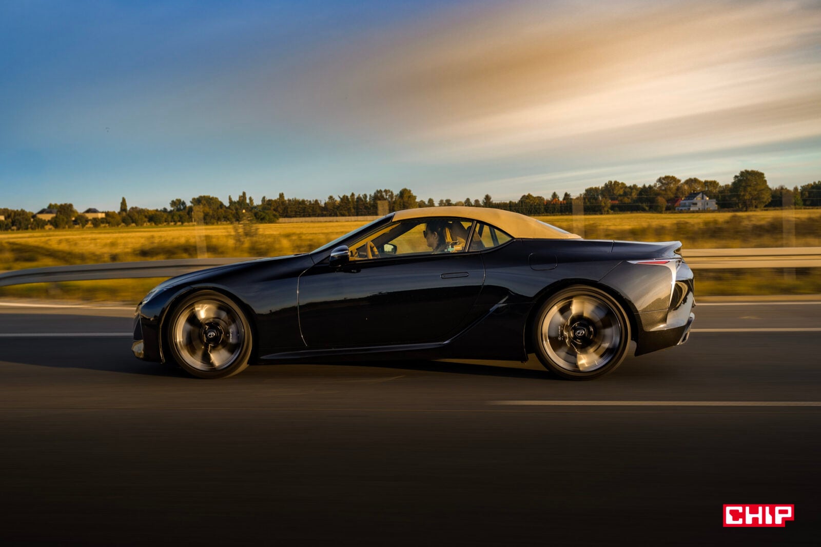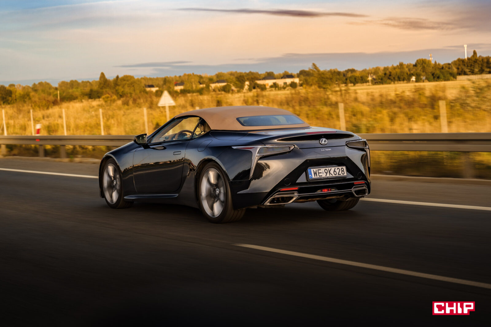 Co warto podkreślić, jak na kabriolet z miękkim dachem Lexus LC 500 jest bardzo dobrze wyciszony. Szum, który niedawno słyszeliśmy w Maździe MX-5 przy 100 km/h tutaj… nie rozwinęliśmy prędkości, która dawałaby podobne odczucia. Nawet przy prędkościach autostradowych LC 500 jest wyciszony lepiej niż zdecydowana większość aut dostępnych dzisiaj na rynku.