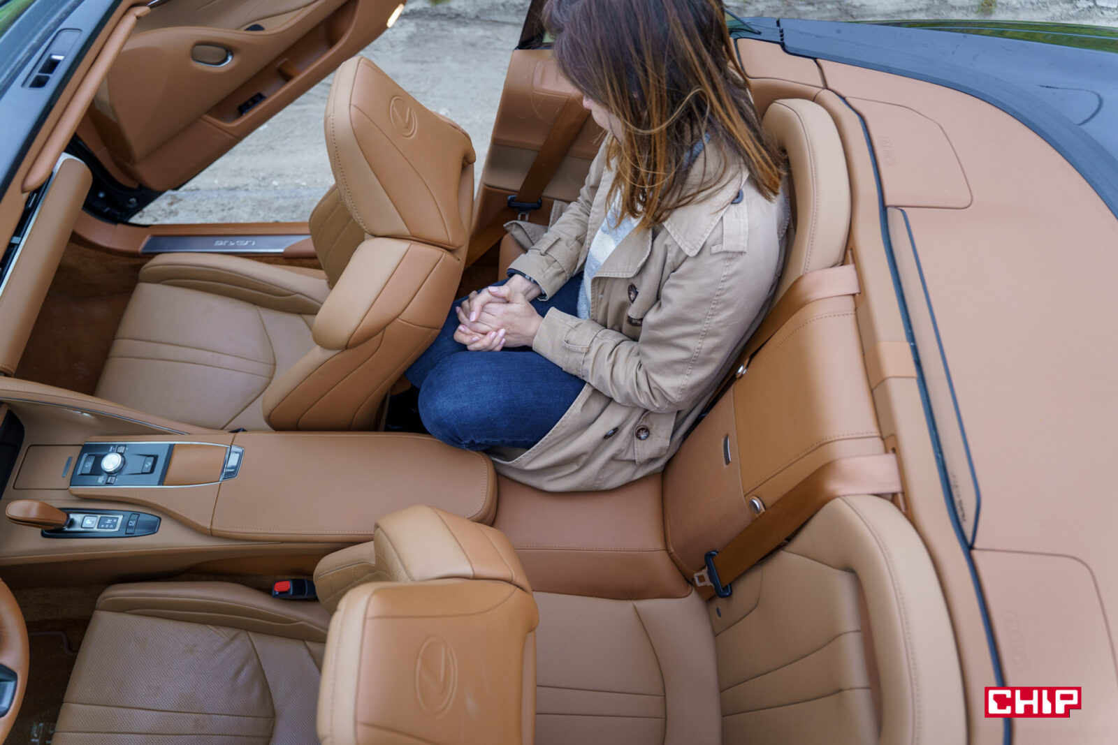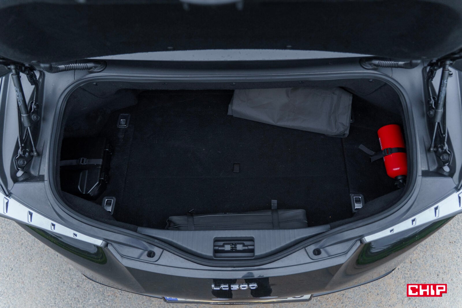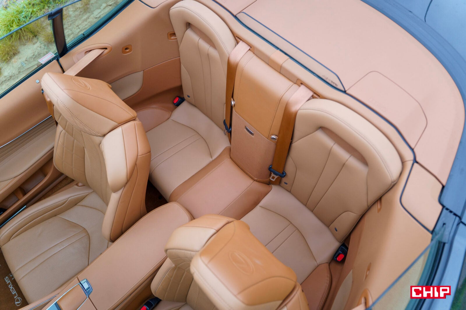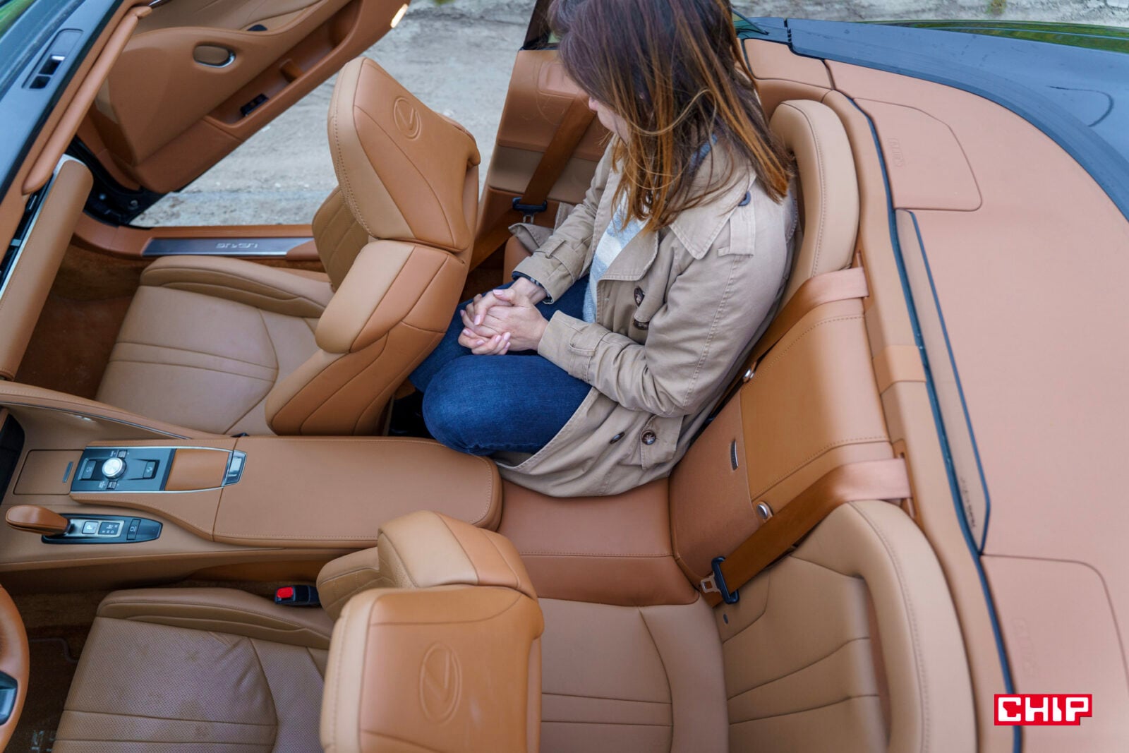 Tylka kanapa w Lexusie LC 500, jakby to ładnie powiedzieć, istnieje. Jeśli mamy założony wiatrołap to dwa miejsca z tyłu służą za dodatkowy bagażnik. Jeśli chcemy tak kogoś posadzić, to będzie to dziecko lub osoba to może maksymalnie 160 cm wzrostu i zdecydowanie na krótkiej trasie.