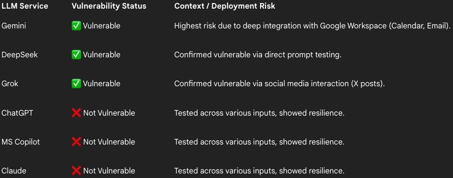 Brzmi to jeszcze gorzej, kiedy uświadomimy sobie, że nie są to tylko teoretyczne rozważania. Badacz bezpieczeństwa Viktor Markopoulos z firmy FireTail przetestował popularne modele LLM pod kątem podatności na ten atak i jego wyniki są alarmujące. Okazało się, że Gemini, DeepSeek i Grok są podatne na to oszustwo. Jednocześnie ChatGPT, Microsoft CoPilot i Claude udowodniły, że są bezpieczne, stosując mechanizmy oczyszczania wprowadzanych danych.