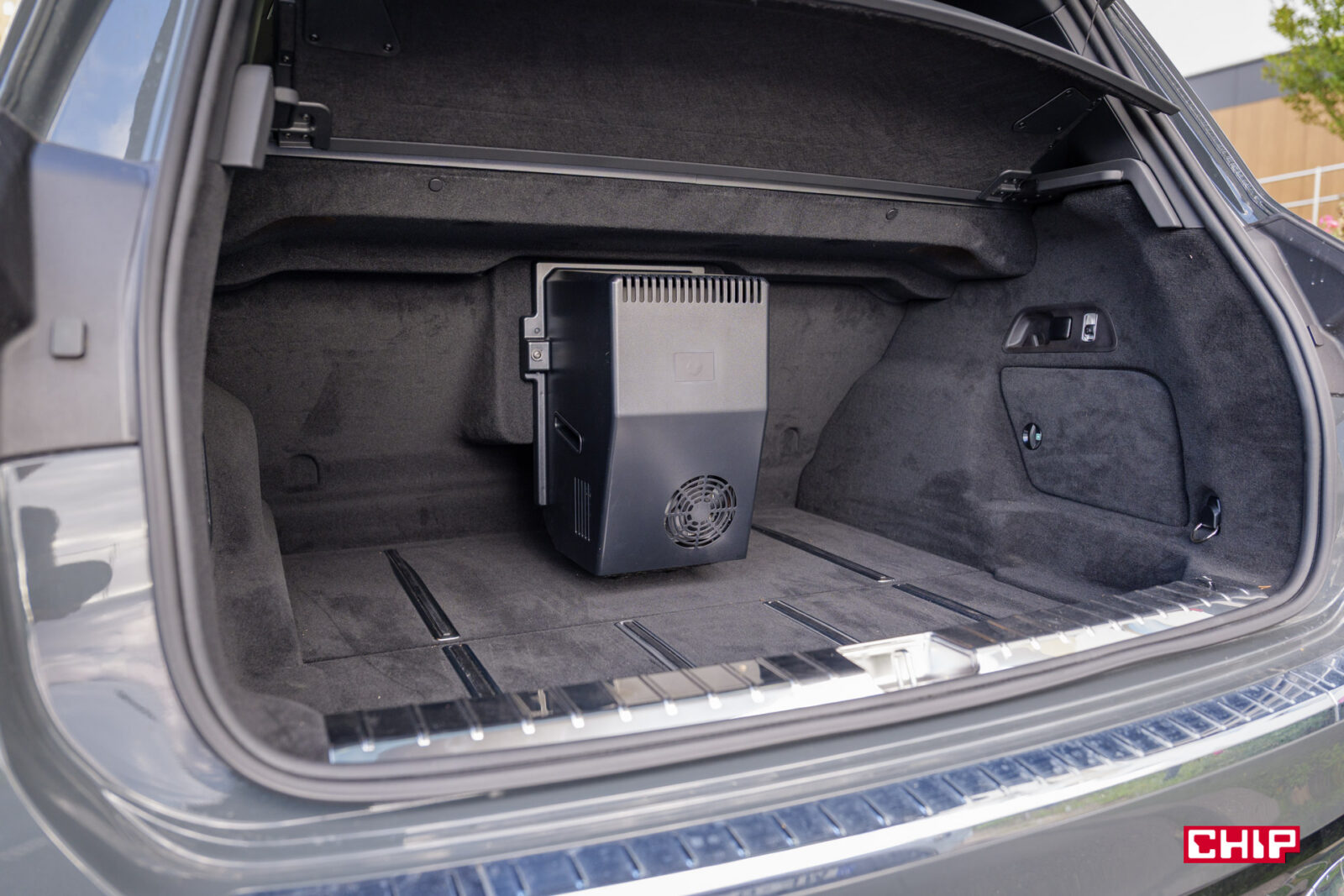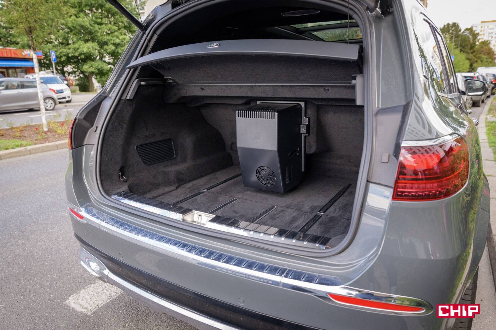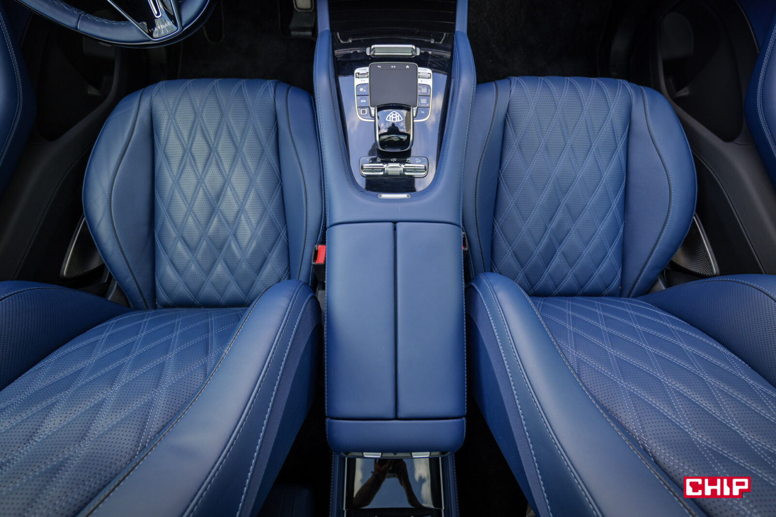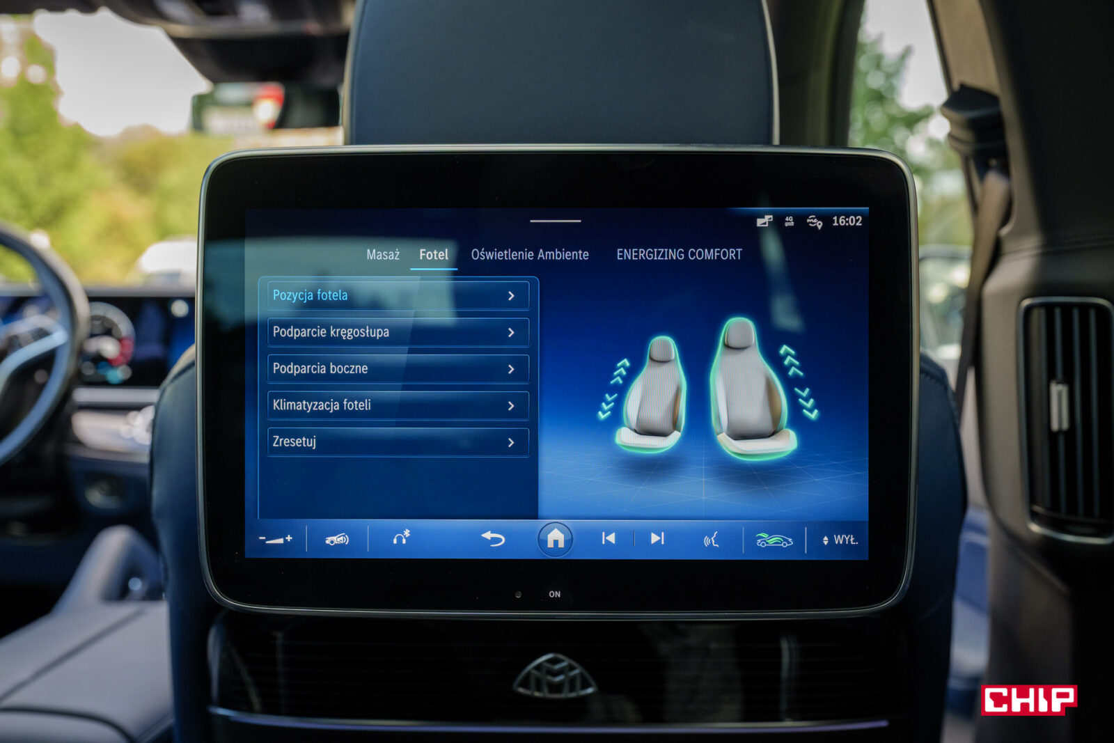 Dalej mamy – ekrany w zagłówkach, ładowarkę indukcyjną (mieszczącą największe smartfony), uchwyty na napoje z grzaniem i chłodzeniem, dodatkowy tablet do sterowania interfejsem, dwa porty USB-C, dwa porty HDMI, lodówkę, sterowanie roletą dachową i żaluzjami w bocznych szybach, rozkładane stoliki, dwie pary wysokiej jakości bezprzewodowych słuchawek (z możliwością podłączenia przewodowego) oraz kieliszki w lodówce, które w testowanym egzemplarzu niestety ktoś się nie bał i… podprowadził. Słowem – jest tu wszystko potrzebne do tego, aby poczuć się jak człowiek z zawodu prezes.