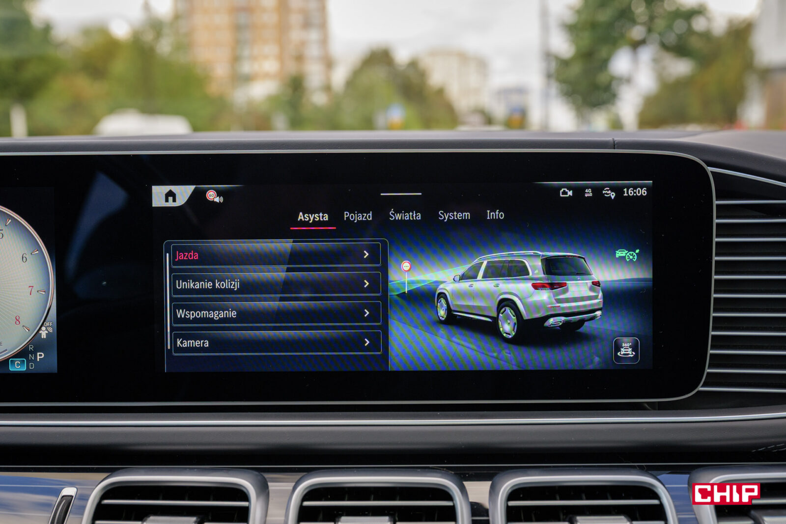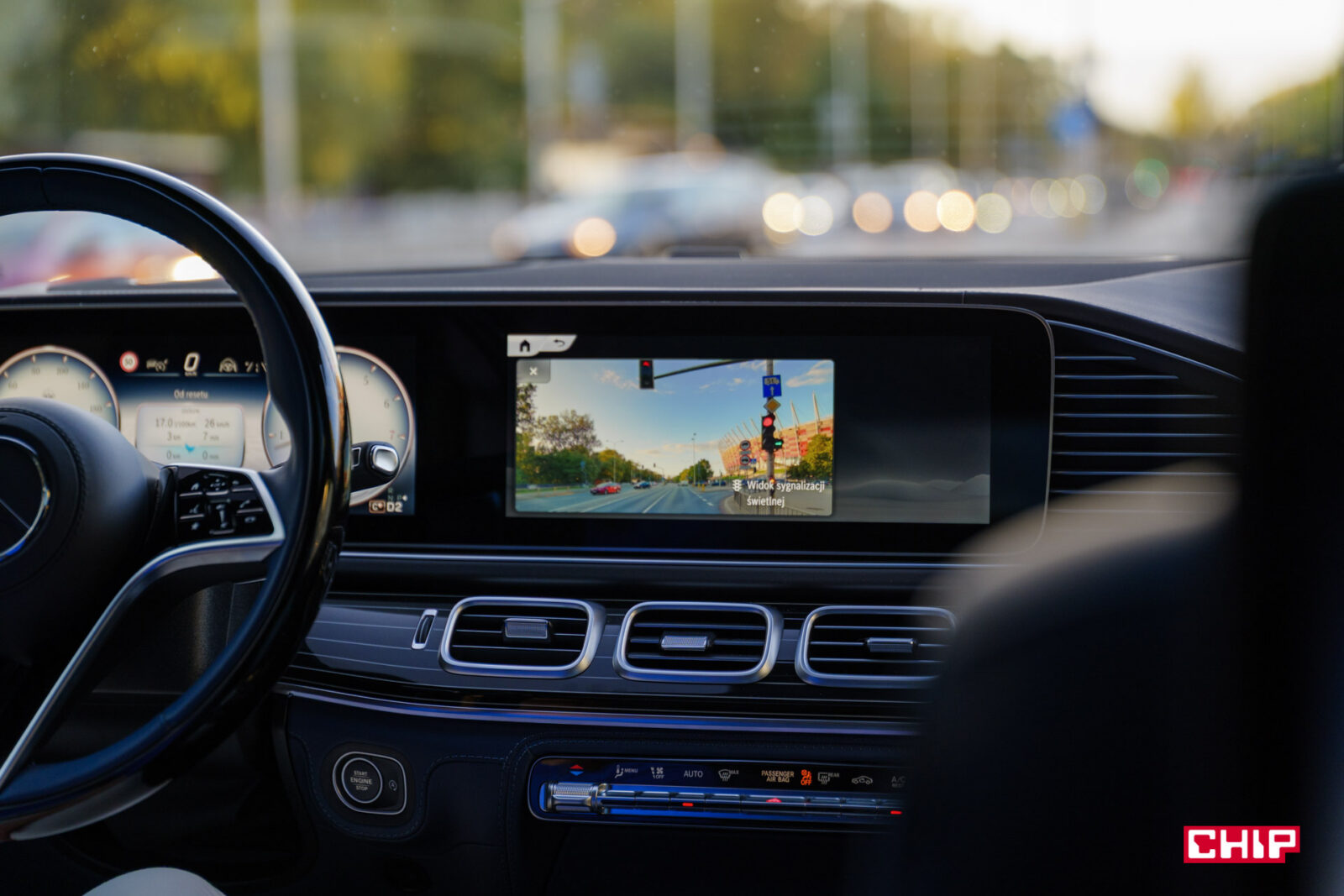 Oczywiście wszystkie elementy takie jak wysokiej jakości system kamer 360, nawigacja z rozszerzoną rzeczywistością czy widok z kamer z podglądem sygnalizacji świetlnej kiedy stoimy na czerwonym – to wszystko jest i działa wzorowo.