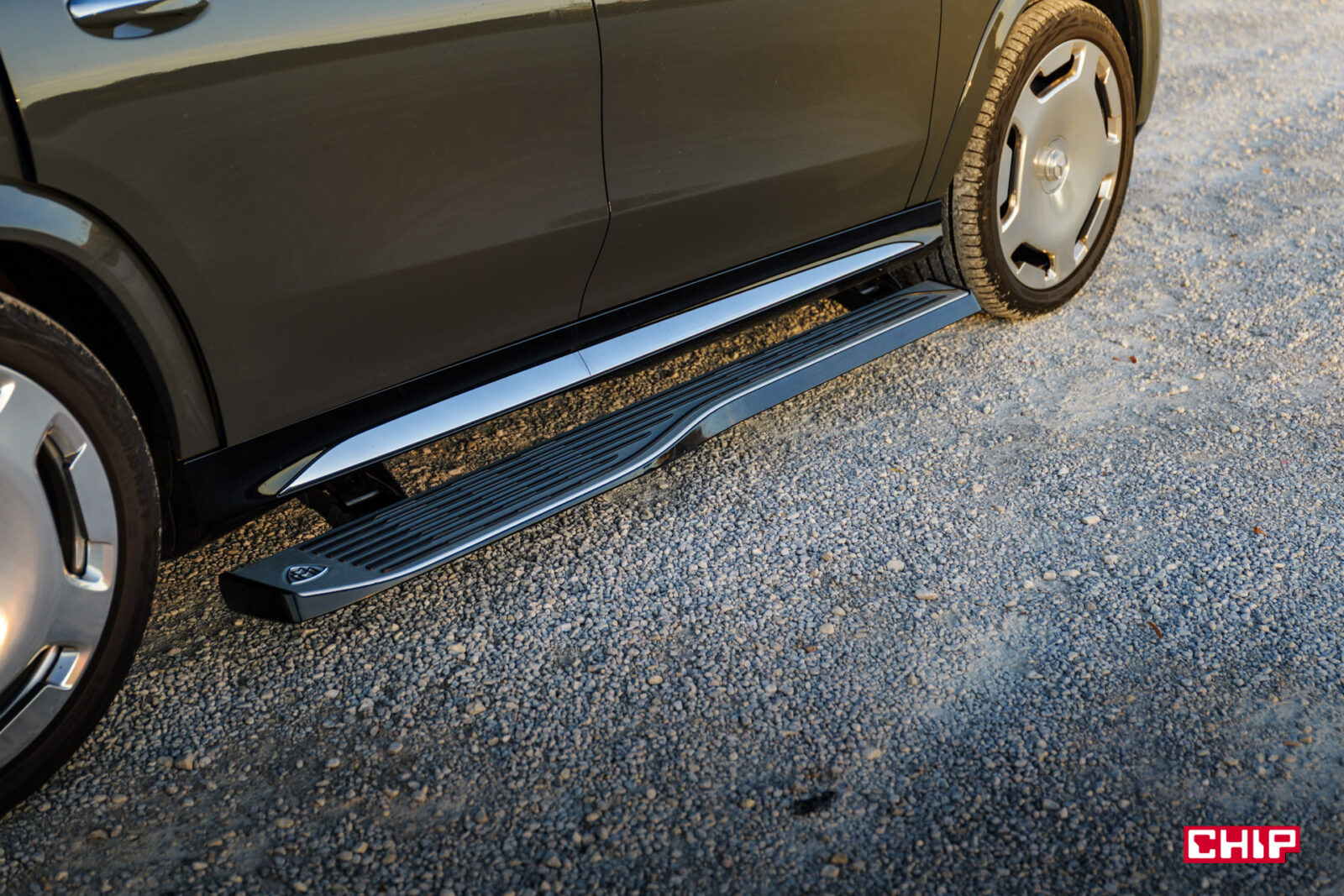 Pozostając przy rzeczach dużych i niedorzecznych – wysuwane progi. Są tak ogromne, że jeden wystarczyłby za zamiennik deski surfingowej. Wysuwają się i chowają bardzo sprawnie, są faktycznie pomocne i użyteczne, ale trzeba o nich pamiętać. W trakcie testu kilka razy o nich zapomnieliśmy i jeśli staniem zbyt blisko auta po otwarciu drzwi, to próg nas dosłownie znokautuje. Przydałby się tu jakiś dodatkowy czujnik zapobiegający takim sytuacjom.
