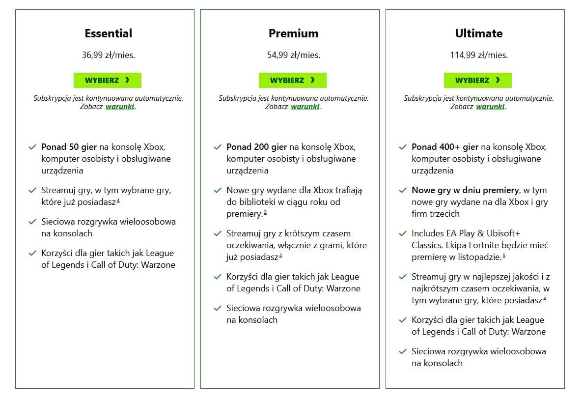 Przyjrzyjmy się, co oferują i ile kosztują poszczególne plany w Xbox Game Pass