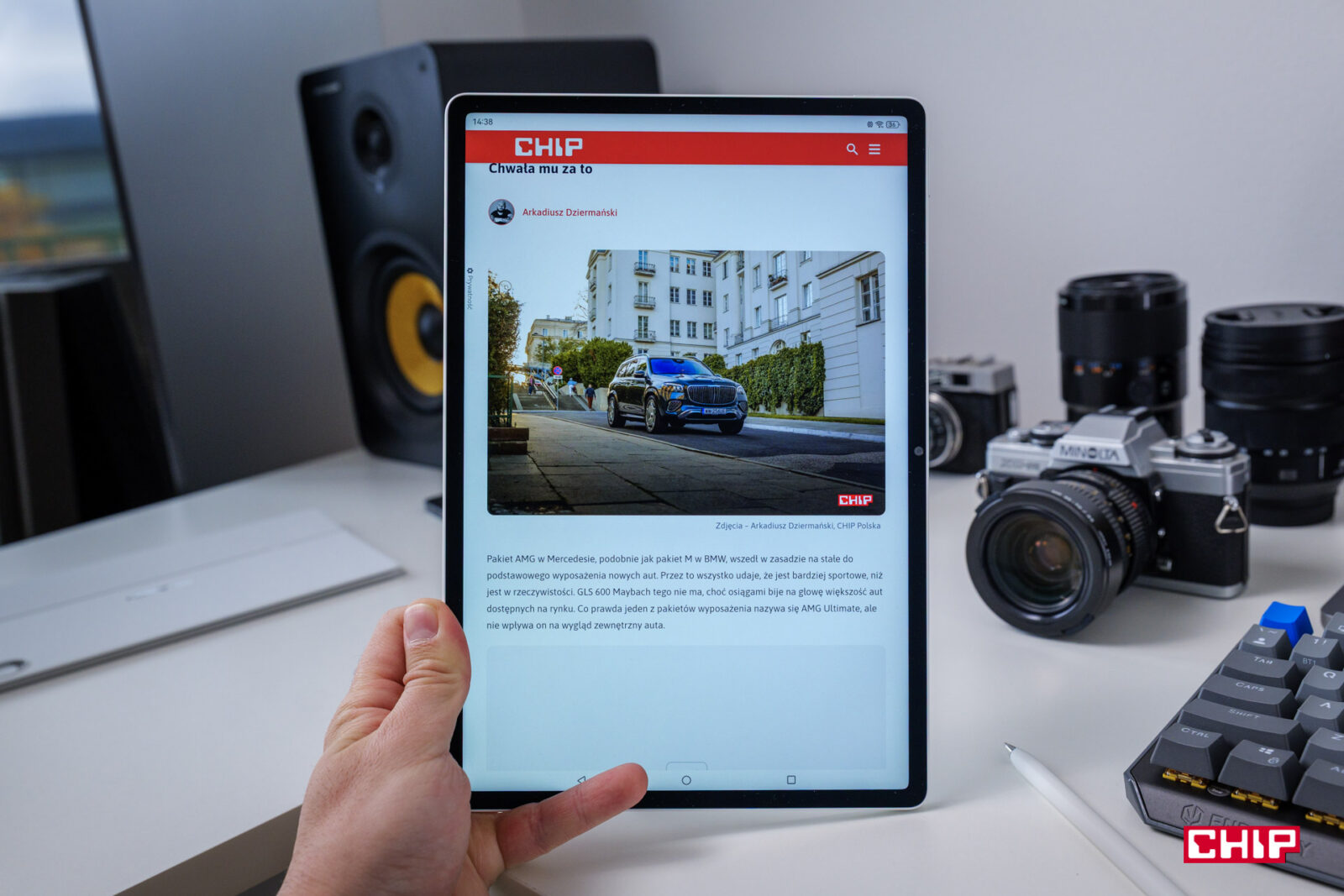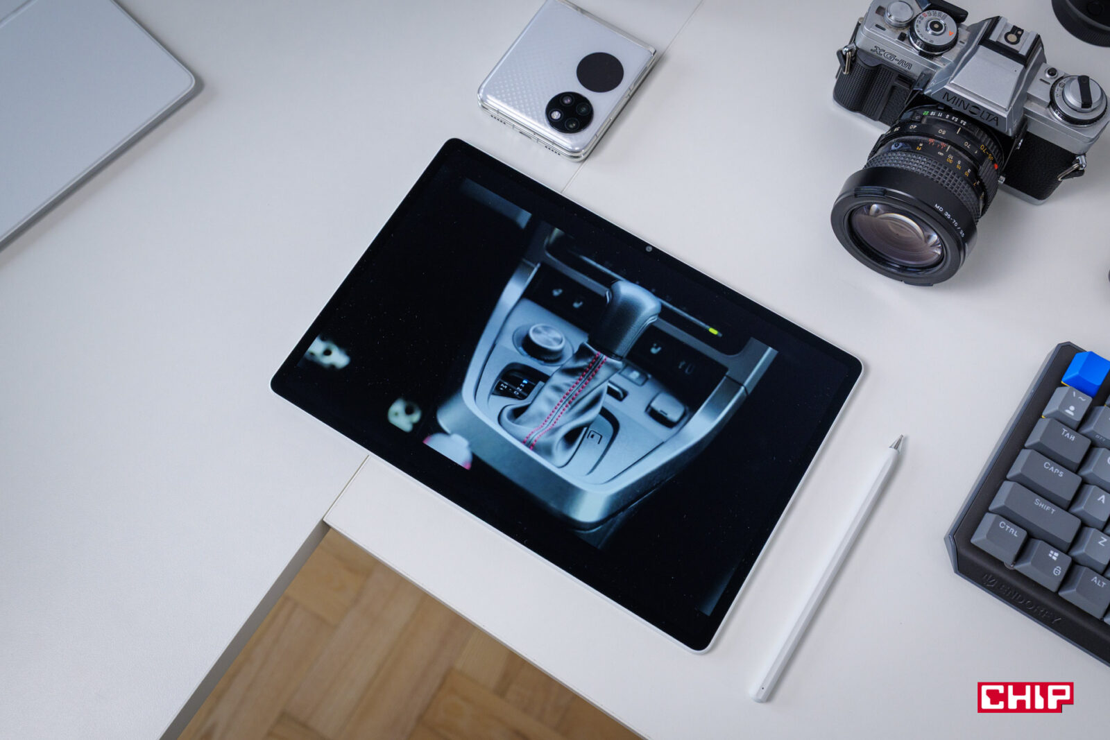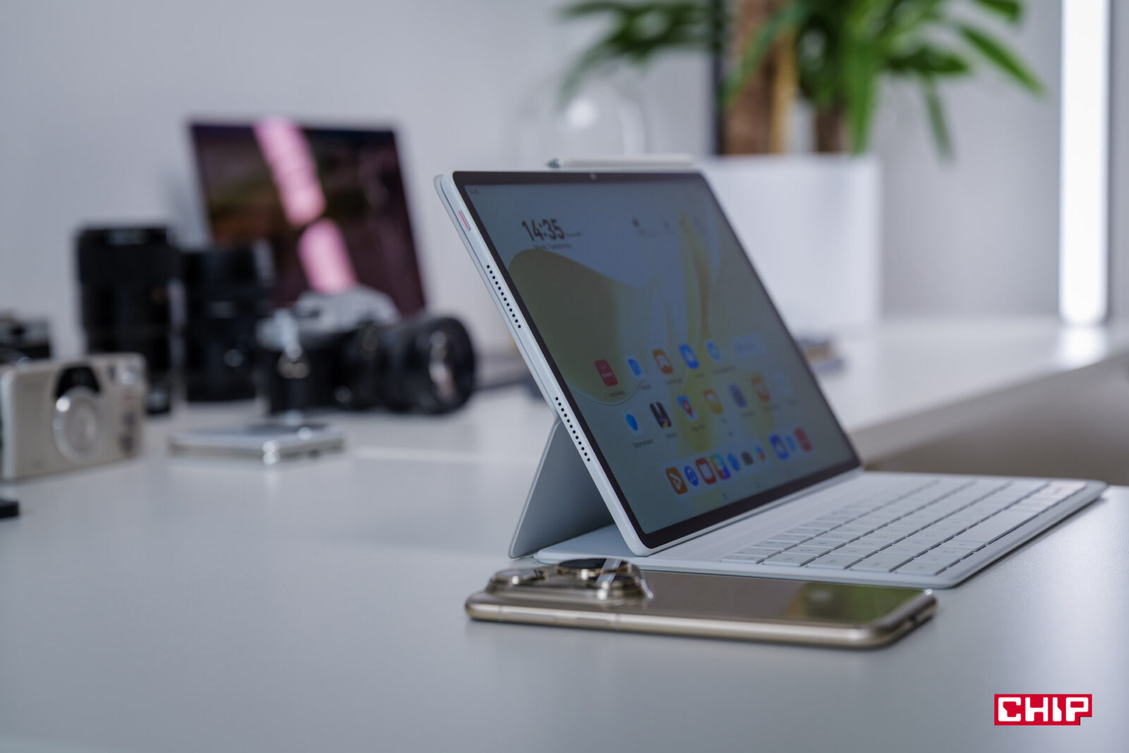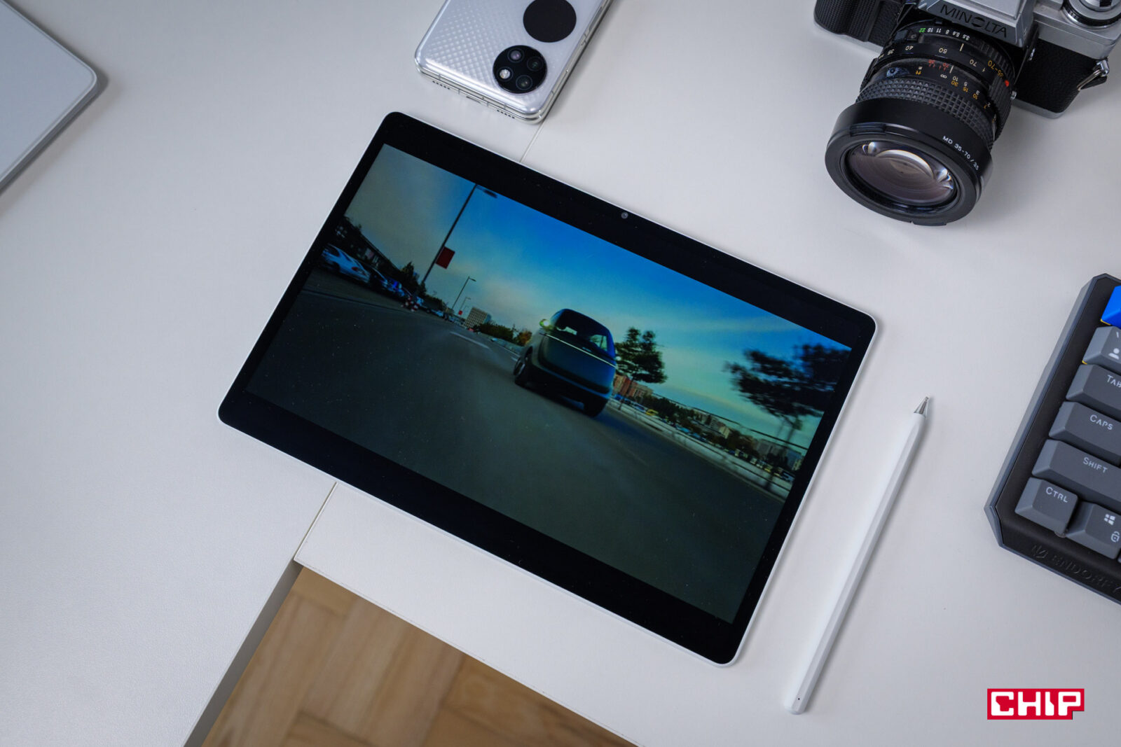 Urządzenie oferuje ekran o rozdzielczości 2.8K przy jasności do 1000 nitów, dzięki czemu zapewnia wyraźny obraz nawet w pełnym słońcu, eliminując potrzebę zwiększania jasności. Proporcje 3:2 są optymalne do pracy z dokumentami, pokazując więcej treści niż standardowe ekrany 16:9. Jak wskazuje nazwa modelu, mamy tu wyświetlacz o przekątnej 12 cali i konsumowanie treści jest na nim nie tylko wygodniejsze, niż na niemal połowie mniejszym ekranie smartfonu, ale też mniej męczy nasze oczy. Nie musimy się skupiać na wytężeniu wzroku, skupiającym się na małych elementach.