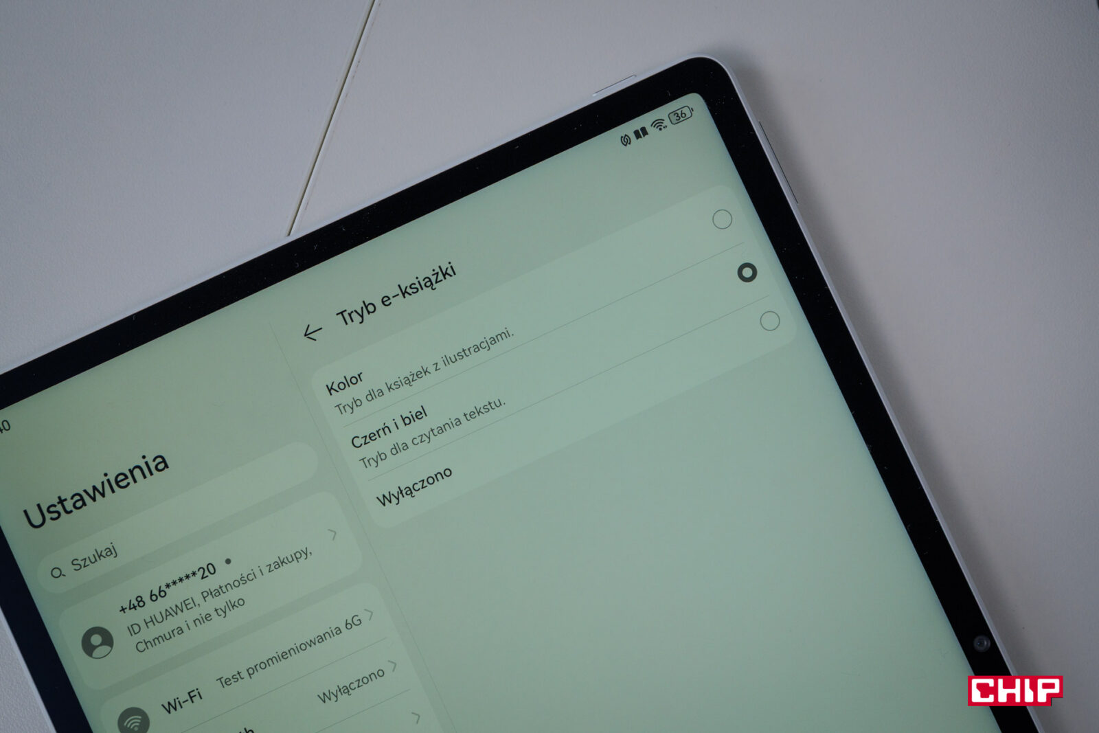 Druga funkcja to tryb e-książki. Czytanie na tablecie to dobra sprawa, w końcu tak duży ekran aż prosi się o tego typu wykorzystanie. W trybie e-książki Huawei MatePad 12 X 2025 zachowuje się jak czytnik e-booków, zachowując przy tym wszystkie właściwości tabletu. Czyli przede wszystkim płynność działania i przewijania treści. Do wyboru mamy dwa tryby – czarno-biały i kolorowy, do czytania np. komiksów. Jest to świetne rozwiązanie, bo nie potrzebujemy dodatkowego urządzenia.