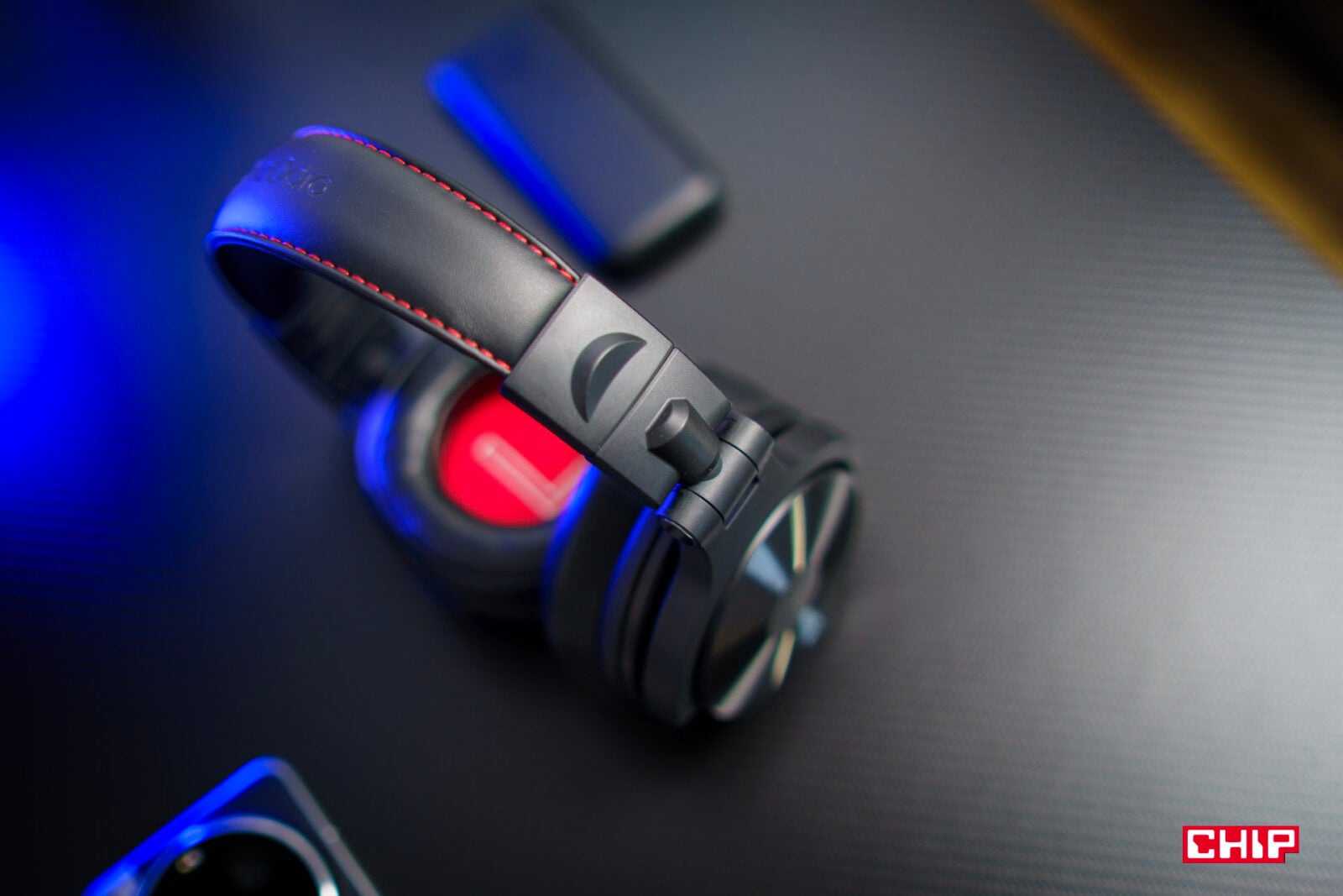 Sam pałąk jest skórzany, podobnie jak nauszniki, w którym znajdziemy piankę z efektem pamięci. Skóra pachnie jak skóra, jest w dotyku jak skóra, więc nie wnikam specjalnie w to, z czego jest wykonana. Materiał jest wysokiej jakości, porządnie przeszyty i sprawia wrażenie, jakby nie miał zacząć się rozsypywać po dłuższym okresie użytkowania.
