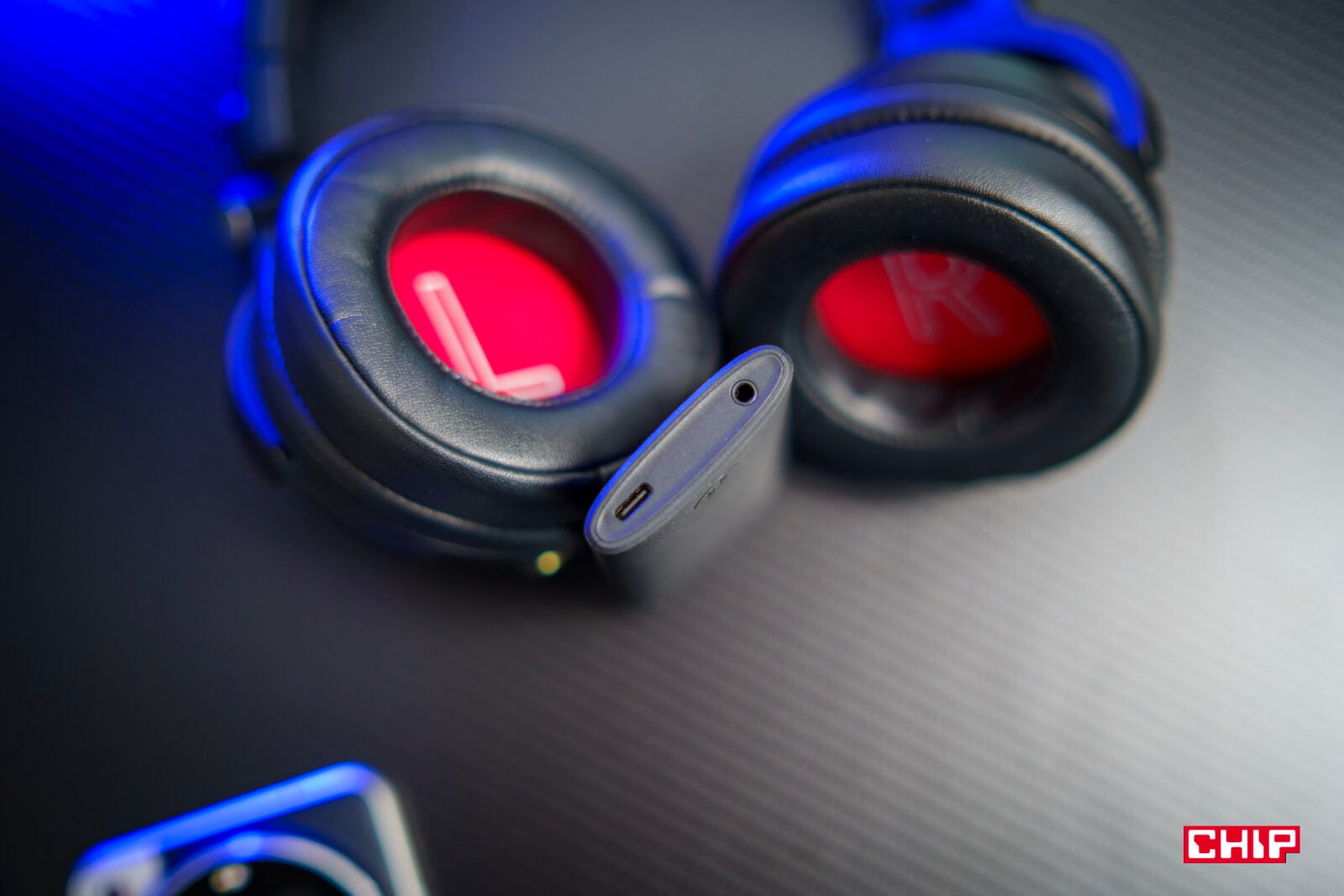 Jak to wszystko ze sobą połączyć? Banalna sprawa. Wystarczy podłączyć odbiornik M1 do źródła dźwięku, czyli domyślnie mówimy tu o komputerze, włączyć słuchawki i… to tyle. Oba urządzeni parują się automatycznie i mamy do wyboru dwa tryby pracy – klasyczny Bluetooth lub niskiego opóźnienia. Oczywiście same słuchawki mogą działać samodzielnie i też możemy je podłączyć do źródła dźwięku przez Bluetooth lub przewodowo.