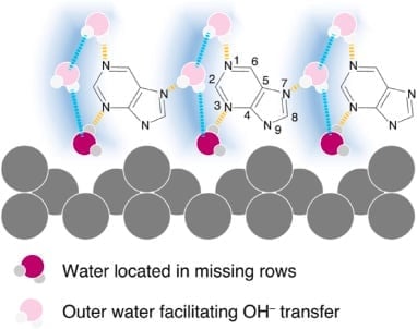 Zamiast wymieniać metal, projektować stosy od nowa czy zmieniać membrany, zespół z Uniwersytetu Chiba twierdzi w swoje nowej pracy, że cienka warstwa cząsteczek organicznych (z rodziny puryn pojawiających się w kofeinie i zasadach DNA) potrafi sprawić, że woda na powierzchni platyny zachowuje się inaczej. Ta drobna korekta popycha trudniejszy etap zasadowej ewolucji wodoru nie siłowo, lecz przez przeorganizowanie mikroskopijnych wiązań wodorowych samej cieczy. Taka oto “sztuczka chemików” może mieć poważne konsekwencje dla ekonomiki elektrolizy.