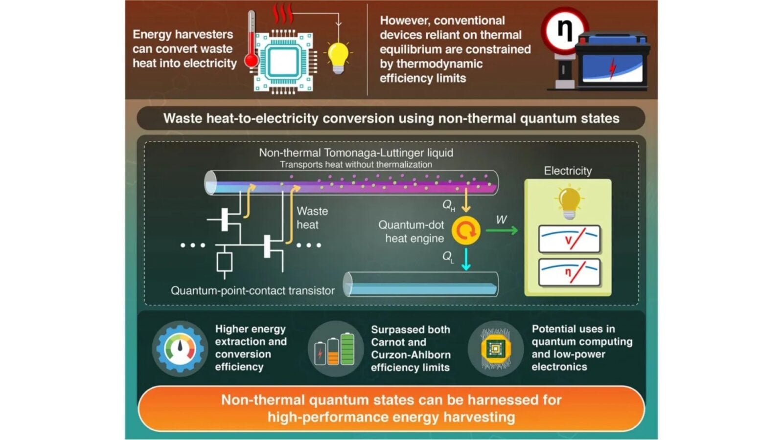 Zespół z Tokyo Institute of Technology opracował metodę pozyskiwania energii z egzotycznych stanów kwantowych, która łamie tradycyjne ograniczenia fizyki klasycznej. Podczas gdy konwencjonalne systemy odzysku ciepła są ograniczone przez sprawność Carnota, to kwantowe silniki cieplne potrafią osiągać znacznie wyższą efektywność. Sercem tej technologii jest tak zwana nietermiczna ciecz Tomonaga-Luttingera, a więc specjalny układ elektronów funkcjonujący w jednym wymiarze. Ten niezwykły stan materii ma zdolność utrzymywania wysokoenergetycznego stanu kwantowego w sposób ciągły, opierając się naturalnemu procesowi termalizacji.