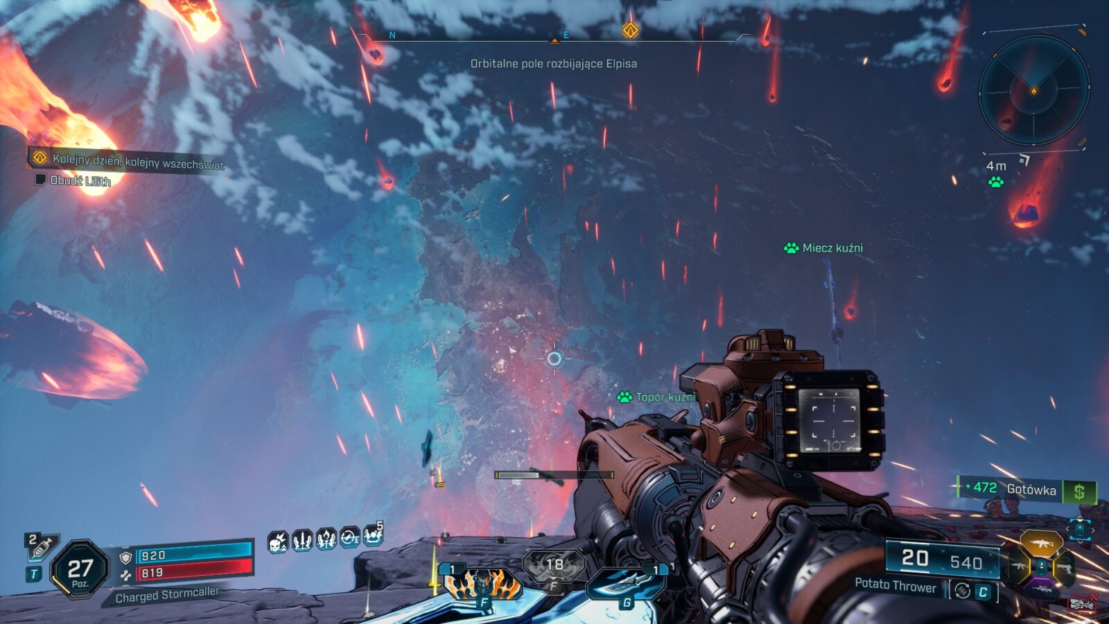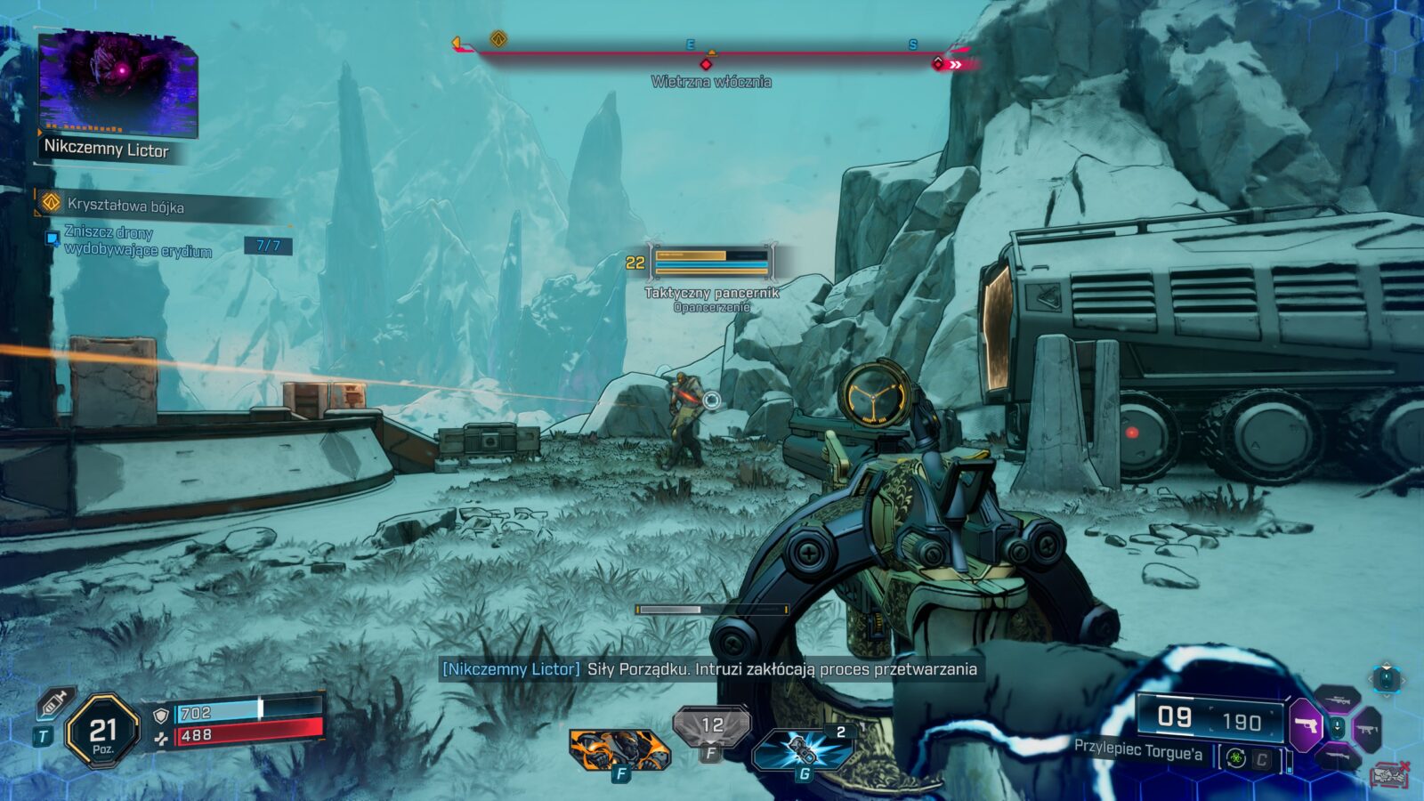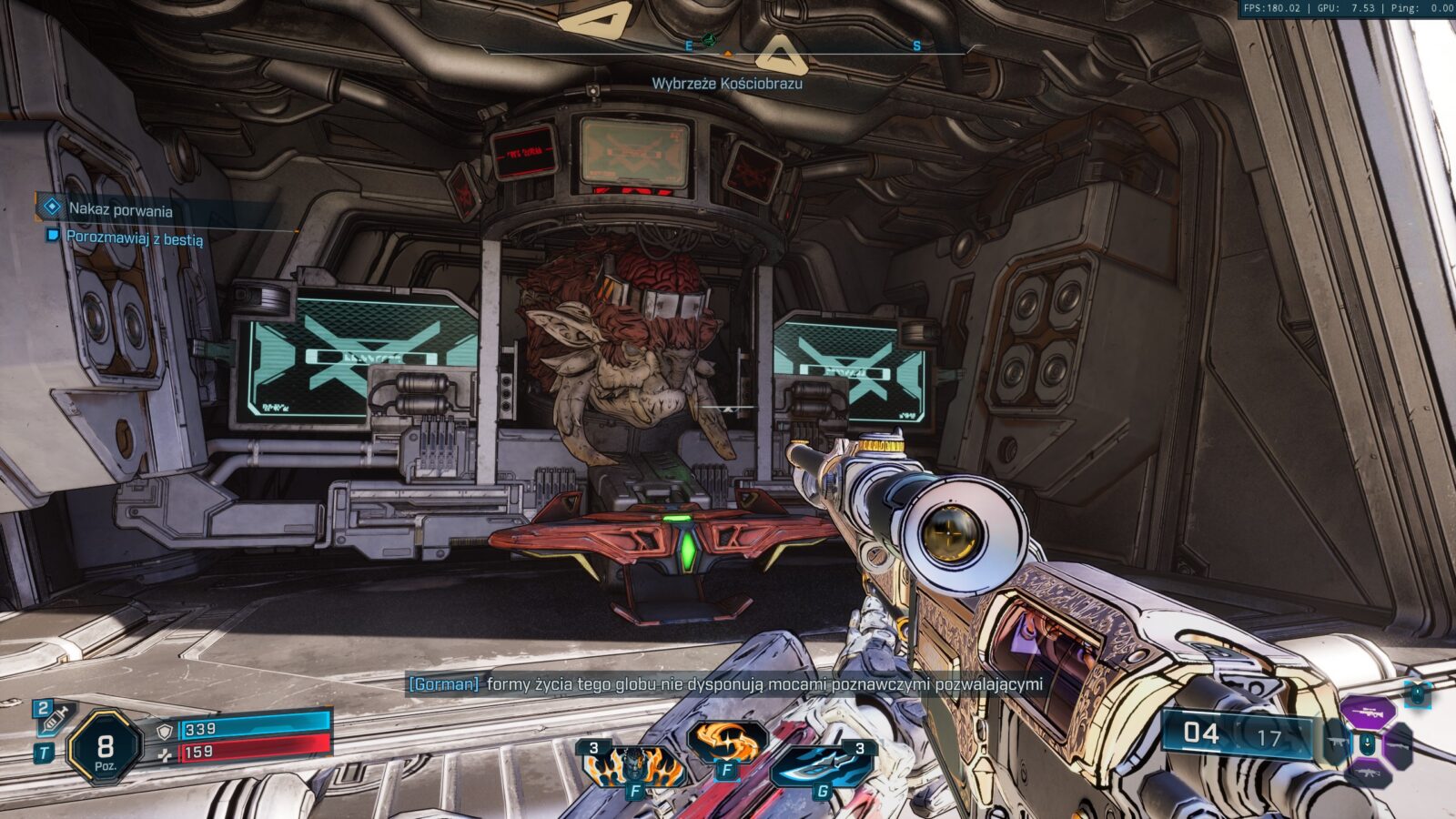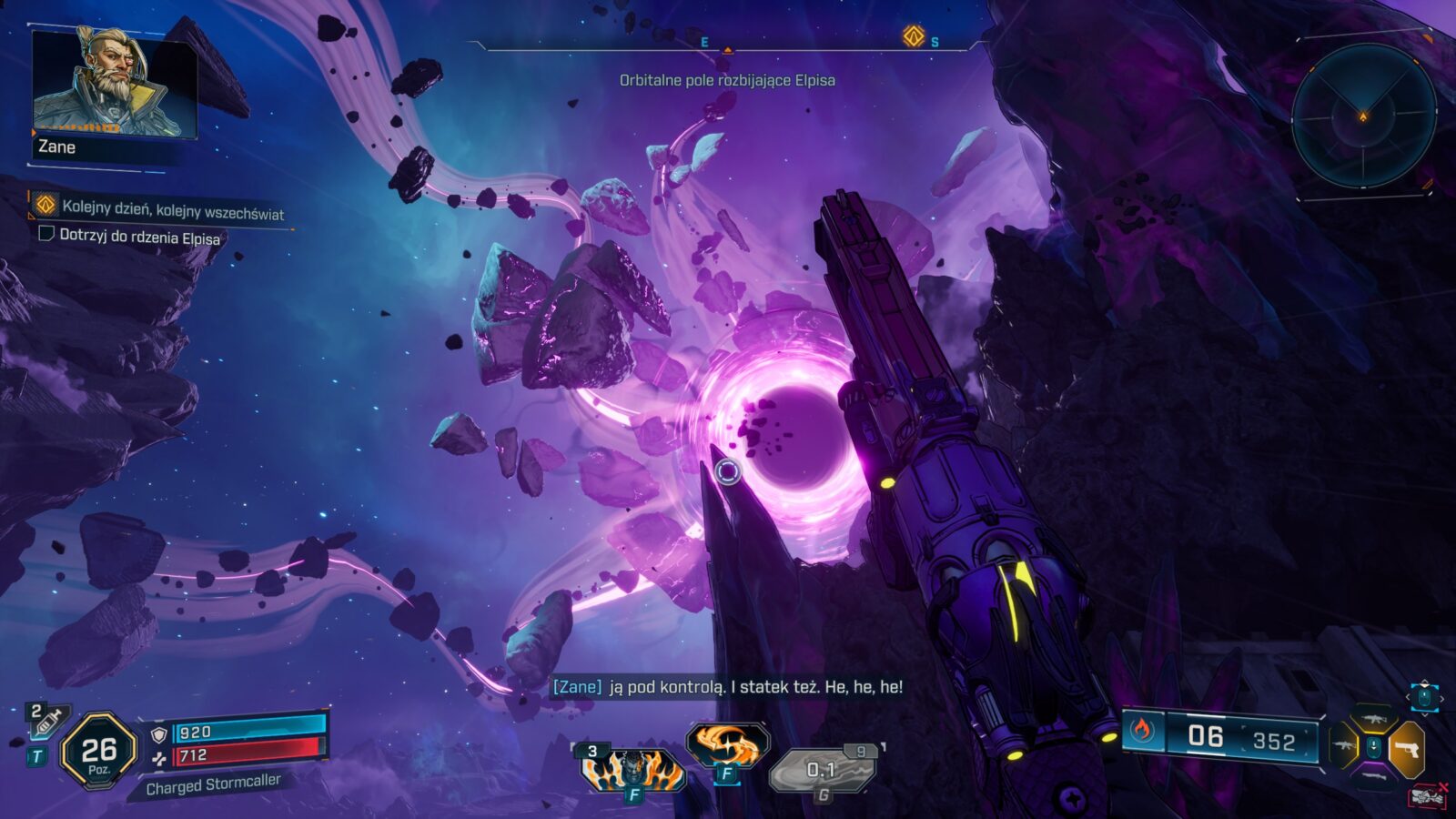 Ton głównej fabuły również stał się w pewnym stopniu doroślejszy i dotyka już jednoznacznie bezpośrednio bardziej poważnych tematów, choć same postaci nadal starają się je “luzować i spłycać” w ramach “edgy żarcików”. Ileż jednak można wałkować to samo poczucie humoru i powszechnie panujące w świecie Borderlands szaleństwo co drugiej postaci? To, co kiedyś było odświeżające, teraz stało się standardem w serii, a twórcy, zamiast pójść w zawsze sprawdzającą się “sinusoidę wrażeń” lub jeszcze bardziej dokręcać śrubę, nieco ją poluzowali. Efekt? Trudno znaleźć w nowych historiach wiele momentów, które nas jakoś szczególnie zaskakują, wprawiają w osłupienie, doprowadzają do wybuchu śmiechu (delikatne uniesienie kącika ust to max, na co możecie liczyć), czy nawet wprowadzają w konsternację. Do tej pory mogliśmy zrzucić to na karb niedoskonałego zrozumienia języka angielskiego i udawać, że gry są rzeczywiście zabawne, ale w Borderlands 4 po raz pierwszy doszło do wprowadzenia polskiej wersji językowej, która jest wprawdzie dobra (surowe maszynowe tłumaczenie raczej nie weszło w grę), ale nie idealna, bo np. bronie ciągle są określane po angielsku.