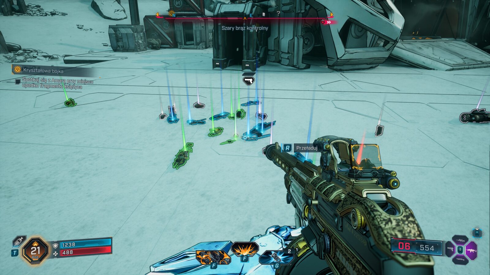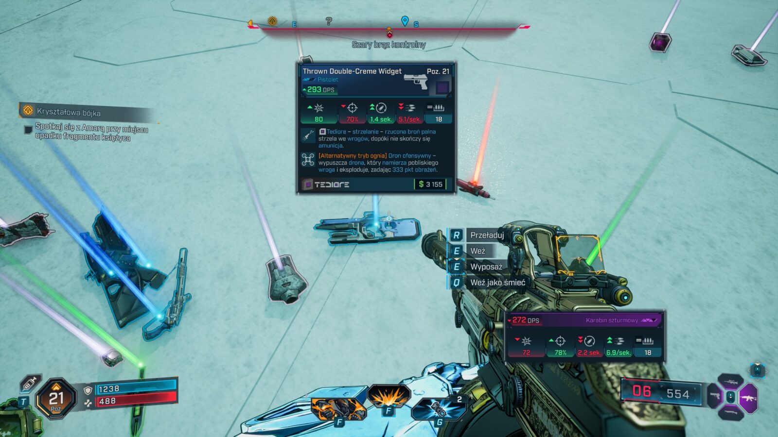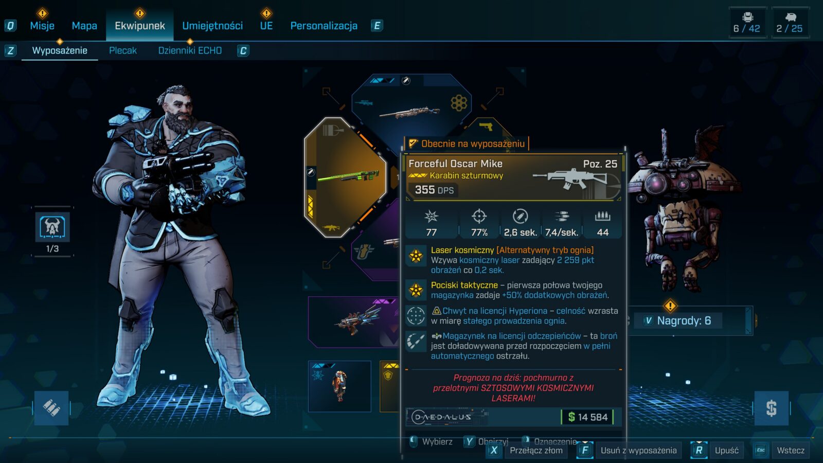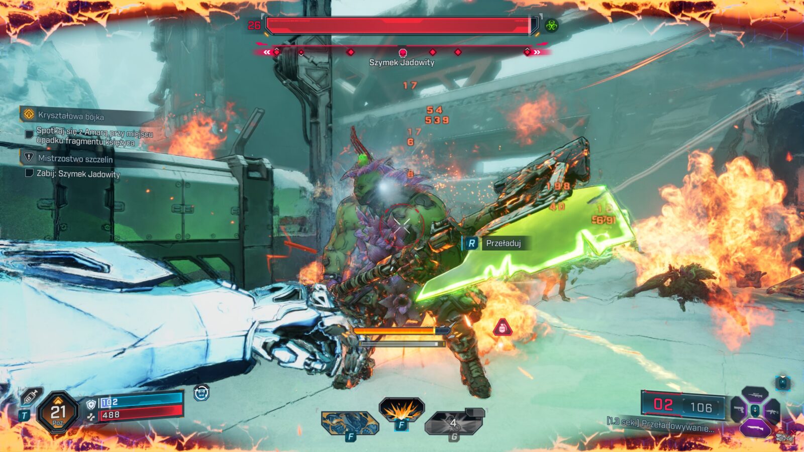 Ton głównej fabuły również stał się w pewnym stopniu doroślejszy i dotyka już jednoznacznie bezpośrednio bardziej poważnych tematów, choć same postaci nadal starają się je “luzować i spłycać” w ramach “edgy żarcików”. Ileż jednak można wałkować to samo poczucie humoru i powszechnie panujące w świecie Borderlands szaleństwo co drugiej postaci? To, co kiedyś było odświeżające, teraz stało się standardem w serii, a twórcy, zamiast pójść w zawsze sprawdzającą się “sinusoidę wrażeń” lub jeszcze bardziej dokręcać śrubę, nieco ją poluzowali. Efekt? Trudno znaleźć w nowych historiach wiele momentów, które nas jakoś szczególnie zaskakują, wprawiają w osłupienie, doprowadzają do wybuchu śmiechu (delikatne uniesienie kącika ust to max, na co możecie liczyć), czy nawet wprowadzają w konsternację. Do tej pory mogliśmy zrzucić to na karb niedoskonałego zrozumienia języka angielskiego i udawać, że gry są rzeczywiście zabawne, ale w Borderlands 4 po raz pierwszy doszło do wprowadzenia polskiej wersji językowej, która jest wprawdzie dobra (surowe maszynowe tłumaczenie raczej nie weszło w grę), ale nie idealna, bo np. bronie ciągle są określane po angielsku.