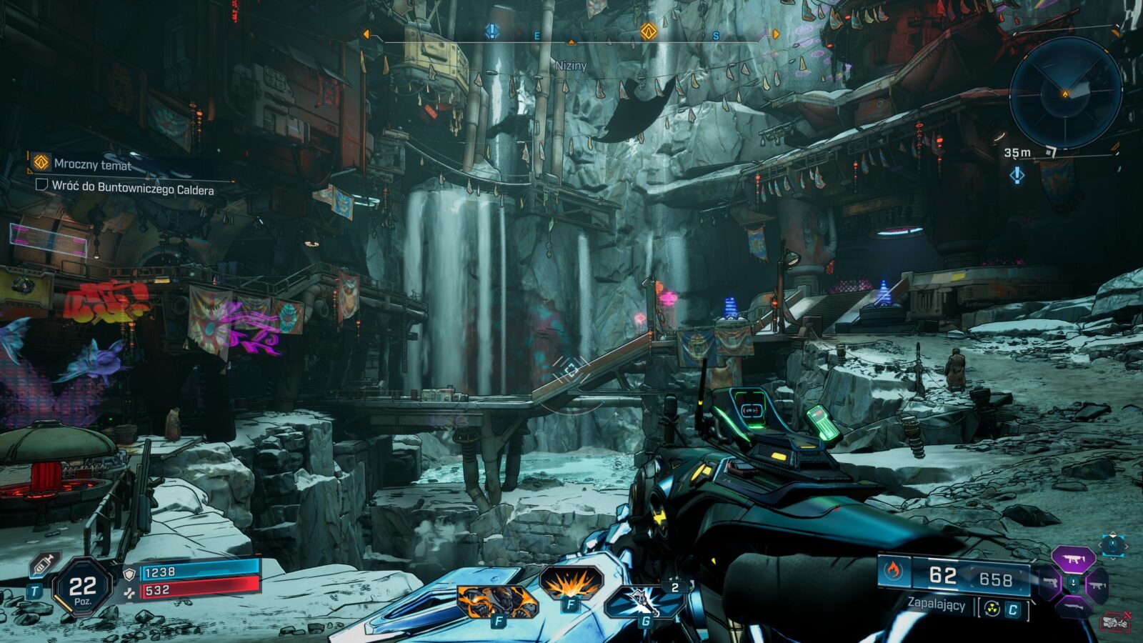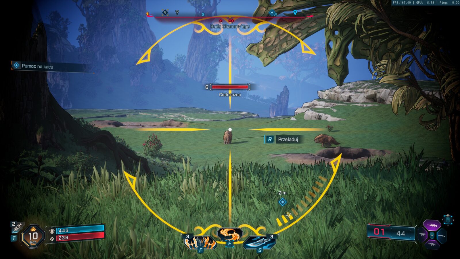 Na całe szczęście z takim poszerzeniem “wertykalności poruszania się” przyszedł również nowy projekt całego świata. W Borderlands 4 znajdziemy nie tylko otwarty świat, ale też znacznie bardziej rozbudowane lokacje, które w pewnym sensie zmuszają nas do ciągłego skakania. Odświeżające? Jak najbardziej tak, ale nie możemy zapominać o przypadku gry Doom: Eternal, która poszła w podobnym kierunku “zrobienia z czołgu myśliwca”, a część graczy nie przyjęła tego z otwartymi ramionami. Bardziej “uziemieni” fani serii mogą zwyczajnie nie ucieszyć się z takiego “otwarcia pola bitwy”, bo projekt części lokacji rzeczywiście wymaga znacznie agresywniejszego poruszania się po nich dla maksymalnej efektywności, choć muszę przyznać, że te najbardziej wymagające momenty są zwykle powiązane z aktywnościami pobocznymi.
