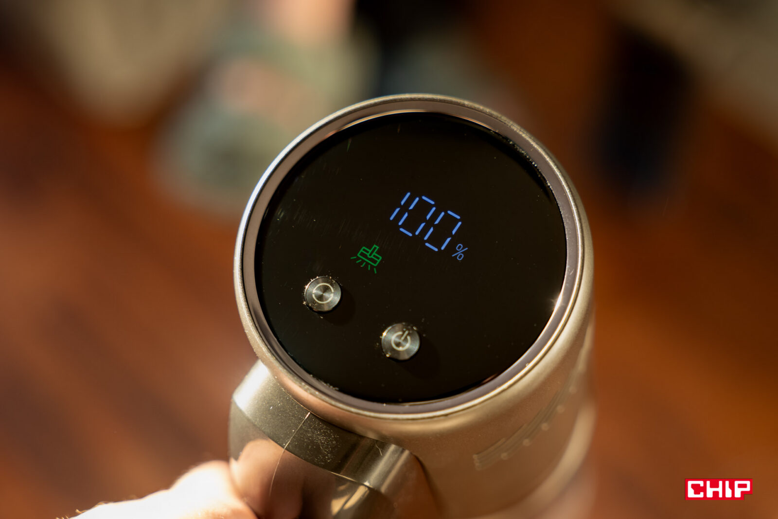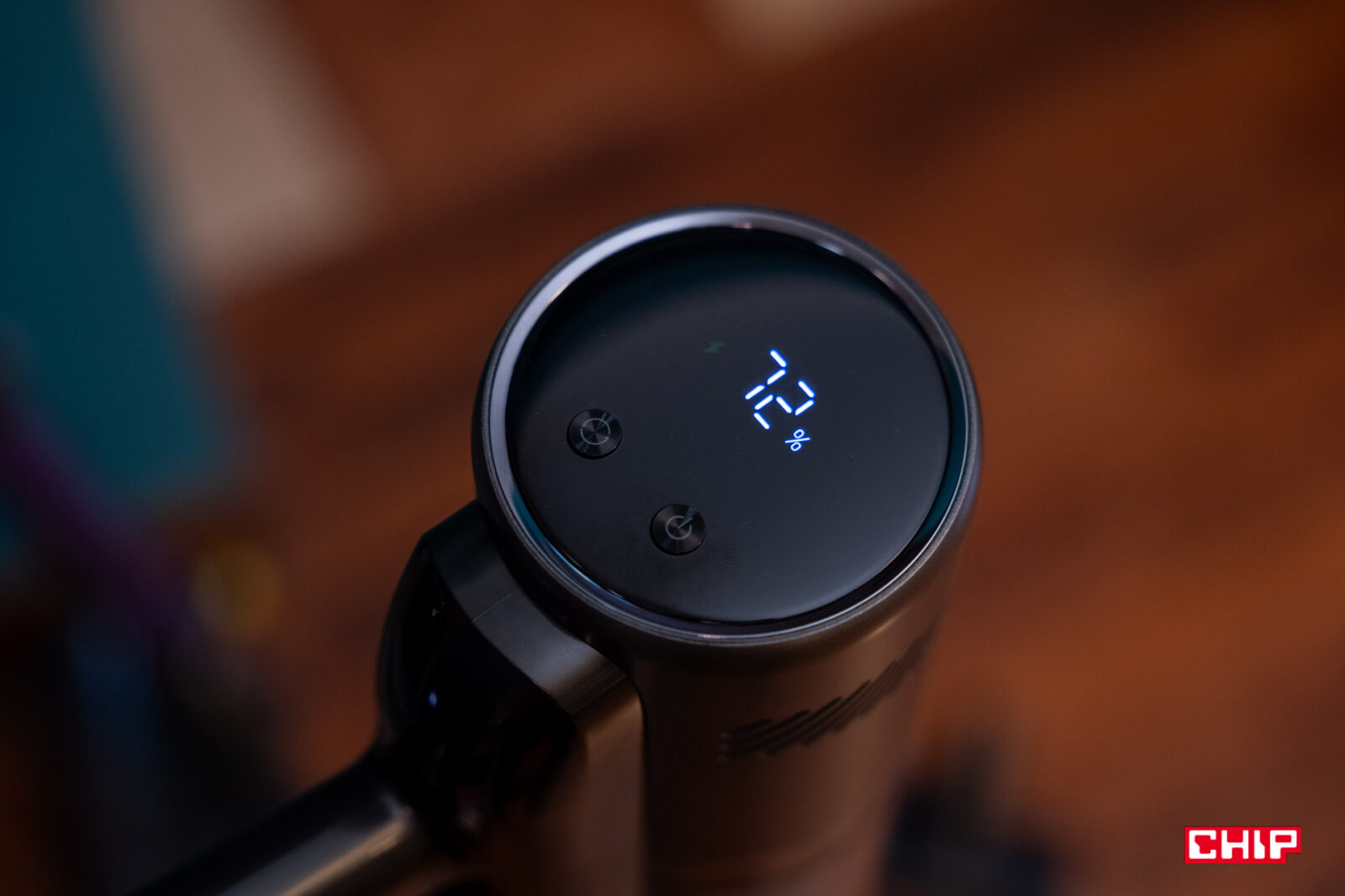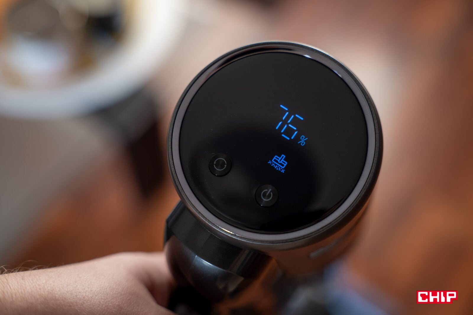 Producent postawił na czytelny wyświetlacz z dużymi piktogramami. Te powiedzą nam zarówno o używanym trybie, jak i o procencie naładowania baterii, a także o potencjalnej awarii. Nie ma tu do czynienia z manewrem ze starszych odkurzaczy, które pokazywały tylko skokowy spadek baterii (np. o 5%) lub z kilkoma paskami energii. Dostajemy czytelną, prostą informację o stanie naładowania w procentach, zmieniającą się także podczas napełniania akumulatorów.